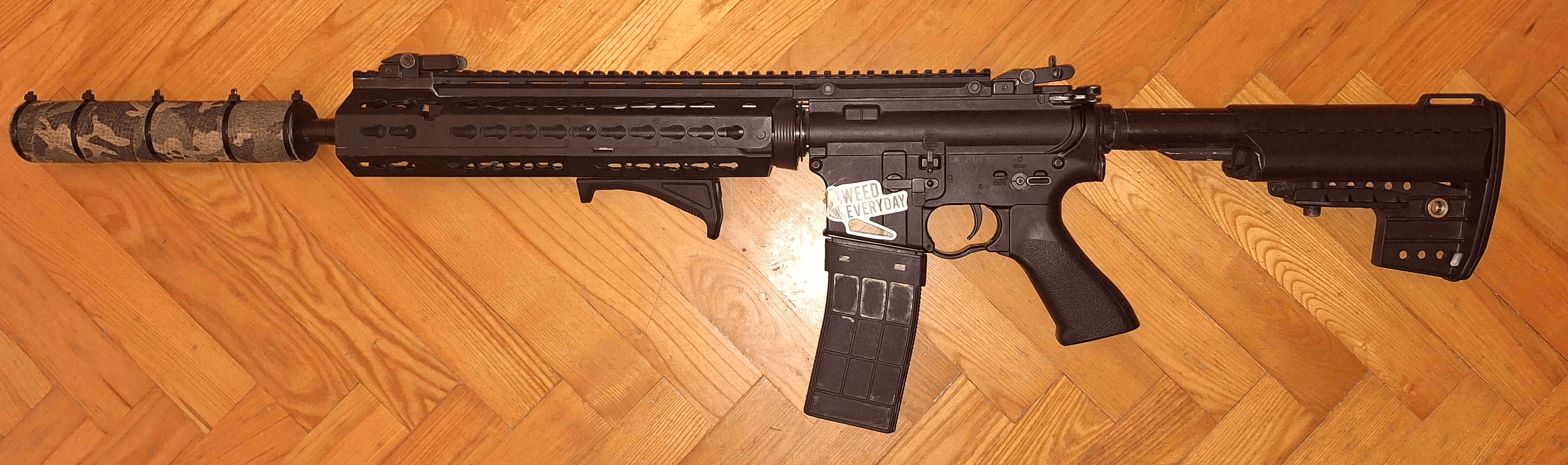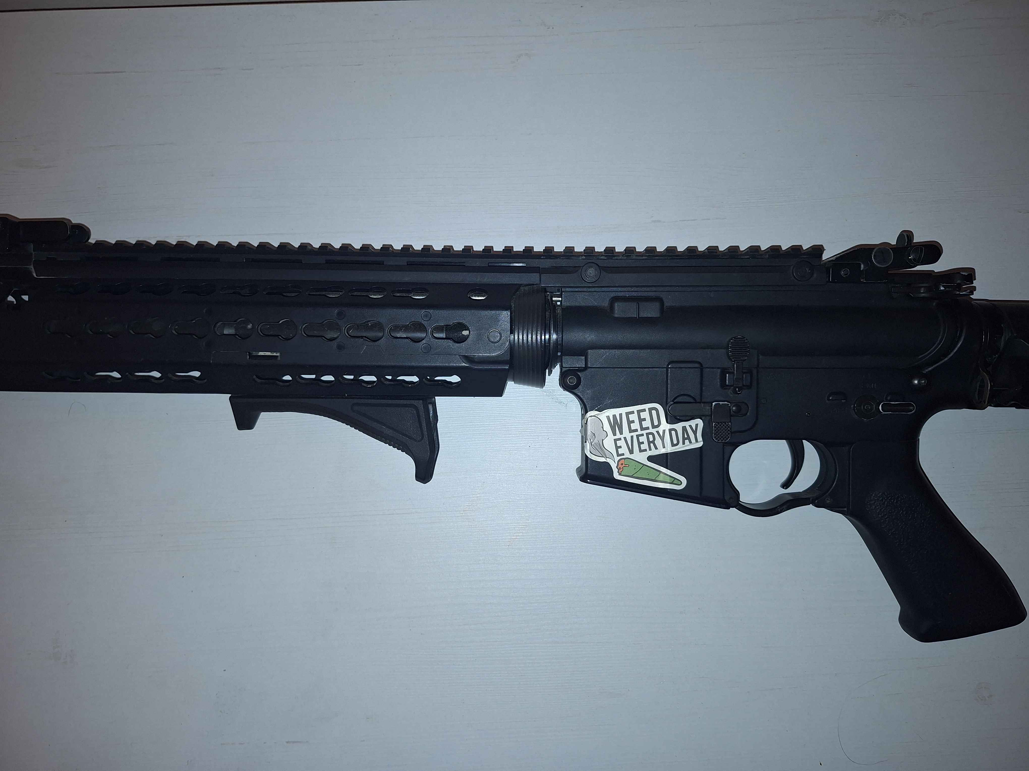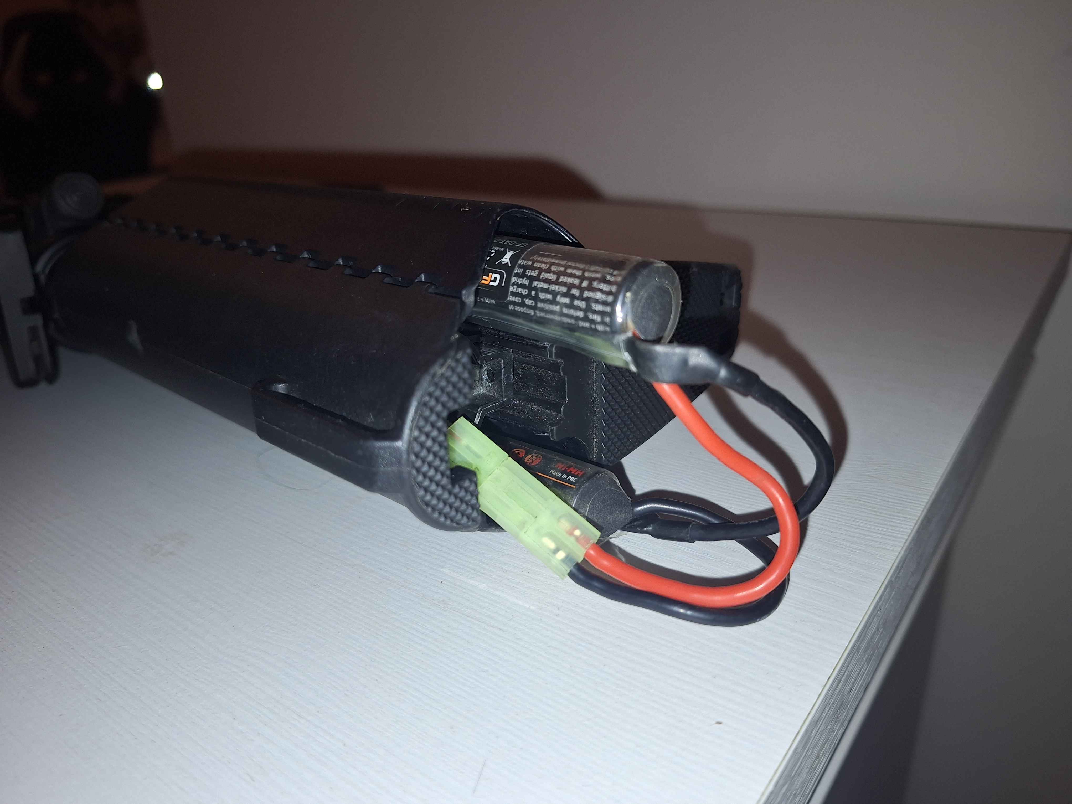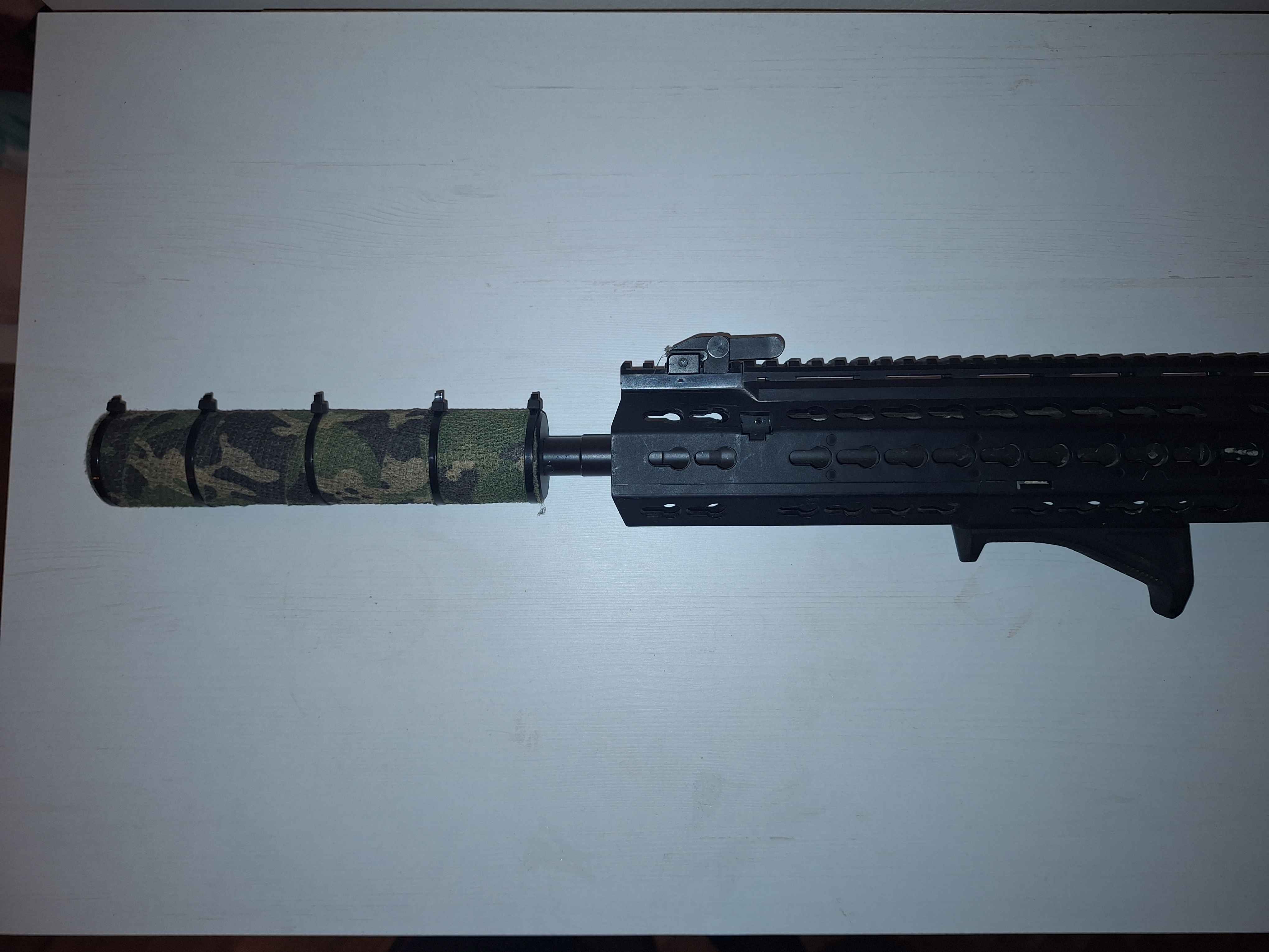 Sprzedaję replikę używaną ok. 14 strzelanek. Wszystko sprawne, replika zaskakująco celna, każda kulka leci idealnie w miejsce, gdzie poprzednia. Jedyny problem to zepsuta gumka hop-up. Replikę sprzedaję w zestawie z magazynkiem hi-cap, magazynkiem mid-cap, uchwytem, baterią 1600 mAh 8.4V, tłumikiem oraz oryginalnym pudełkiem. Możliwa wysyłka kurierem za opłatą.