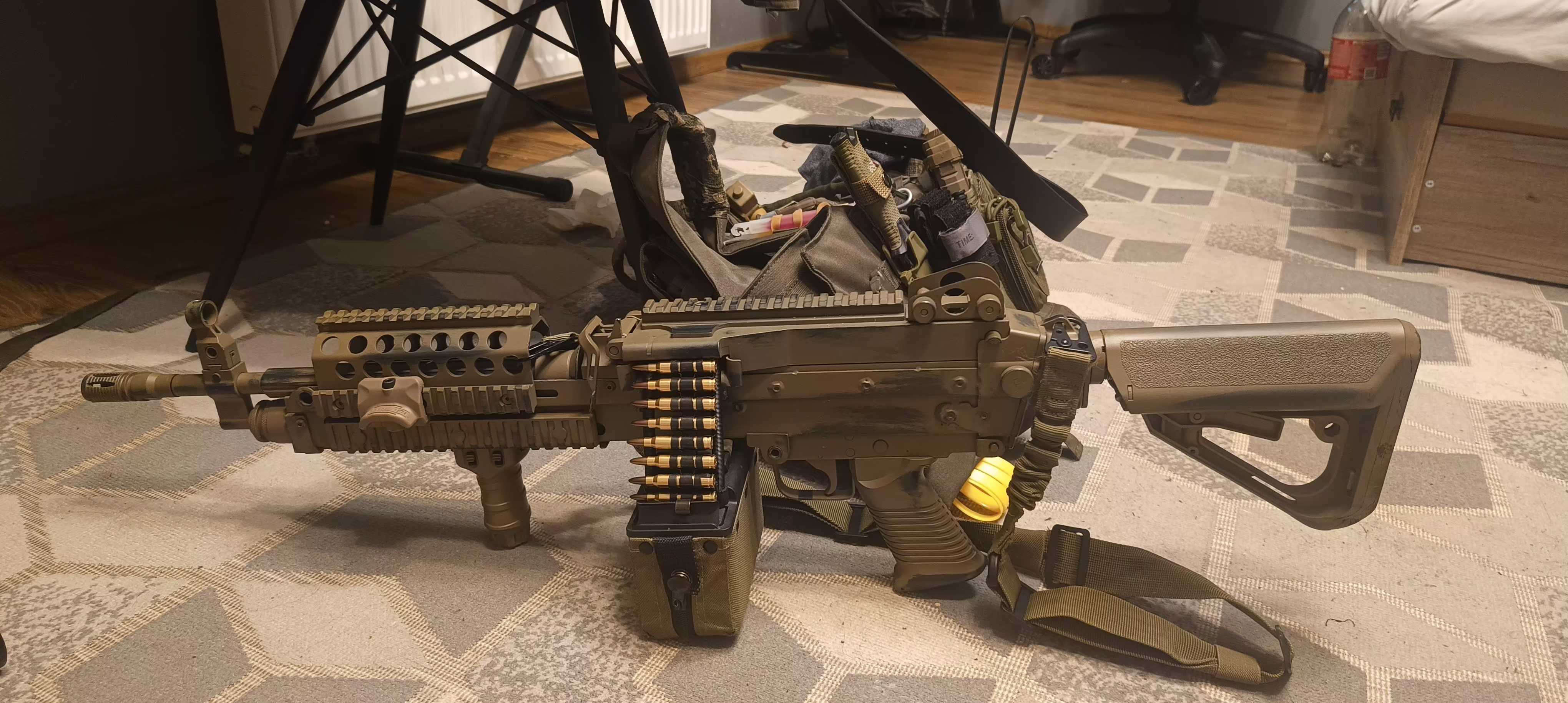 sprzedam replike ASG A&K MK46 MOD 0 w kolorze flat de , malo uzywana byla na jednym strzelaniu ddo repliki jest pudelko , od siebie dorzucam chwyt na kciuka i pas nosny , cena 2000 najlepiej odbior osobisty nowy sacz , replika w stanie bardzo dobrym jedna ryska malo widoczna ( reszta jest fabrycznie) wystrzelony jeden mag