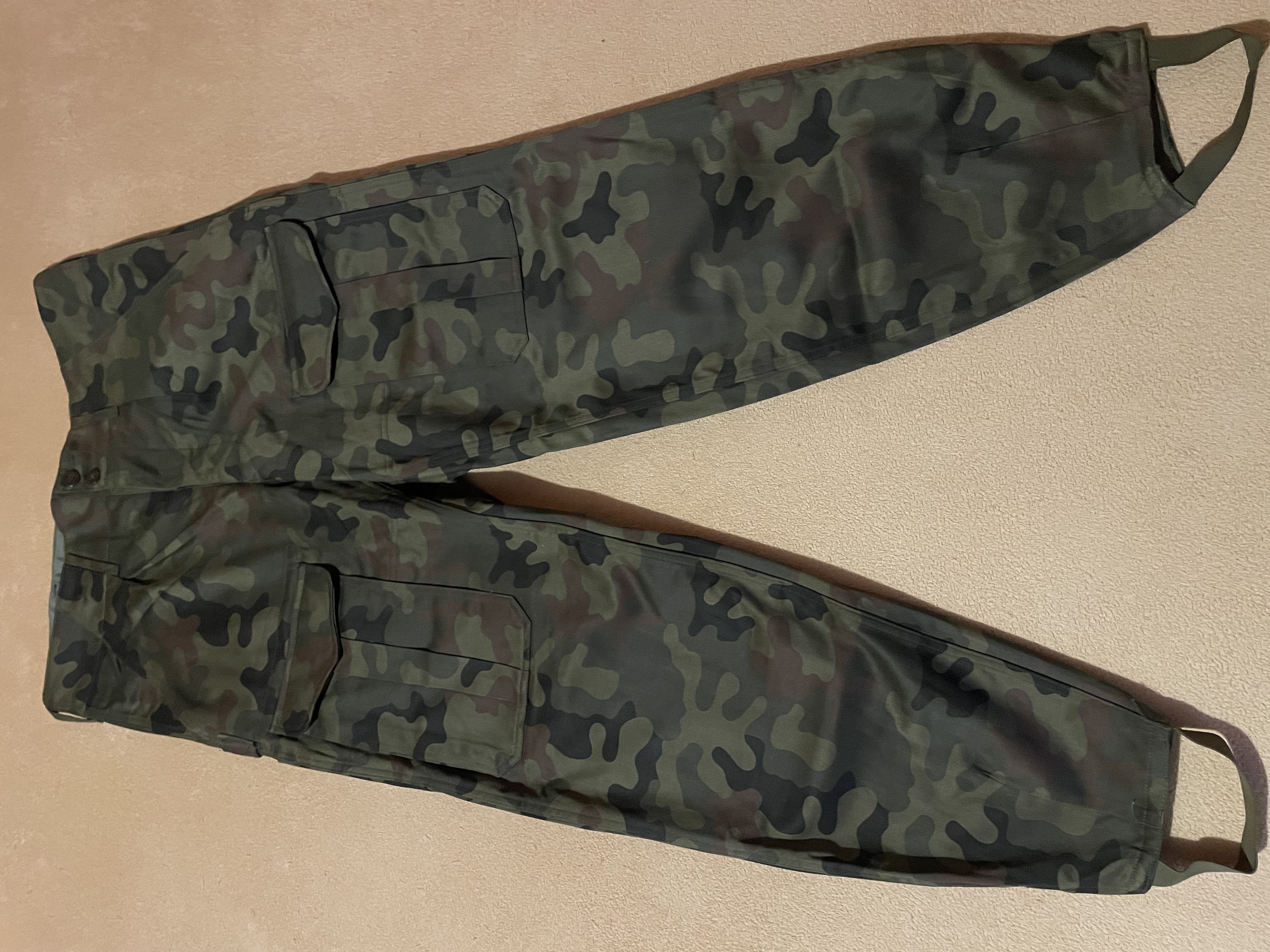 Spodnie wz.127a/Mon Rozmiar 106/178 Producent Kama Rok produkcji 12.2005r Nie używane,stan magazynowy Szelki w komplecie Wymiary zmierzone Pas 53 cm x 2 Długość całkowita 112 cm Długość nogawki od kroku 83 cm Możliwa wymiana na taki sam model w rozmiarze 102/175 lub 102/181 https://m.olx.pl/1032191890/?bs=olx_pro_listing