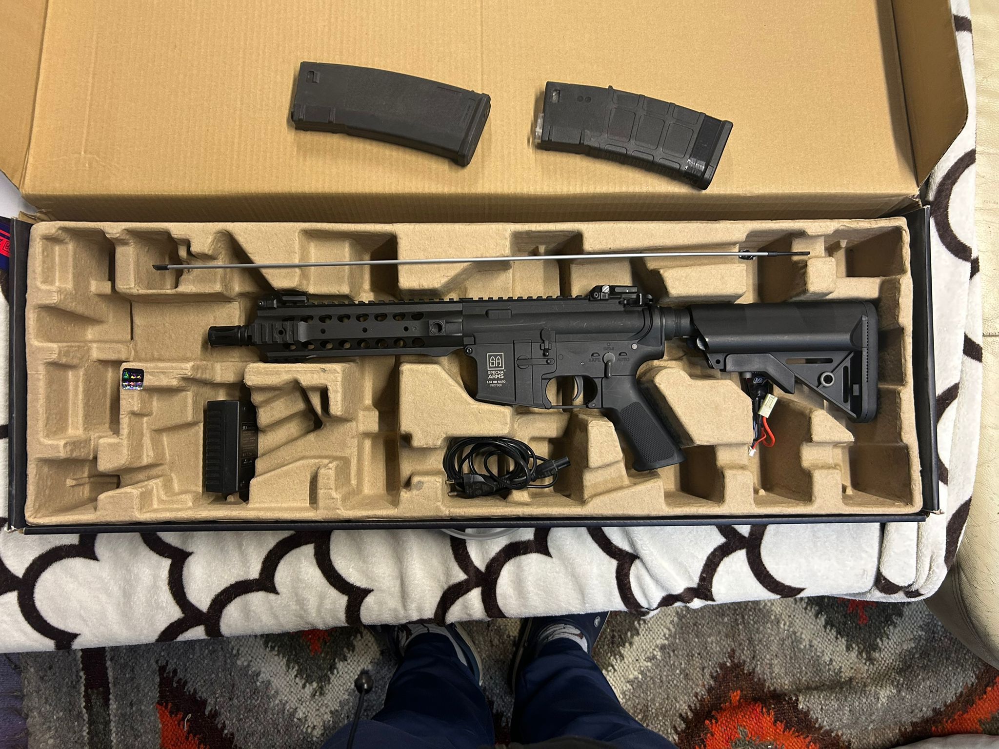 Sprzedam zestaw w skład , którego wchodzi karabinek, dwa magazynki, ładowacz, ładowarka, bateria, torba na replikę, maska z goglami, maska stalker, 2 kg kulek Specna 0,20 g oraz 2000 sztuk Specna Precision. Replika w stanie prawie sklepowym, przebieg ok 500 sztuk, kupiona w 2023 w Militaria.pl (dowód zakupu). Cena do negocjacji.