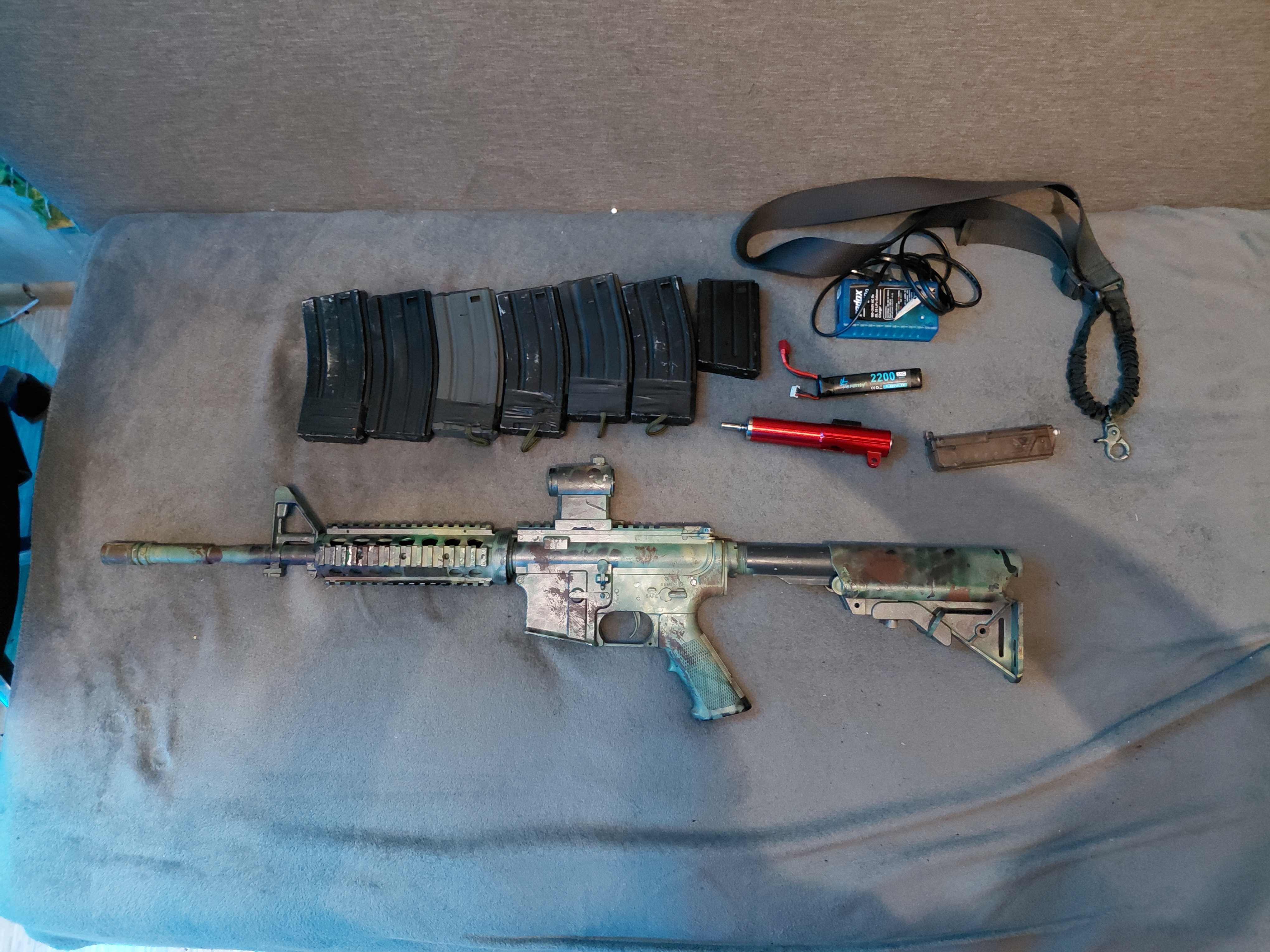 Witam Mam na sprzedaż zestaw z m4 od WE w legendarnym systemie Katana replika ma swoje lata strzela 1.3j na 0.20 na obydwu sprężynach replika do pielęgnacji, w zestawie do repliki dorzucam: -zapasowy wybrakowany cylinder -6 magazynków low cap do przeczyszczenia (blaszane) -1 hi cap -zawieszenie bungee -lipo 11.1v i ładowarka Odbiór osobisty w Bielsku-Białej Bądź wysyłka kurierem