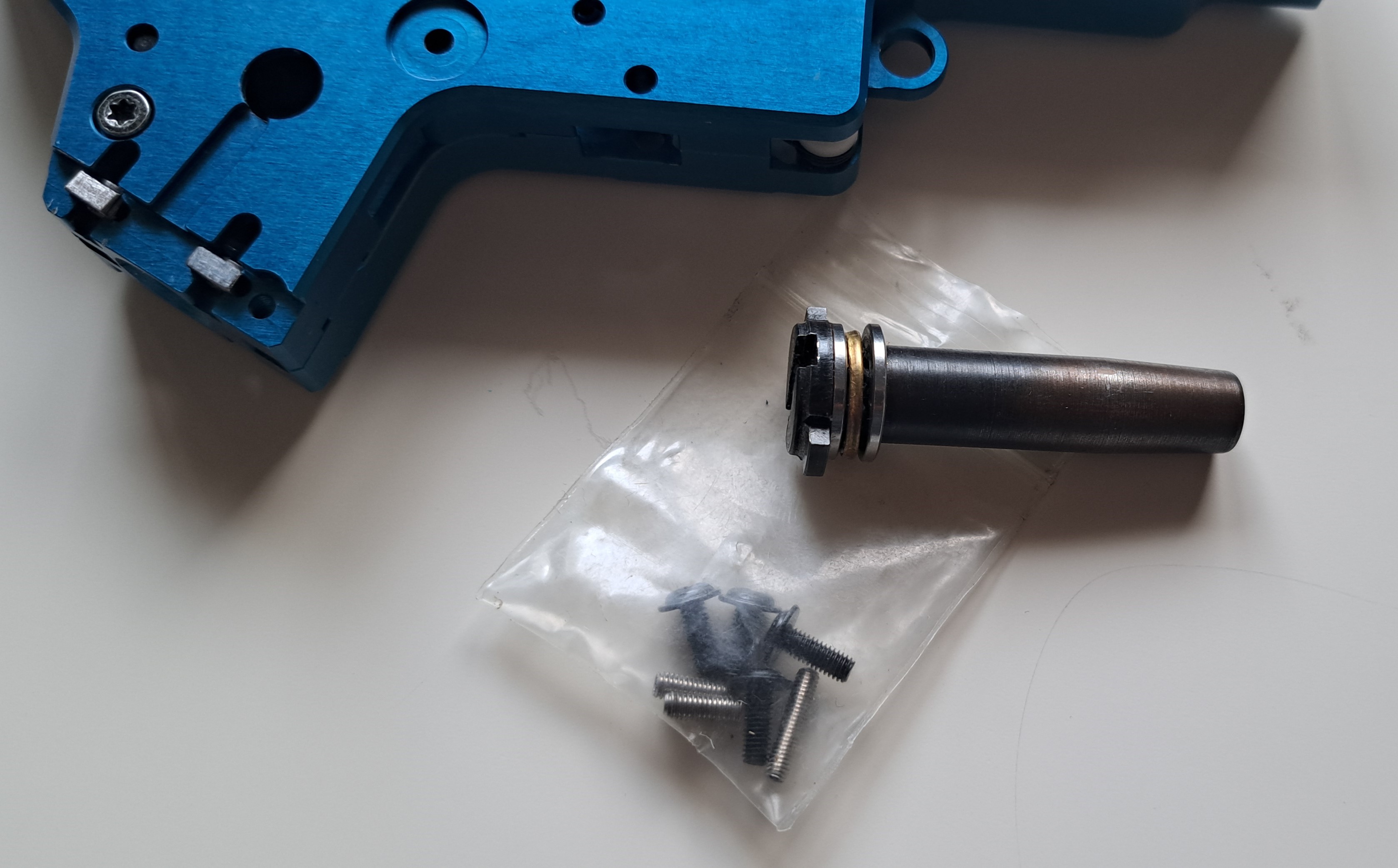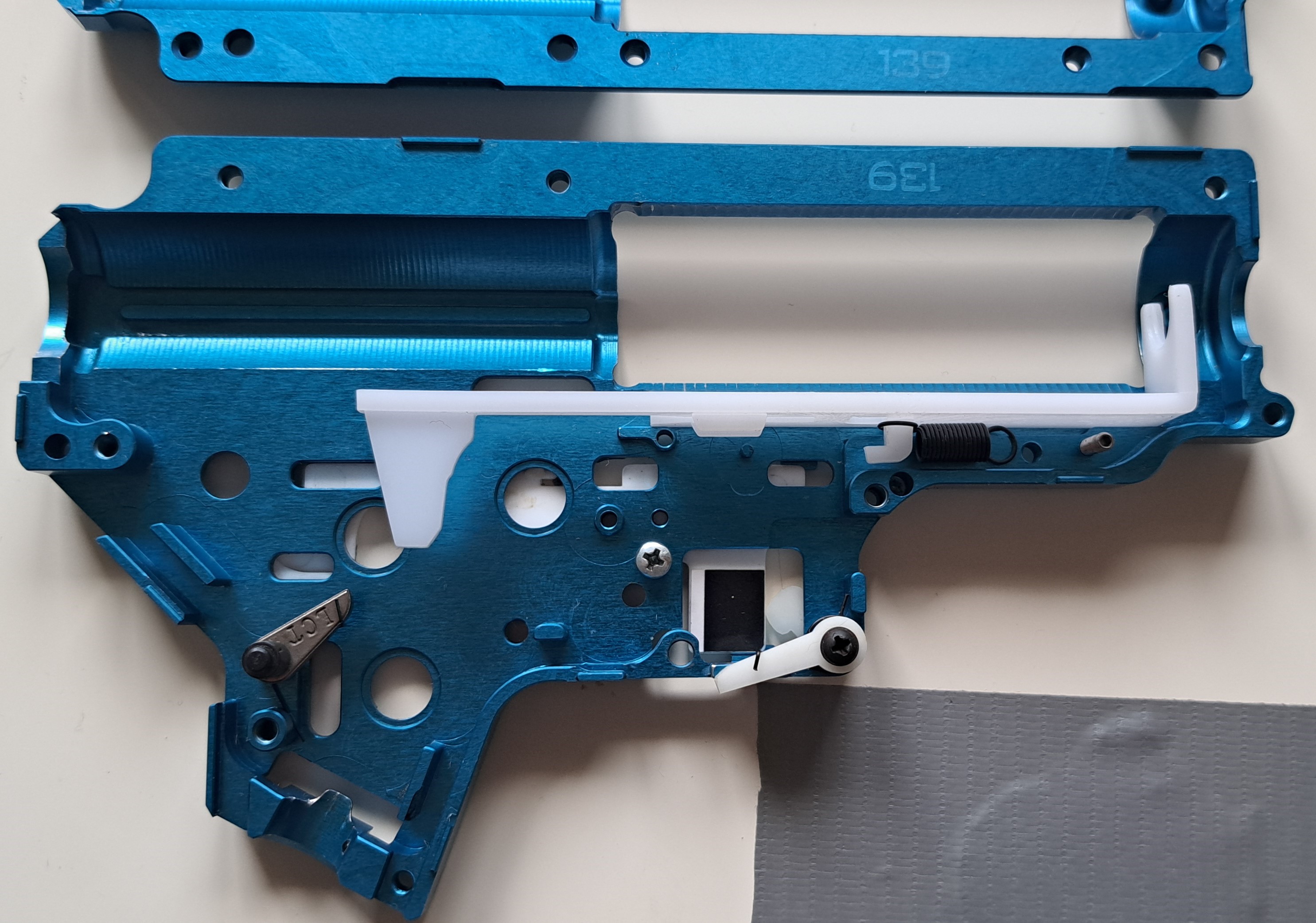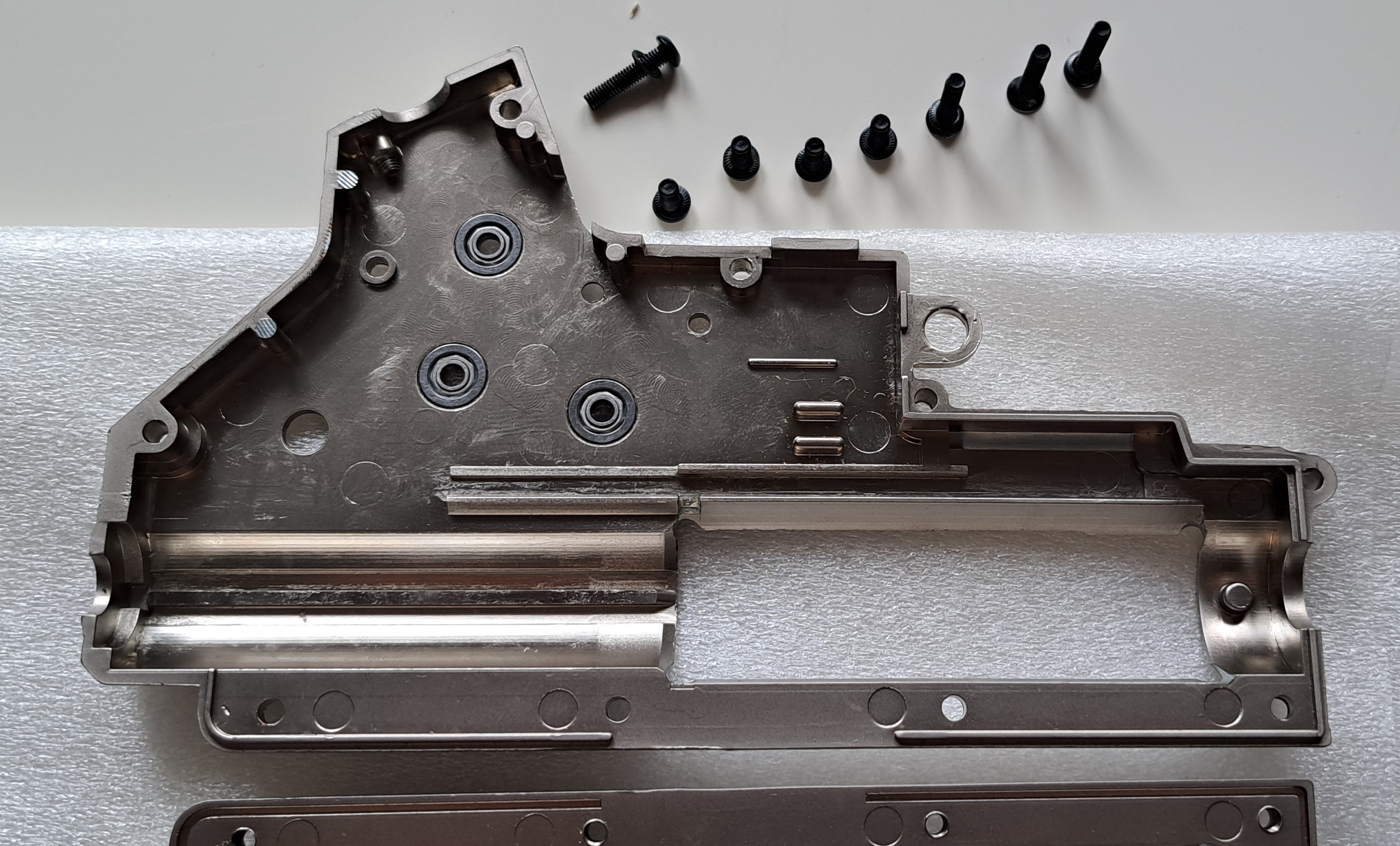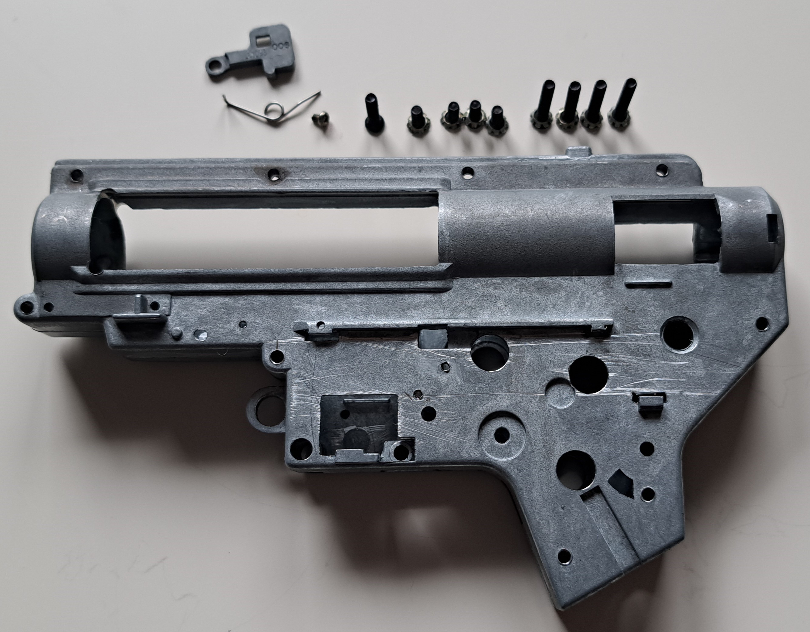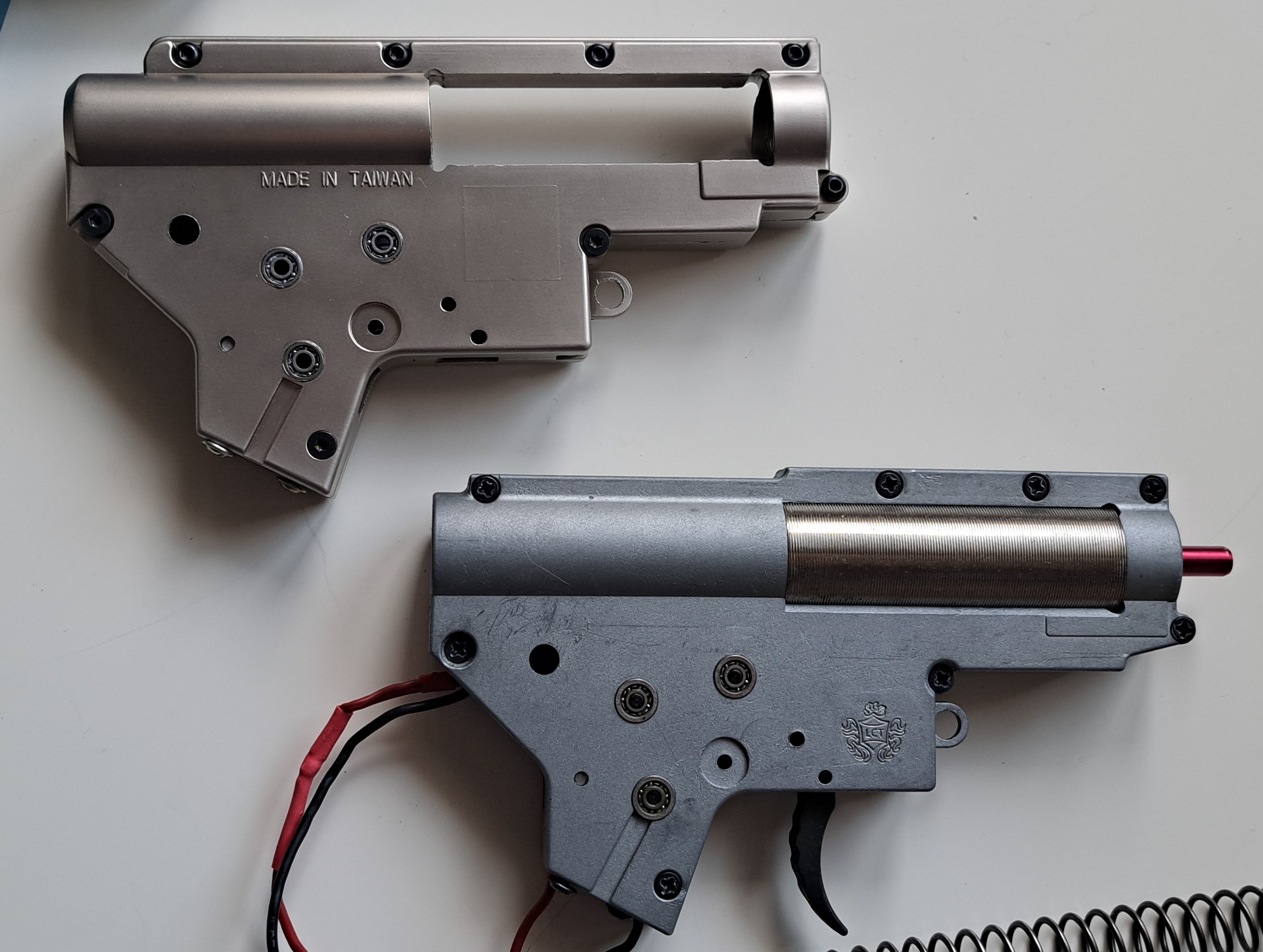 Pytania proszę w sms na nr. 787-614-881 Witam na sprzedaż idą szkielety gearboxów v2 i v2long [Mancraft x SpecnaArms] - niebieski gearbox CNC z QSR wyposażony w listwę dosyłacza LCT , antyreversalem LCT , mechaniczną blokadę spustu LCT , selektor ognia Retro Arms z naklejką do Peruna Hybrid v2 /do tego elementy do centrowania gearboxa 430,- Lonex - błyszczący srebrny CNC gearbox bez QSR wyposażony w listwe dosyłacza Lonex , Łożyska 8mm kulkowe Lonex , Listwa selektora z blaszką miedzianą Lonex , Łożyskowana prowadnica sprężyny GŁ. ACM , mechaniczną metalową blokadę spustu ACM 230,- Kompletny Gearbox v2 LCT z G3 pasujący do M4 - Perun Hybrid okablowanie to tyłu , Łożyska 8mm kulkowe LCT , Cylinder Typ.0 żebrowany LCT , Tłok z 14 metalowymi zębami SHS , Łożyskowana głowica tłoka SpecnaArms , Głowica cylindra SpecnaArms , listwa dosyłacza SHS , zębatki z wewnętrzynmi łożyskami 18:1 Big dragon , dysza 21,40 z oringiem ACM , Łożyskowana prowadnica sprężyny Lonex /Z lufą 509mm 6.02 z kulkami 0.3 osiąga 1.75j 355fps na ustawionym HopUP 60% 400,- Retro Arms - Czarny CNC gearbox v2 LONG z QSR Łożyskowana prowadnica sprężyny GŁ. Retro Arms , Listwa dosyłacza biała Retro Arms , Cylinder długi Typ.0 EPES , Głowica tłoka łożyskowana EPES , Głowica cylindra Mk.II V2/3 - 70sh long EPES , Dysza z dwoma o-ringami 24,00 EPES , Tłok z 18 stalowymi zębami ARMY Zębatki CNC wypodkładkowane standardowe 18:1 sr25 SHS / Do tego jakieś elementy które dostalem od retroamrs nwm do czego są... 530,- Czarny Gearbox SpecnaArms z QSR , prowadnicą sprężyny , listwą selektora , przerywaczem , lozyskami ślizgowymi 8mm , listwą dosylacza 45,- Szary Gearbox CYMA gen.1 BEZ QSR 30,- Wszystkie sprawne nie uszkodzone wysylka 17,- Pobranie tylko z kwotą zabezpieczającą 70zl Możliwy odbiór w Iławie