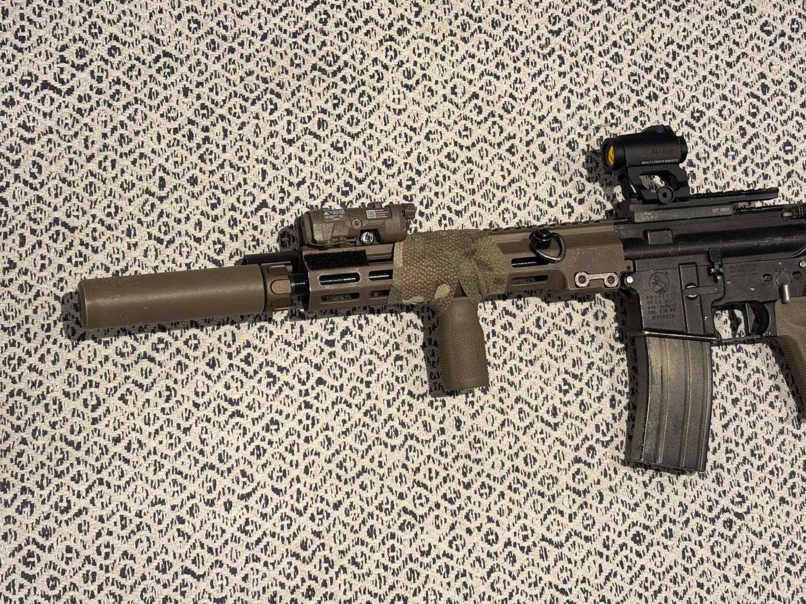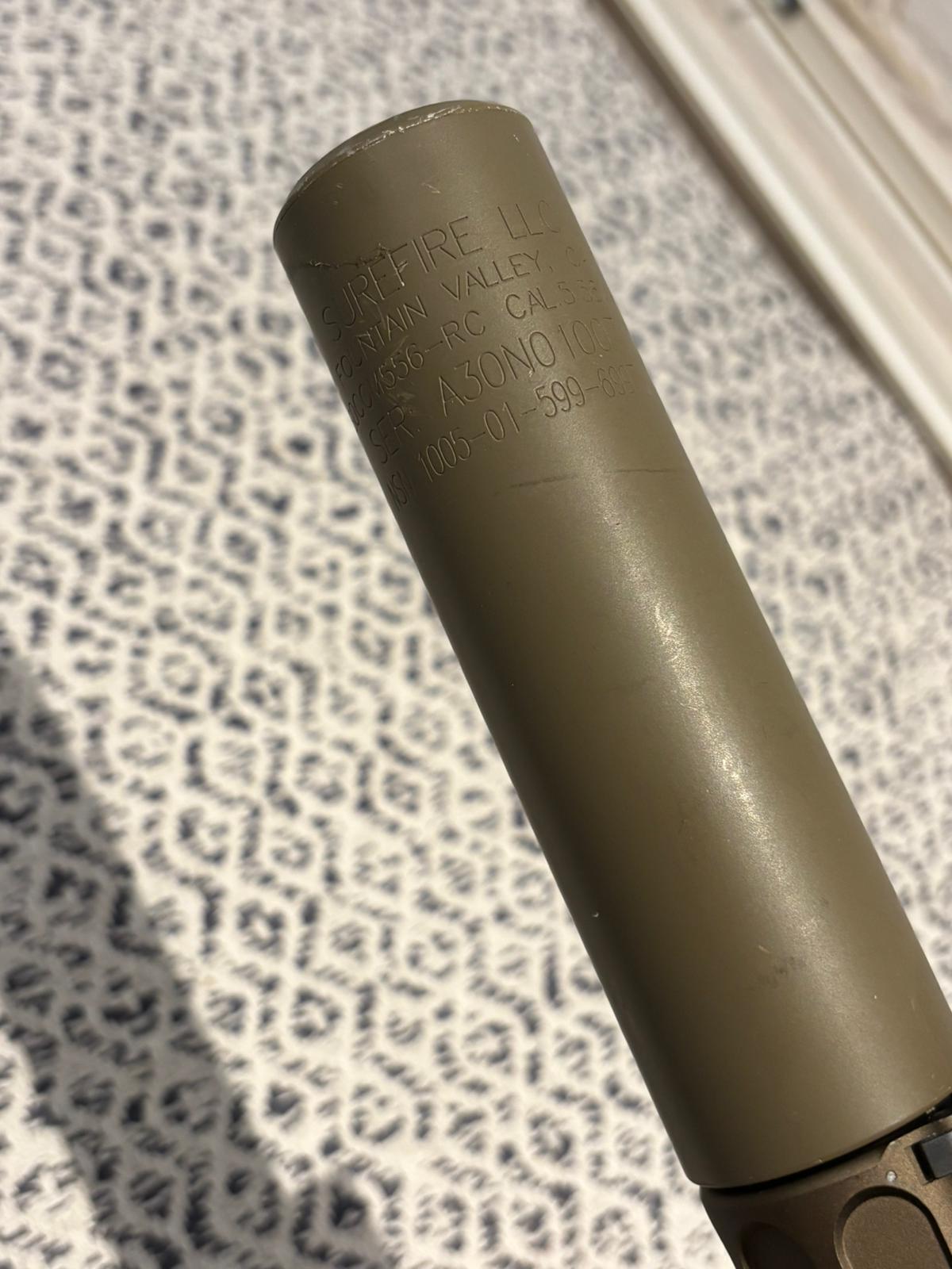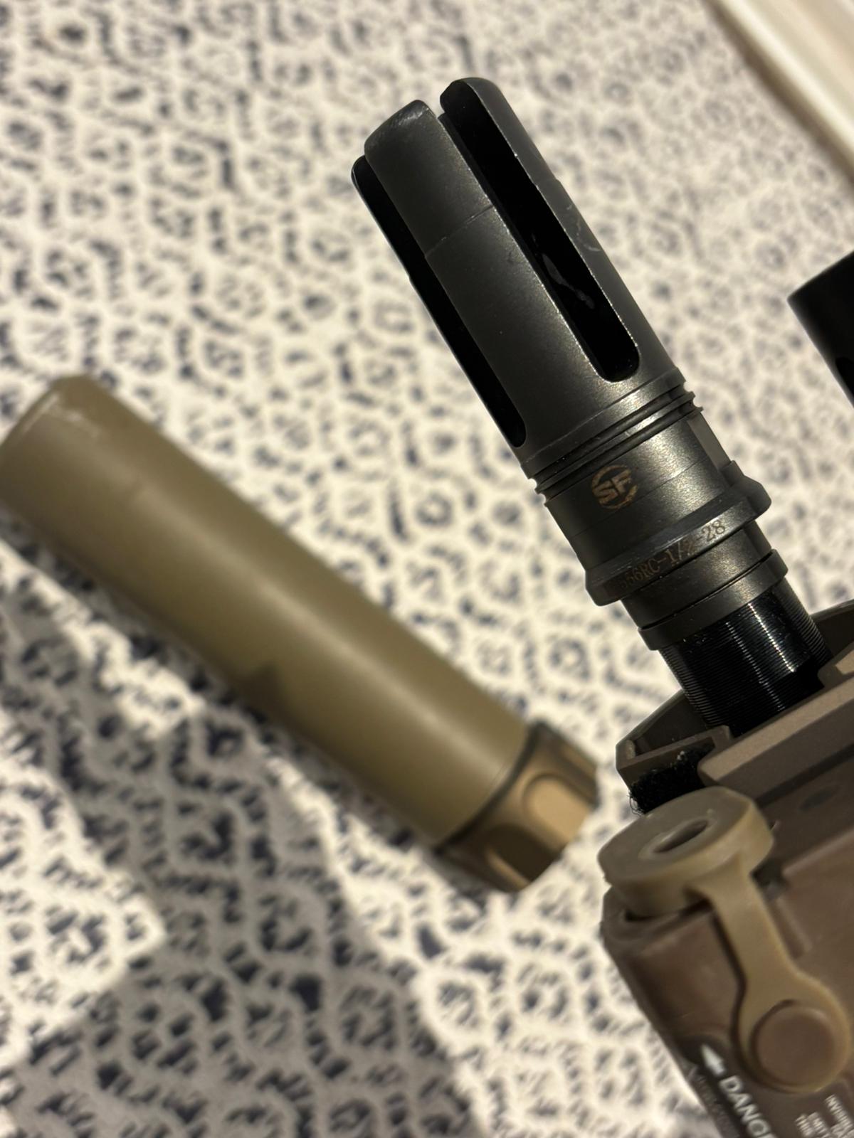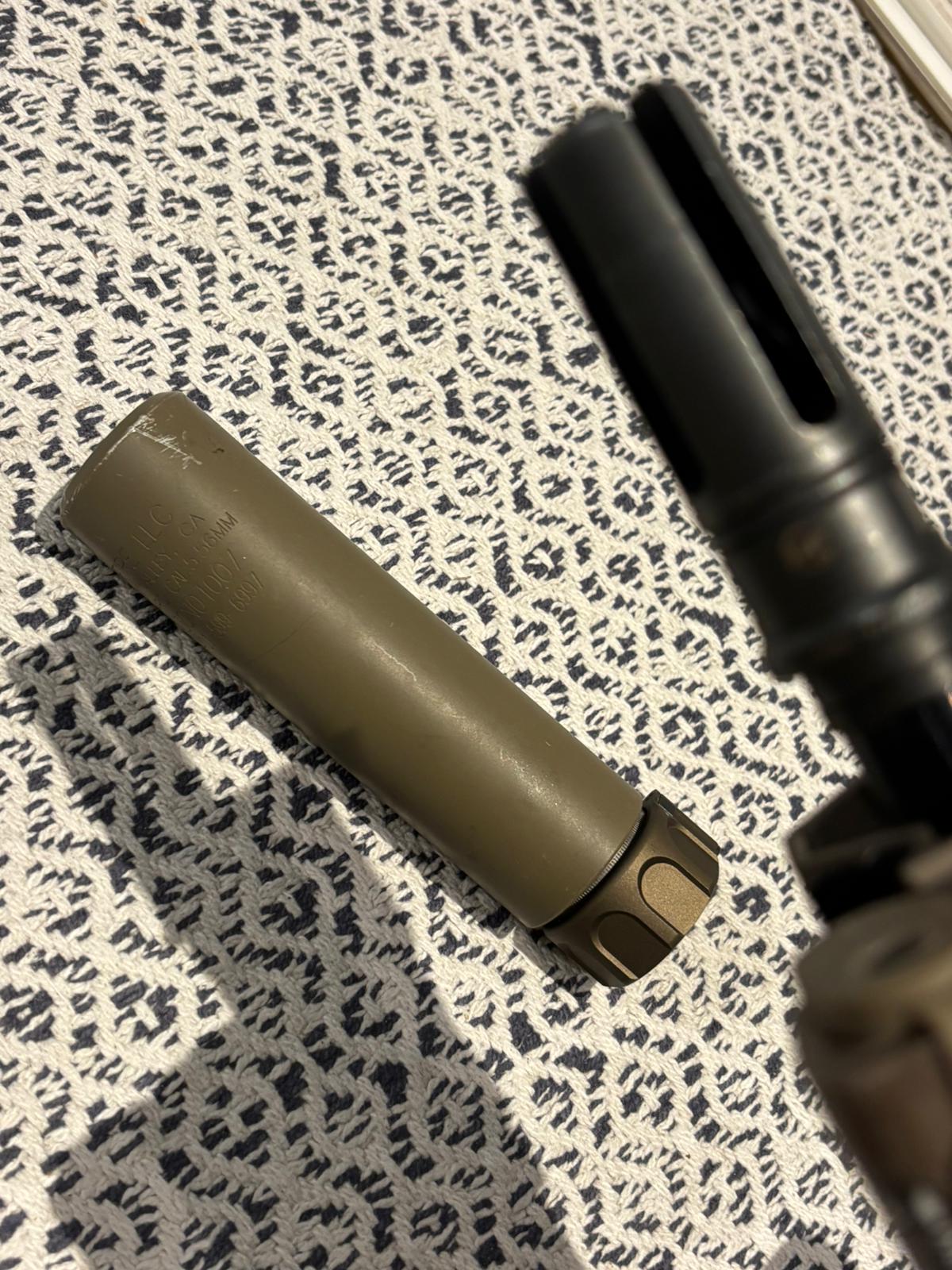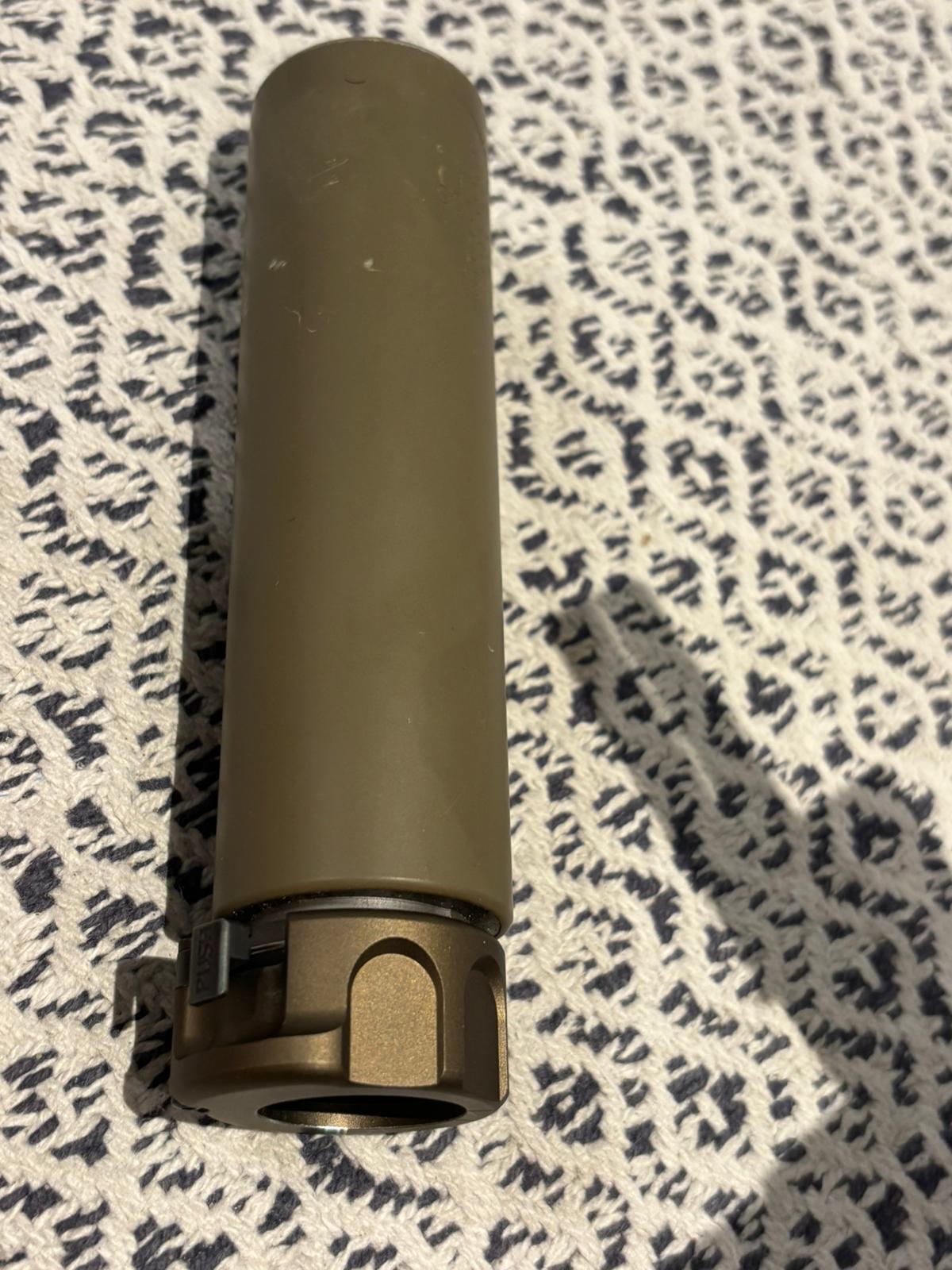 Tłumik Angry Gun QD SOCOM556 (pełne oznaczenia) + Tracer AT2000R, 14- mm (CCW) - Tan