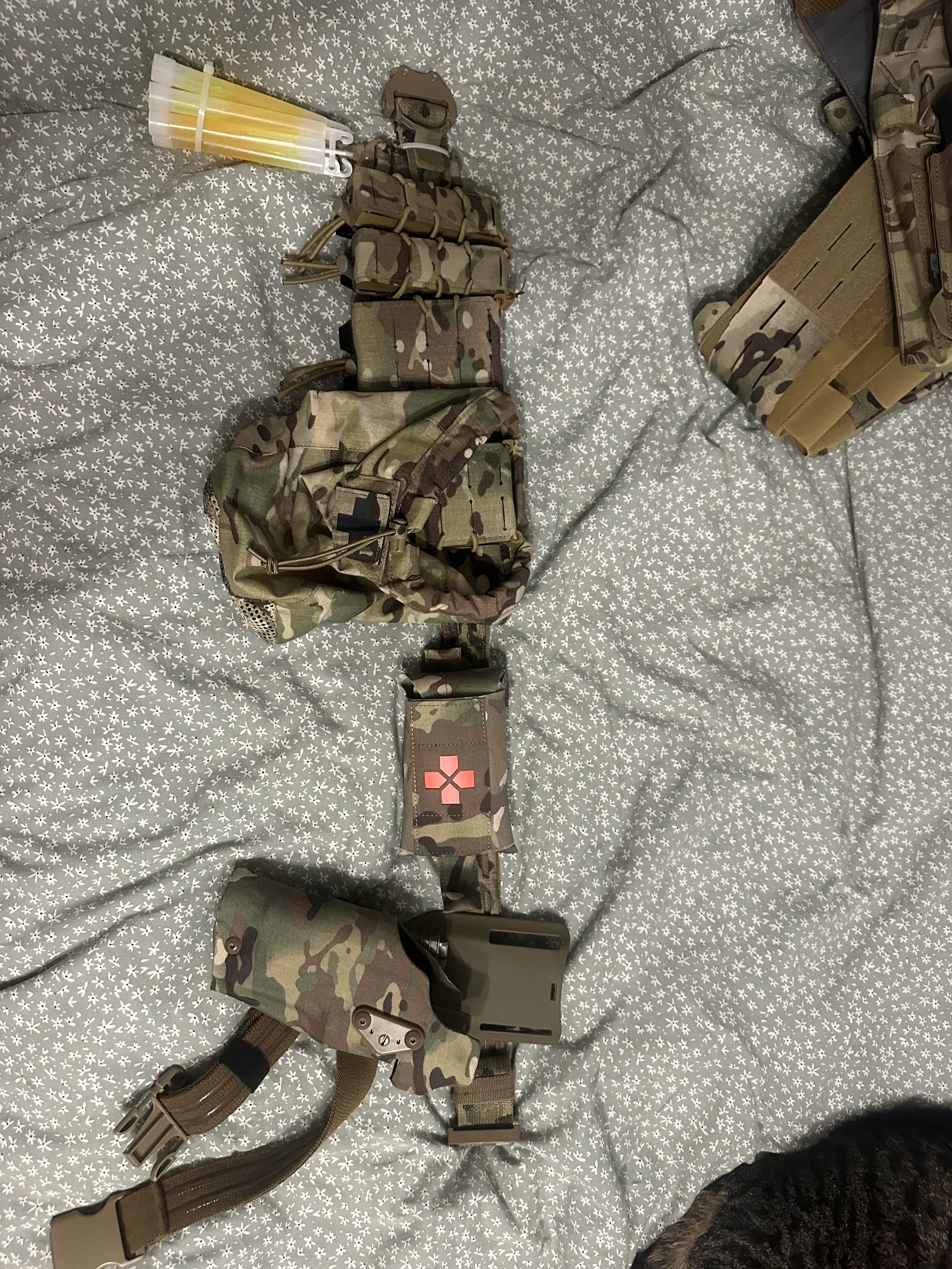 Pas taktyczny Direct Action Warhawk Modular Belt - MultiCam - size M Akcesoria: -Pas taktyczny Direct Action Mustang Inner Belt - MultiCam- size M -Worek GTG DUMP POUCH 2.0 -2X Templars Gear Ładwonica pojedyncza na magazynek AR-AK Rifle Pouch FMR -2X Templars Gear Ładownica pojedyncza na magazynek pistoletowy Machine Pistol Pouch FMPM -Kabura do pistoletu GLOCK-17 -Apteczka zwykła z ali -Hak na rekawiczki lub karabinczyka Załozone dosłownie 2 razy , rezygnacja z multicam