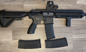 Witam, mam na sprzedaż karabinek ASG SA-C05. Karabin był użyty przeze mnie tylko kilka razy wiec stan oceniam na prawie nowy. Po prostu nie trafiona zajawka z mojej strony. Sprzedaje w zestawie z 6-cioma zapasowymi magazynkami, ładowarka do kulek, połową opakowania kulek, baterią, smyczą, maską oraz kolimatorem od Theta Optics. Wszystko to co jest widoczne na zdjęciu.