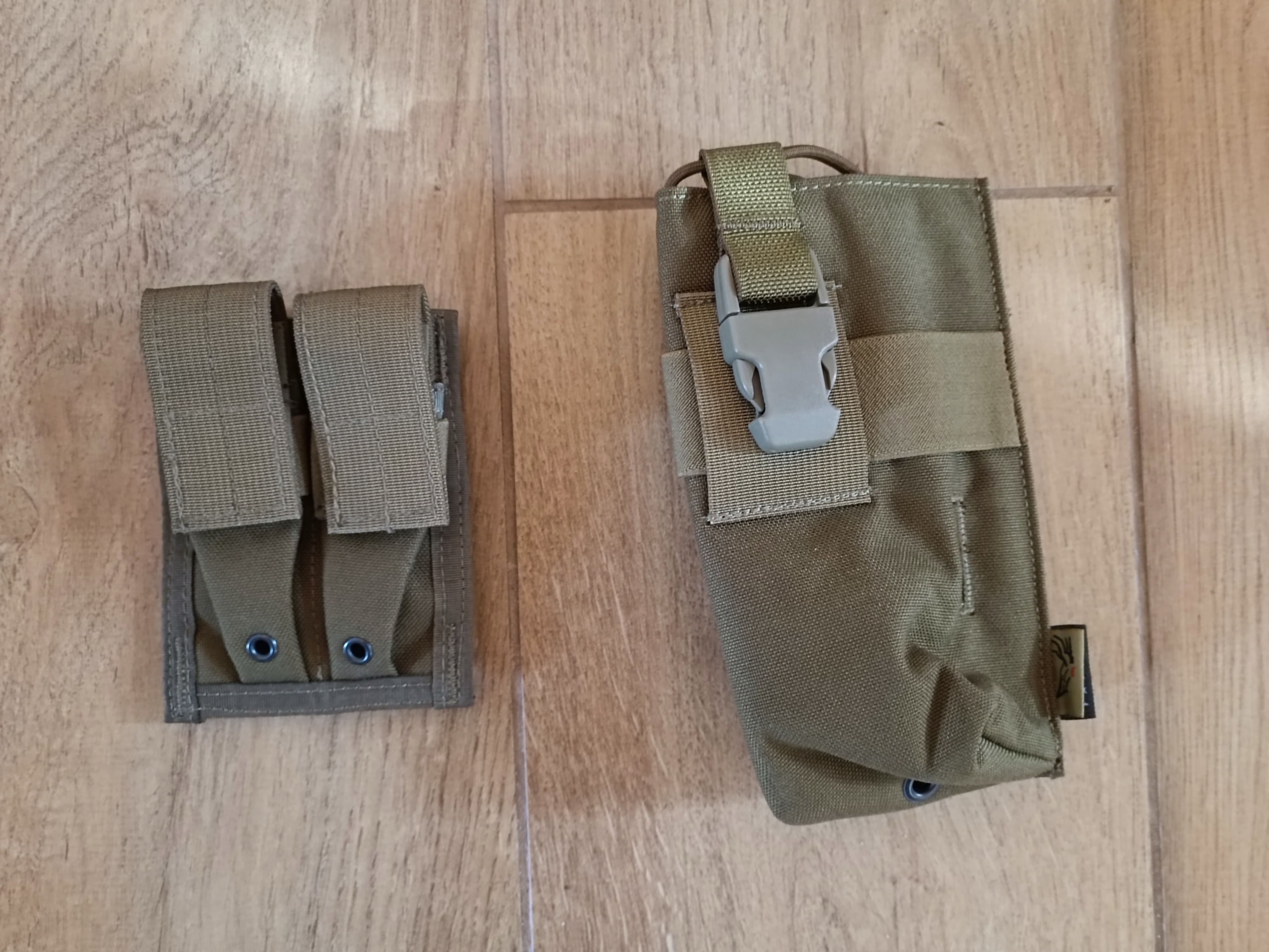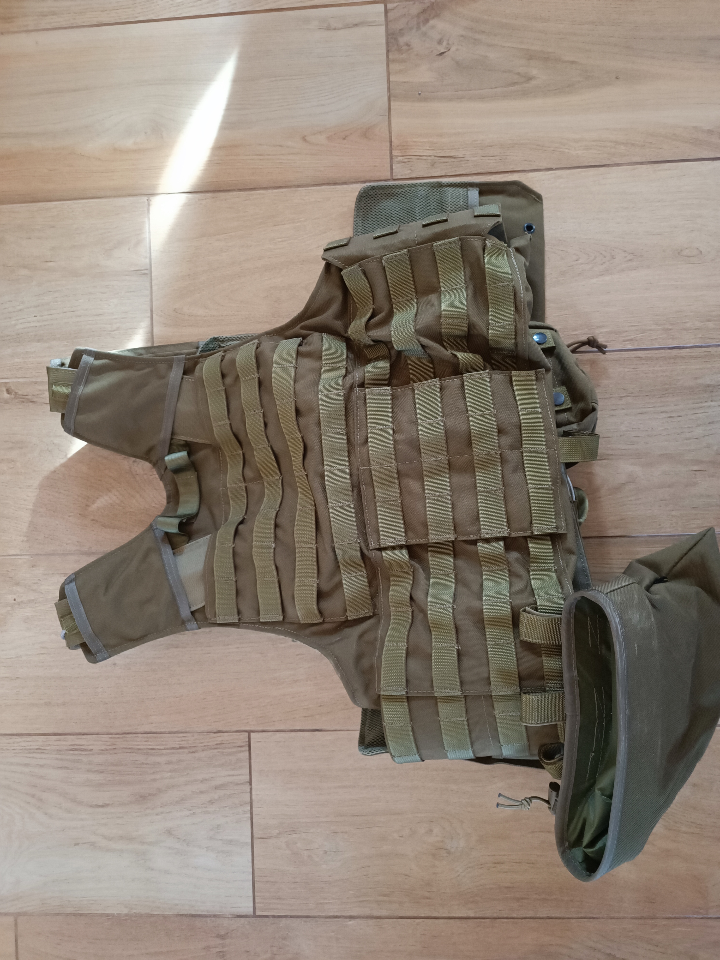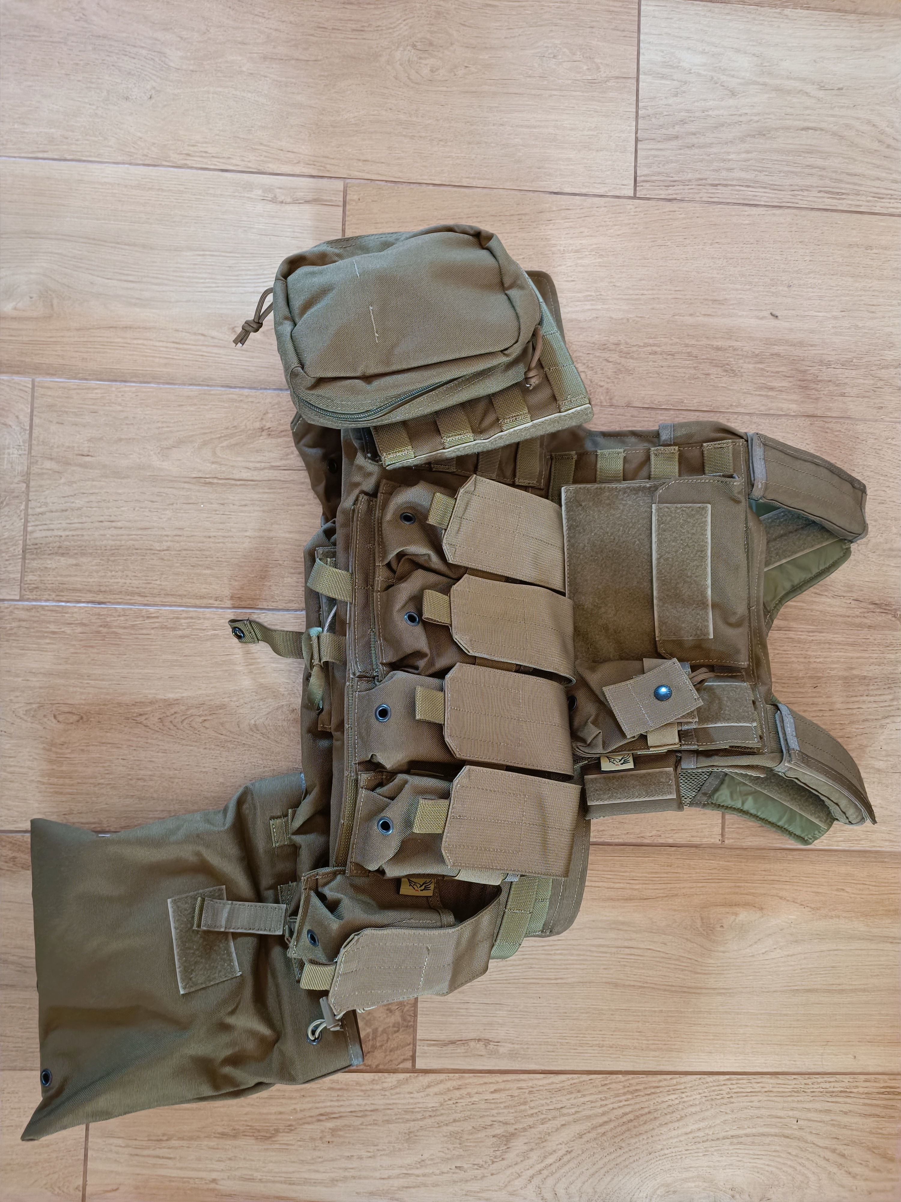 Kamizelka Flyye Industries w kolorze coyote brown, rozmiar M (a ja "mały" nigdy nie byłem więc to nie jest takie typowe tekstylne M). Nie umiem niestety powiedzieć co to dokładnie za model, nigdzie na metkach nie ma, a ja już nie pamiętam. Najbliżej co mi pasuje to https://www.military1st.pl/fy-vt-m004-cb-flyye-force-recon-vest-with-pouch-set-ver-mar-coyote-brown.html To co wiem na pewno to, że posiada system szybkiego zrzutu i była bardzo sporadycznie używana. W komplecie sporo różnych ładownic, niektóre luzem, worek zrzutowy. Cena do negocjacji, ale wysyłka jest dla mnie niestety mało ze względu na rozmiary całości. Kamizelka się słabo "składa" żeby ją jakoś w coś upakować, nie mniej daję opcję z uwzględnieniem ewentualnych kosztów jakiegoś dużego kartonu z wypełniaczami.