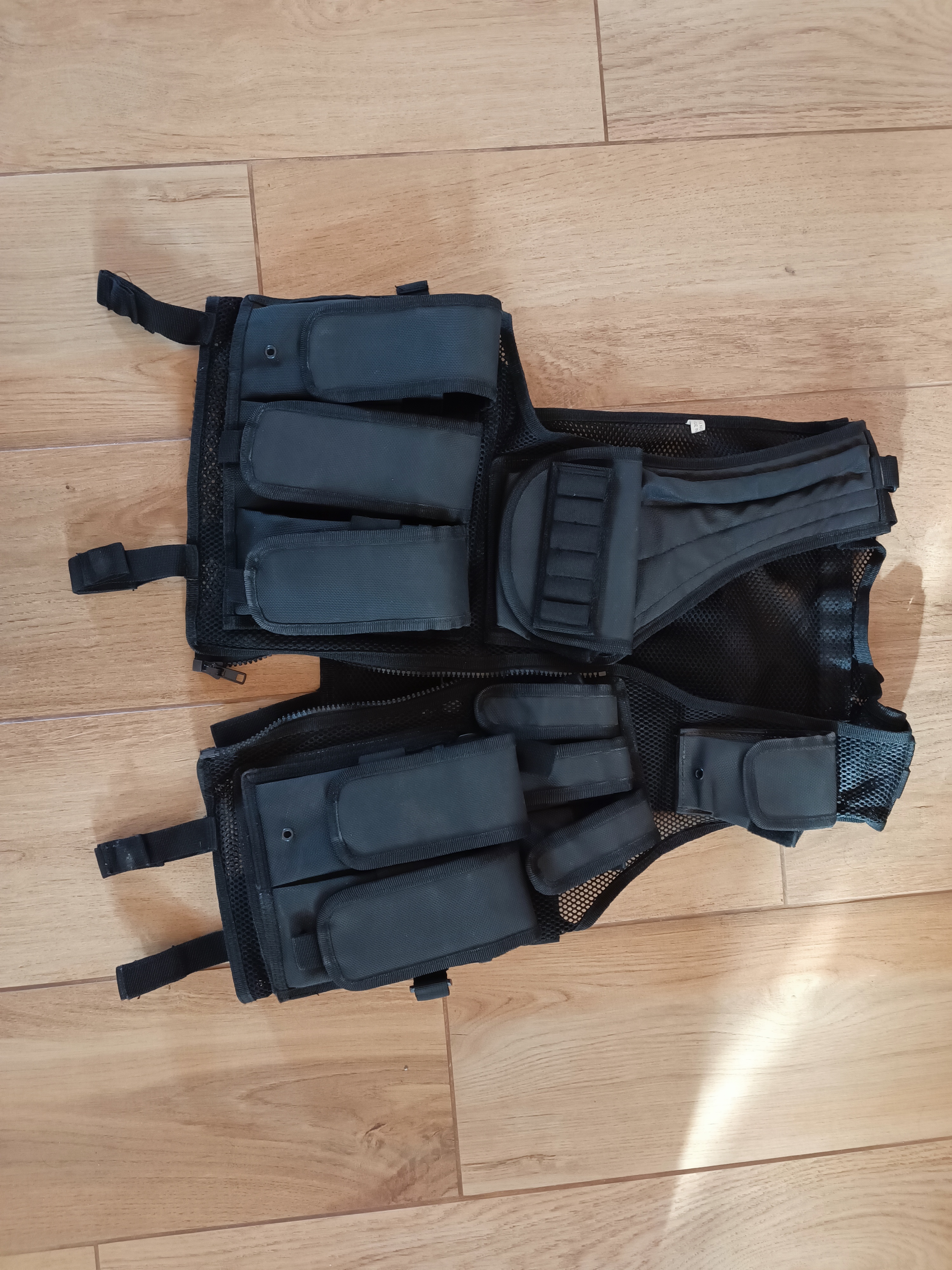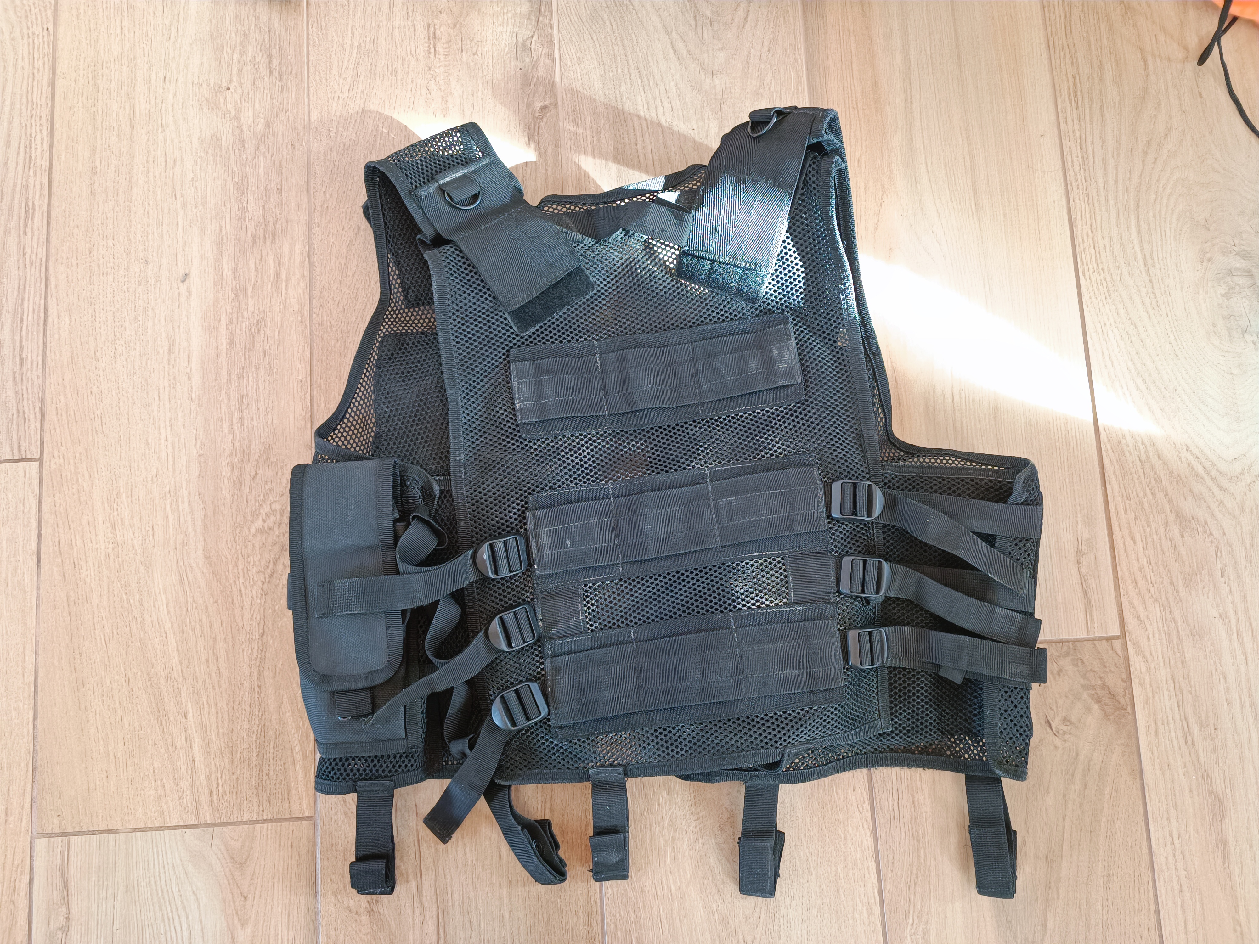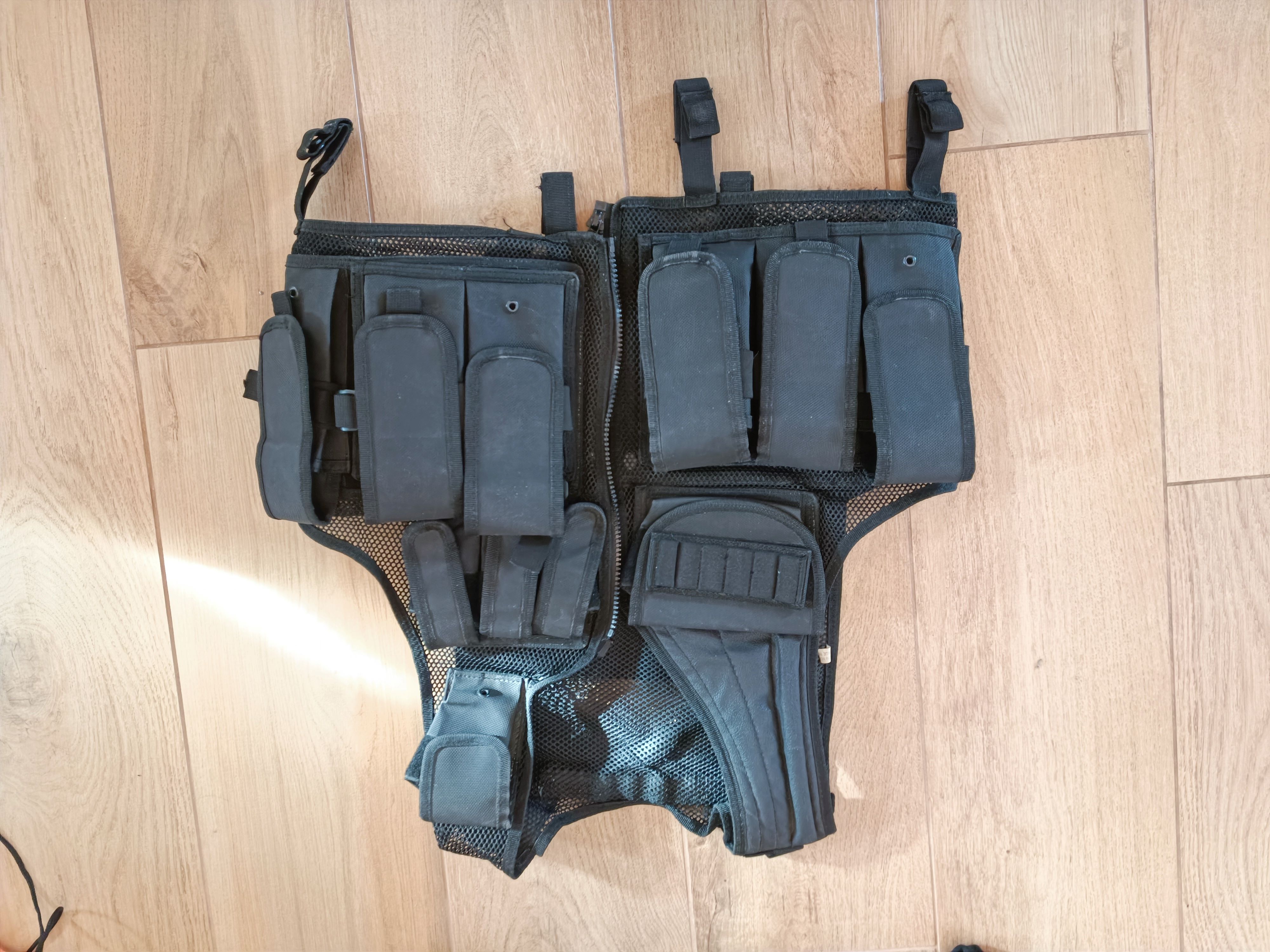 Kamizelka Strike Systems w komplecie z pasem i miękką kaburą. Kamizelka typu "siatka" z ładownicami , używana , z tyłu przebarwienia widoczne na fotkach