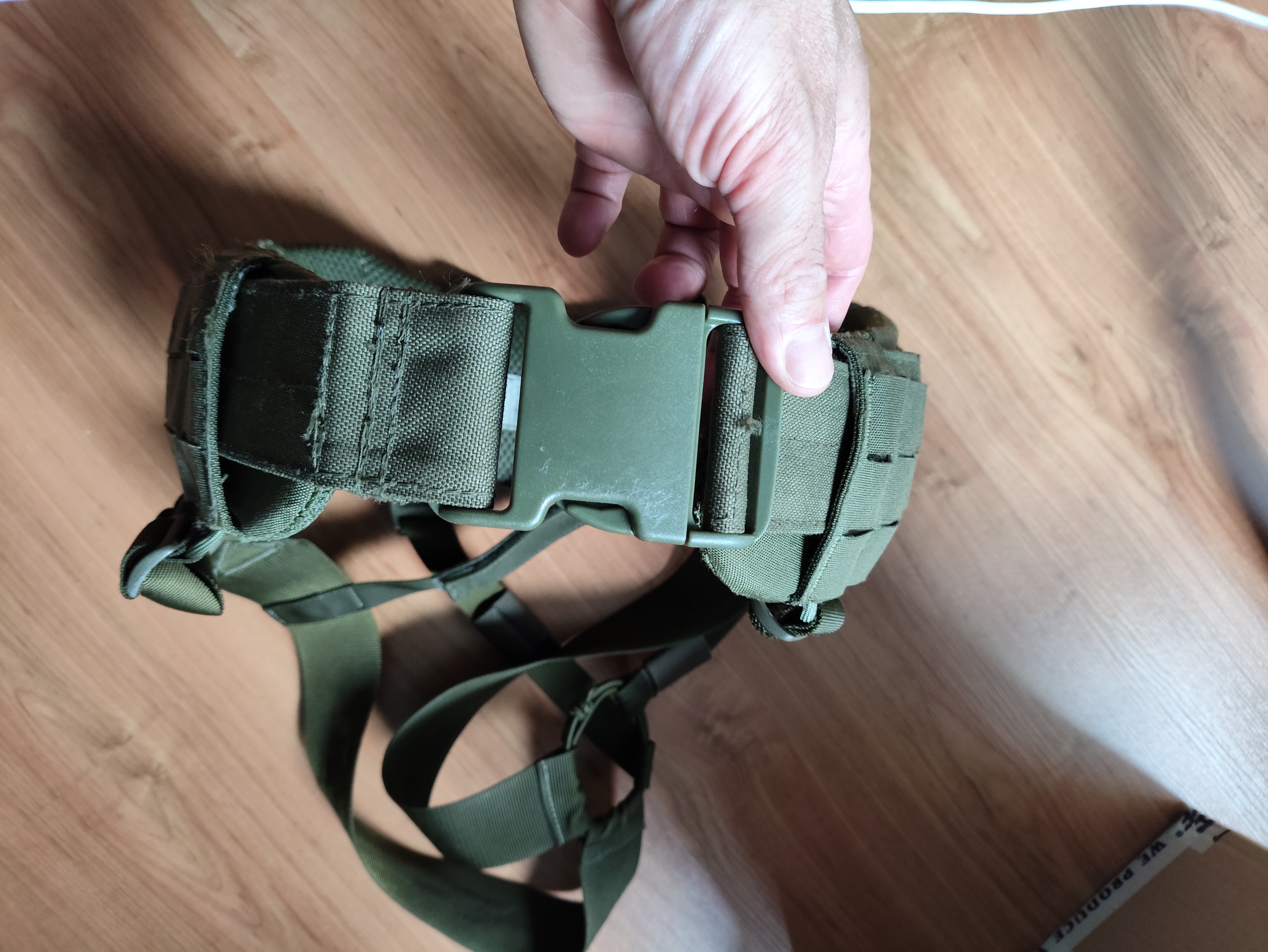 Sprzedam pasoszelki: - pas molle Helikon Competition, cordura olive green, rozmiar S, - szelki M-tac, kolor olive, - sztywny pas do pasa molle, kolor olive. Cena 150 zł + przesyłka.