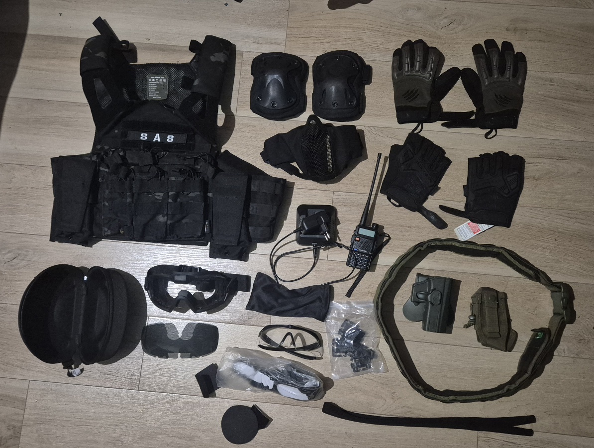 Sprzedam szpej, najlepiej w całosci (300zł do negocjacji) ale moze być odzielnie jesli coś cie zainteresuje pisz dogadamy sie Rzeczy są używane niektóre nowe, byly tylko na kilku strzelankach. - Kamizelka [8FIELDS Premium] z dołożonymi dodatkowymi ładownicami z przodu - 100zł - Nałokietniki [PJ] - 20zł - Gogle wentylowane (zero śladow) [FMA] - 50zł - Okulary taktyczne [ESS Crossbow] (widac rysy po kulkach) - 50zł - Stalowa maska siatkowa 2.0 [CS] - 20zł - Rekawiczki Taktyczne (nowe) ArmoredCore BattleFlex [M] -25zł - Rękawiczki Mechanix m-pact (nowe) [L] - 80zł - Pas taktyczny Condor [M] nowy - 50zł - Kabura AmmoMax do CZ P-07, P-09 (nowa) - 30zł - Krótkofalówka Baofeng UV 5R (nowa) - 50zł Najlepiej odbior osobisty ale wysyłka tez. 519055982 sarna1009@gmail.com Sprzedaje tez replike, zapraszam