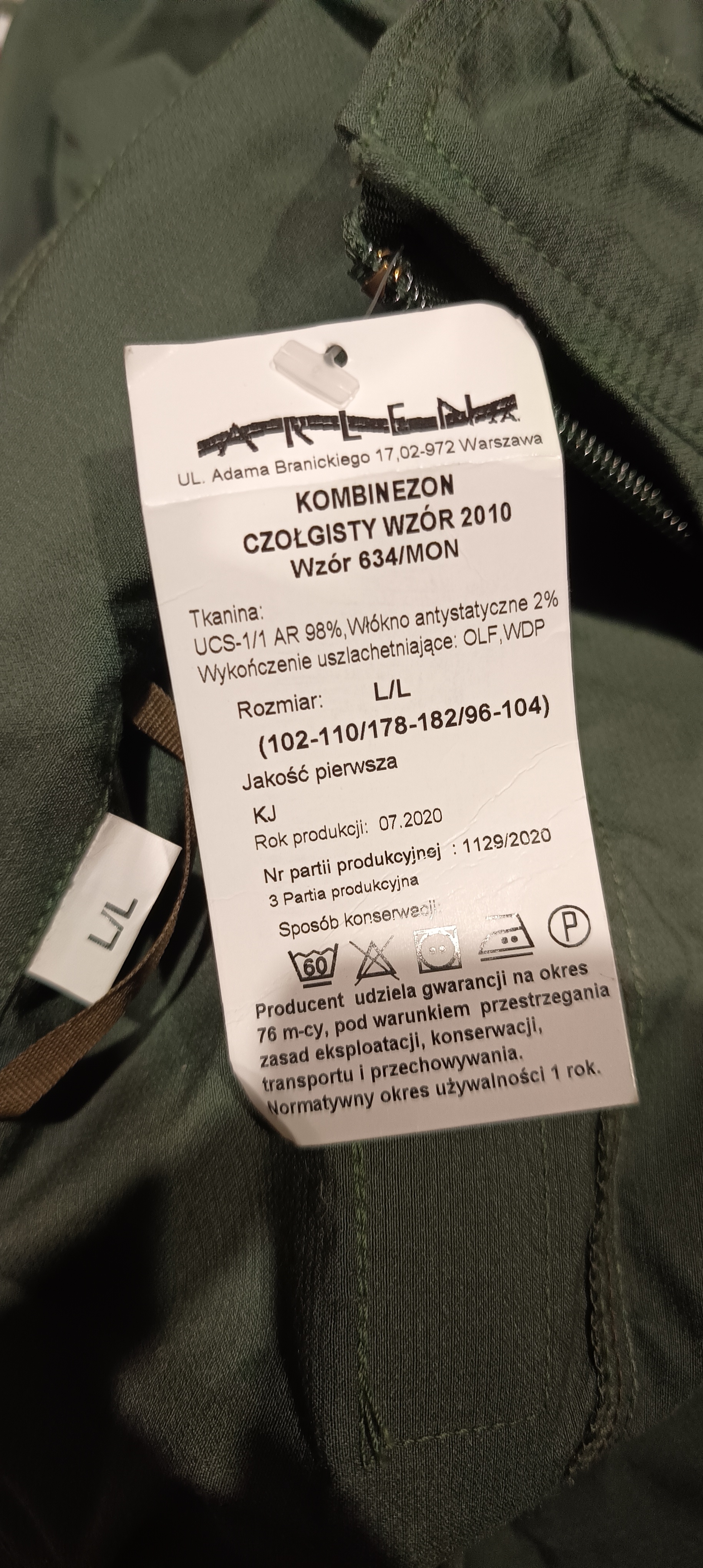 16. Witam, posiadam na sprzedaż Nowy kombinezon czołgisty wz2010 w rozmiarze L/L. Dedykowany dla osoby o wzroście 178-182cm. W klatce 102-110cm, pasie 96-104cm. Nigdy nie używany z metką. Cena: 200zł. Koszt wysyłki za przedpłatą 15zł, za pobraniem 20zł. Przy zakupie co najmniej dwóch rzeczy wysyłka gratis. Zapraszam do kontaktu pod numerem 608 516 659. Z faktu na dużą ilość ogłoszeń proszę o podanie numeru porządkowego podanego przed opisem.