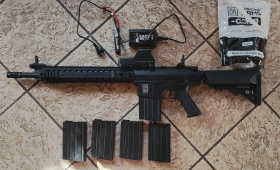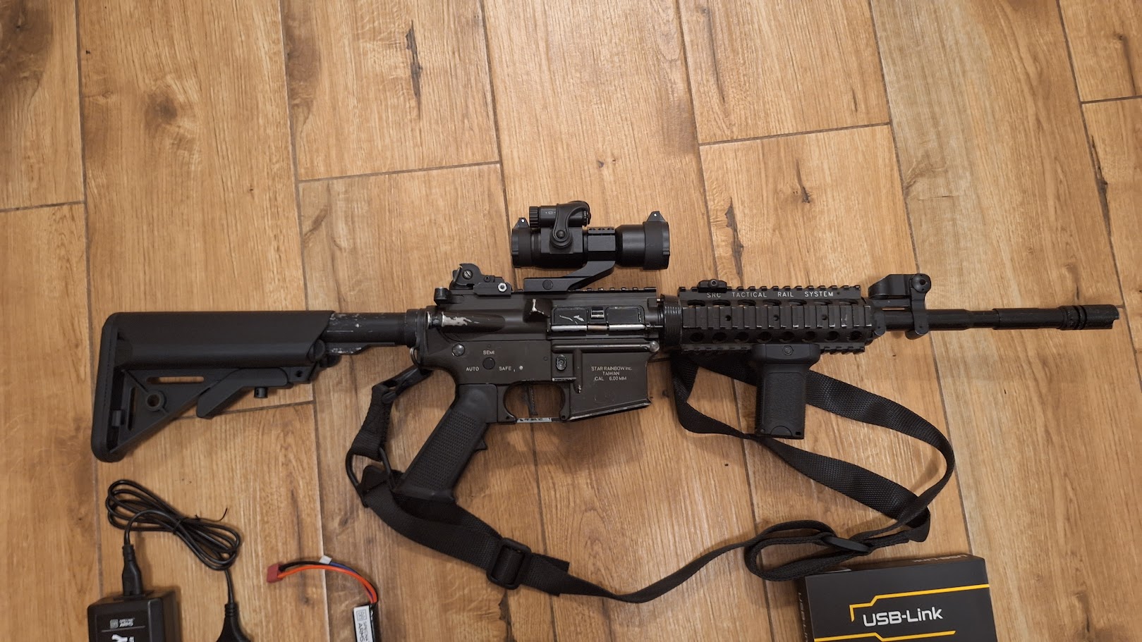 Sprzedam replikę M4. Składana dla siebie ale pojawił się nowy projekt na który potrzeba gotówki. Zewnętrznie: -Cała replika to SR4 od SRC po za kolbą SF (mam oryginalną kolbę A2 do ale nie ma w niej miejsca na baterię) -Kolimator Theta (nowy, wypakowany do zdjęć, baterie wciąż są w pudełku) -ucho zawieszenia na ris kopia magpul -pas nośny kopia ms3 magpul -2x stalowy lowcap -chwyt przedni FMA Wewnętrznie: -Szkielet VFC -Łożyska VFC -Listwa dosyłacza VFC -Dysza VFC -Głowica Cylindra SHS ze zmienionym padem na miększy -Cylinder FSP -Tłok Retroarms 14,5 -Głowica tłoka Airsoft parts -Podkładka AOE Gate -Zębatki 18:1 CNC E&L -ETU Gate TITAN -silnik neodym, z tyłem wykonanym na cnc Komora lufa -komora VFC -lufa maple leaf -gumka maple leaf W komplecie USB link, nowa bateria 11.1 1000mAh oraz prosta ładowarka (bateria i ładowarka są nowe) Dla zdecydowanego kupca dorzucę pokrowiec, trochę zjechany ale na start wystarczy. Z rzeczy mniej bardziej istotnych. W prowadnicy są zrobione miejsce pod przewody, bo oryginalnie ich nie było, a zależało mi na zachowaniu oryginalności części SRC, kolba jest wyjątkiem ze względu na miejsce na większą baterię niż ta, która jest w komplecie. Lufa zewnętrza to stop, nie czysta stal ale magnes łapie, na pewno to nie jest znal. Oryginalnie była skręcana, obecnie jest sklejona na sztywno. Części gb, po za titanem i zębatkami są nowe lub z zerowym przebiegiem. Na wszystkie pytania odpowiem, mogę dosłać więcej zdjęć. Możliwość odbioru osobistego z testem na miejscu możliwa po wcześniejszym ustaleniu. Kontakt PW potem mogę podać nr telefonu do kontaktu.