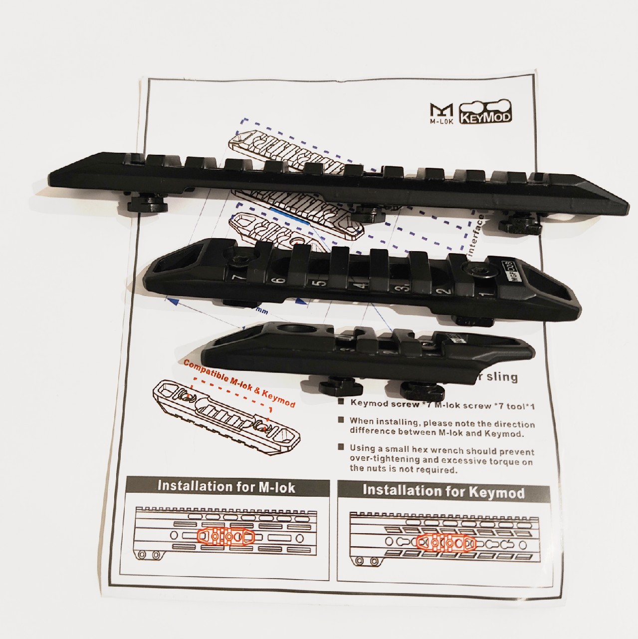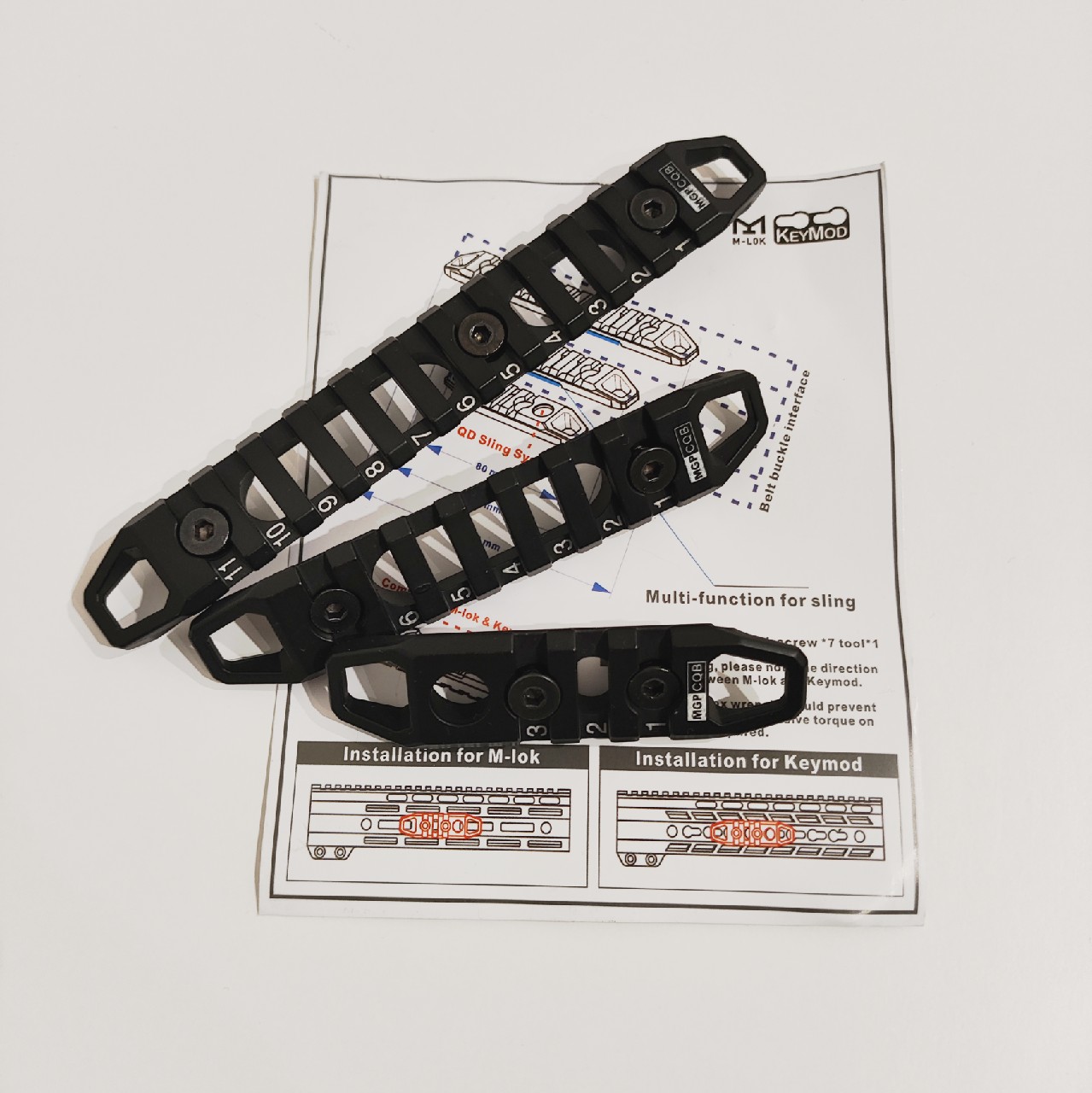 Oferuję komplet szyn montażowych na m-lok lub keymod 3 szt Materiał metal, stan jak nowe