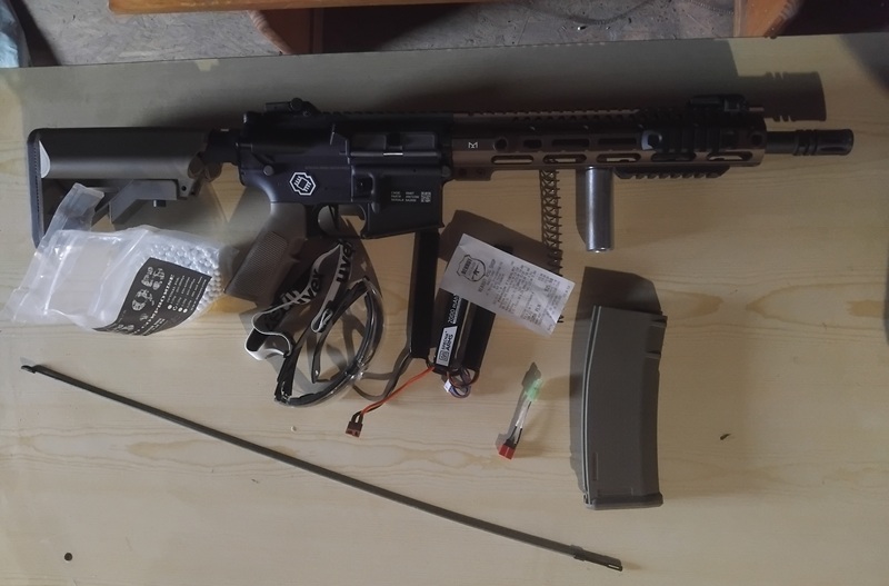 Siemanko, sprzedaje praktycznie nową replikę, kupioną w sobotę na szybko w sklepie Rekrut ASG w Poznaniu, posiadam paragon, replika była tylko i wyłącznie na jednej imprezie w niedziele. Jako że nie lubię sprzedawać szitu została wyczyszczona, wypodkładkowana i lekko zmodernizowana: - o-ring na głowice tłoka AirsoftPro (drugi z opakowania w zestawie) - podkładki pod zębatki 0.1mm, 0.2mm Modify - stalowy cylinder SHS - dysza Delta Armory - sprężyna SP120 Guarder - listwa popychacza dyszy czerwona Novritsch GRATIS: - okulary UVEX na gumce - drugi szkielet gearbox'a QD Delta Armory wraz z zębatkami (18:1) i łożyskami - reszta kulek 5,95mm 0.25g około 1000szt. Całość chodzi bardzo dobrze kulka leci naprawdę daleko i celnie. W zestawie: - replika M4 wraz z kartonem i paragonem - akumulator Li-Po 11.1v 2000mah na t-connecta kupiony - oryginalna sprężyna specnowską m120 (ale bliżej jej do M110) - przejściówka z t-connect na małą tamiyje Można przyjechać i zobaczyć działanie, mogę nagrać filmik z działania, wrzucę parę fotek reszta dostępna po kontakcie dla zainteresowanych. Replika generuje teraz około 1,9 Joula (450 fps) na kulkach 0.25g