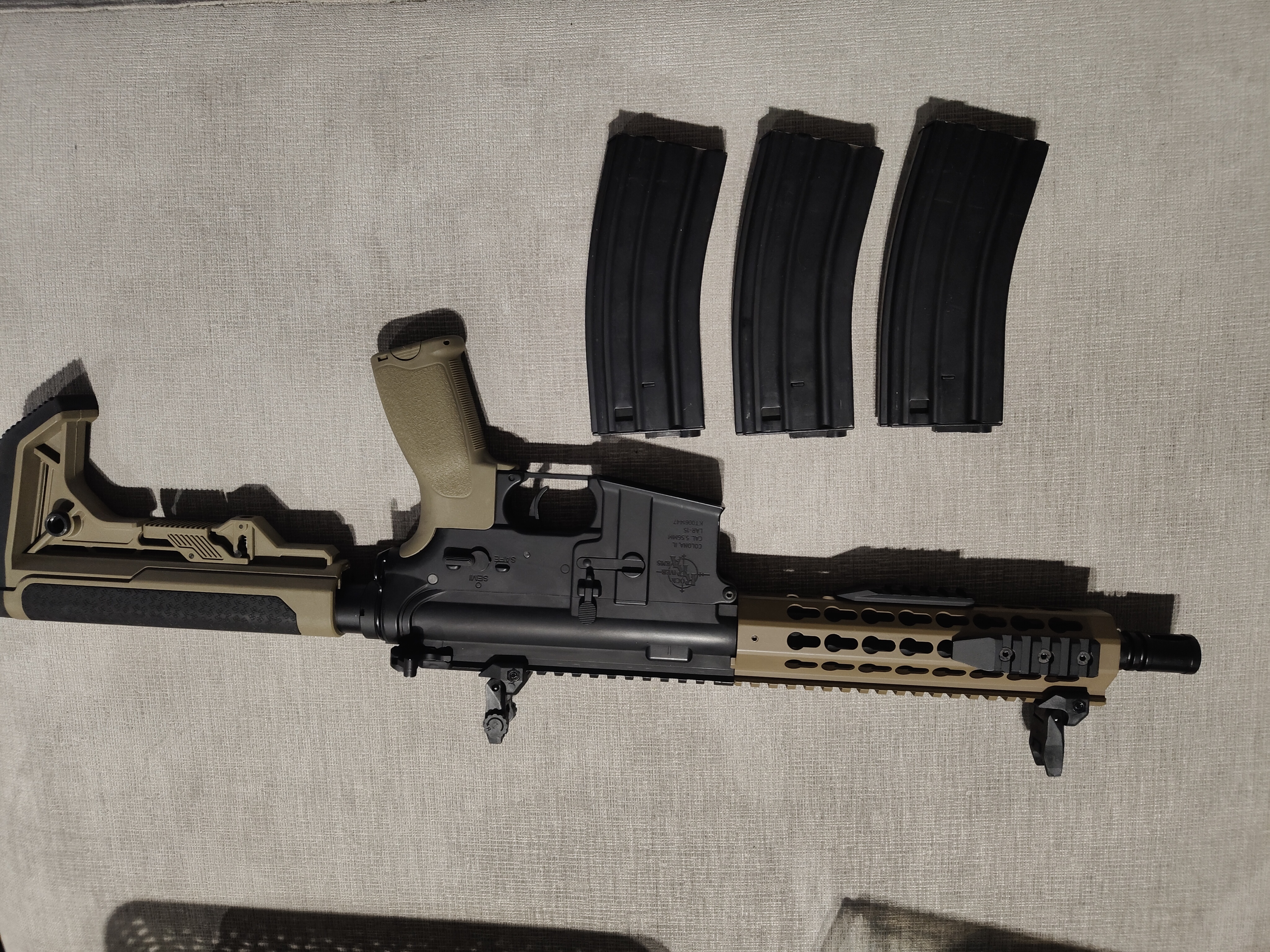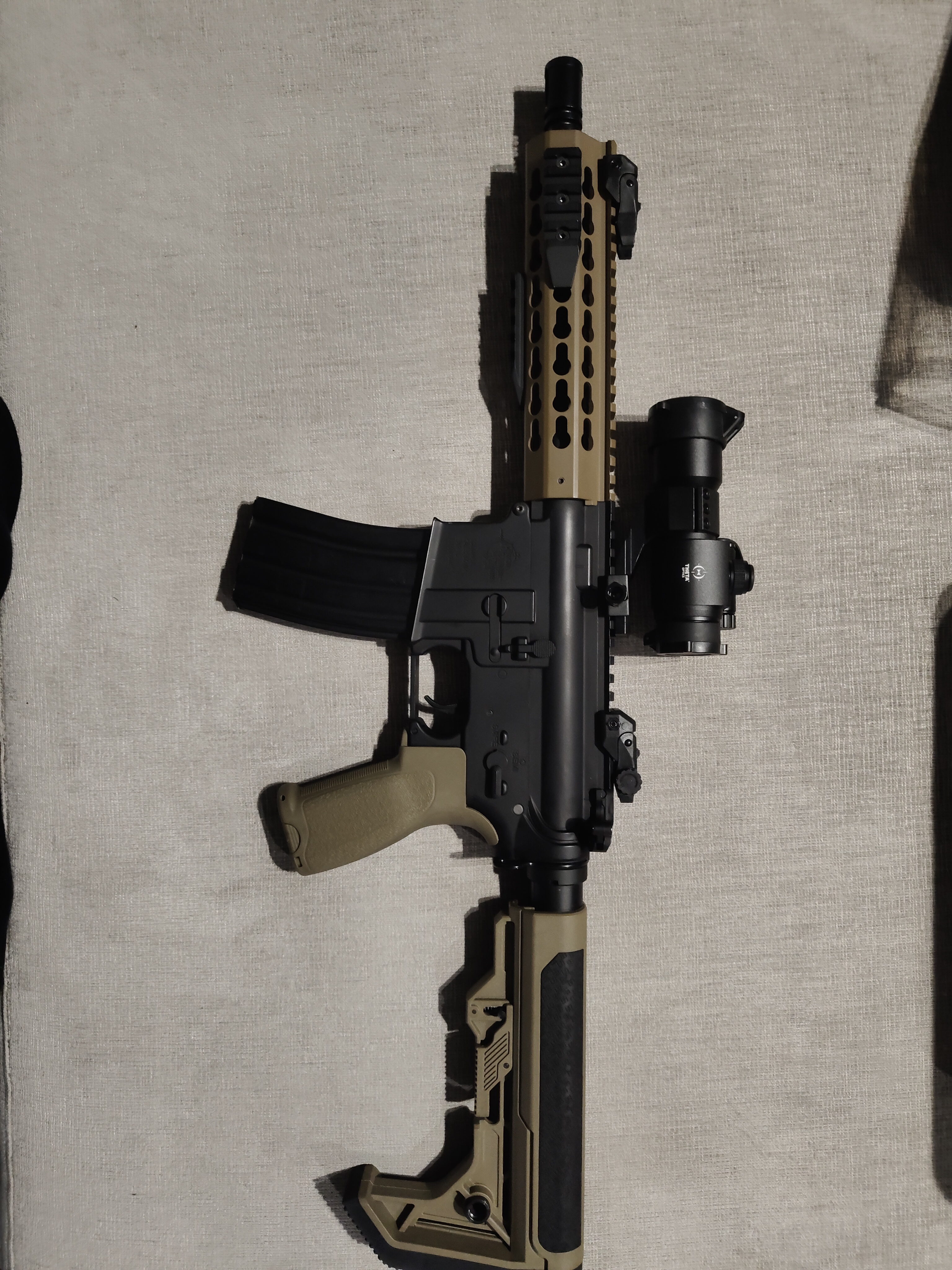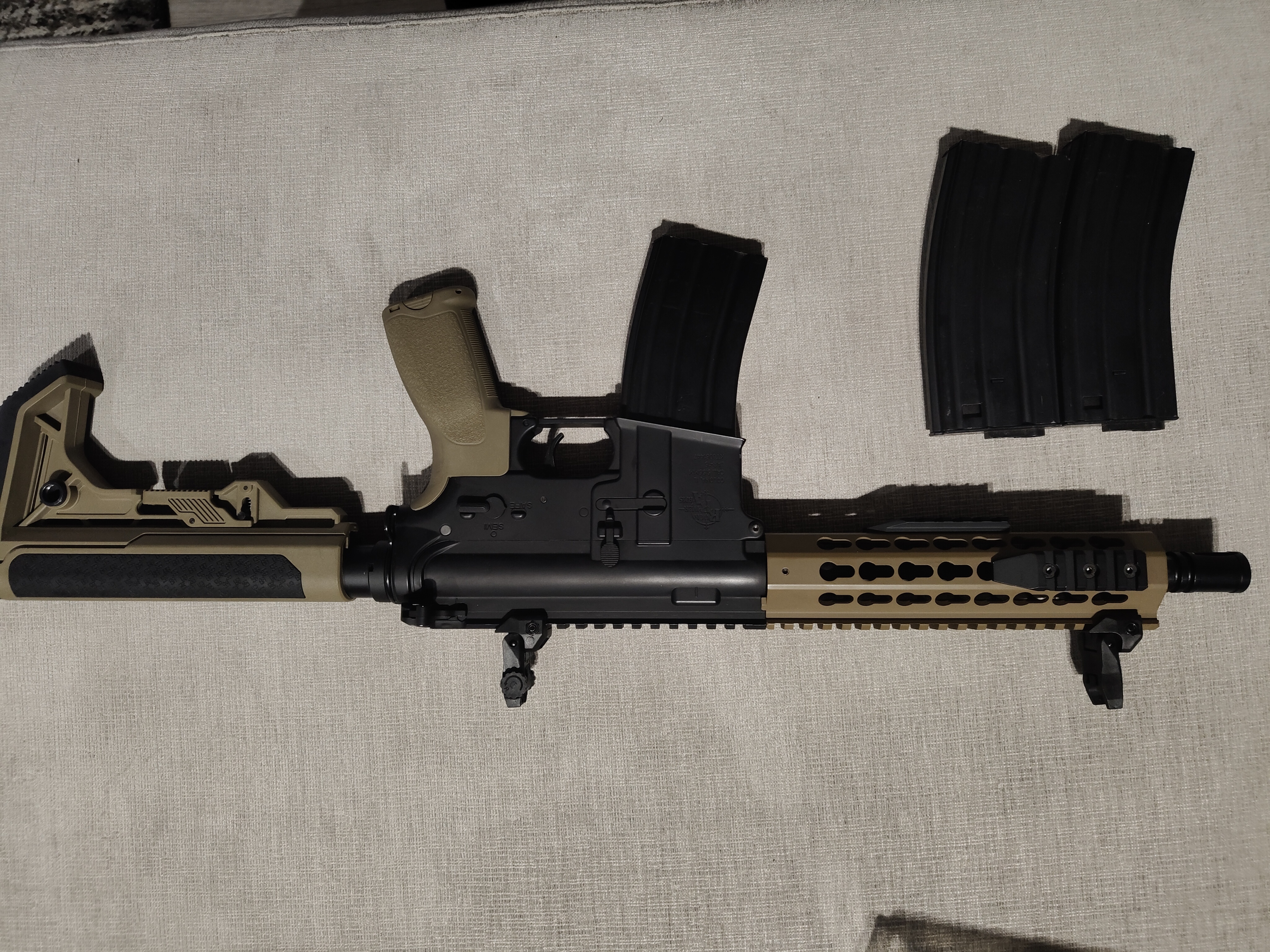 Sprzedam replikę Specna arms e08 od serii z RRA(rock river arms), używana sporadycznie jako zapas na strzelankach CQB. Stan bardzo dobry. Zmieniona gumka i dysza. Przesmarowana i wypodkladkowana. Aktualnie generuje 0.8j na kulkach 0.25. Zestaw: replika, 3 magazynki, kolimator z dodatkową osłoną, bateria 11.1. Cena do negocjacji