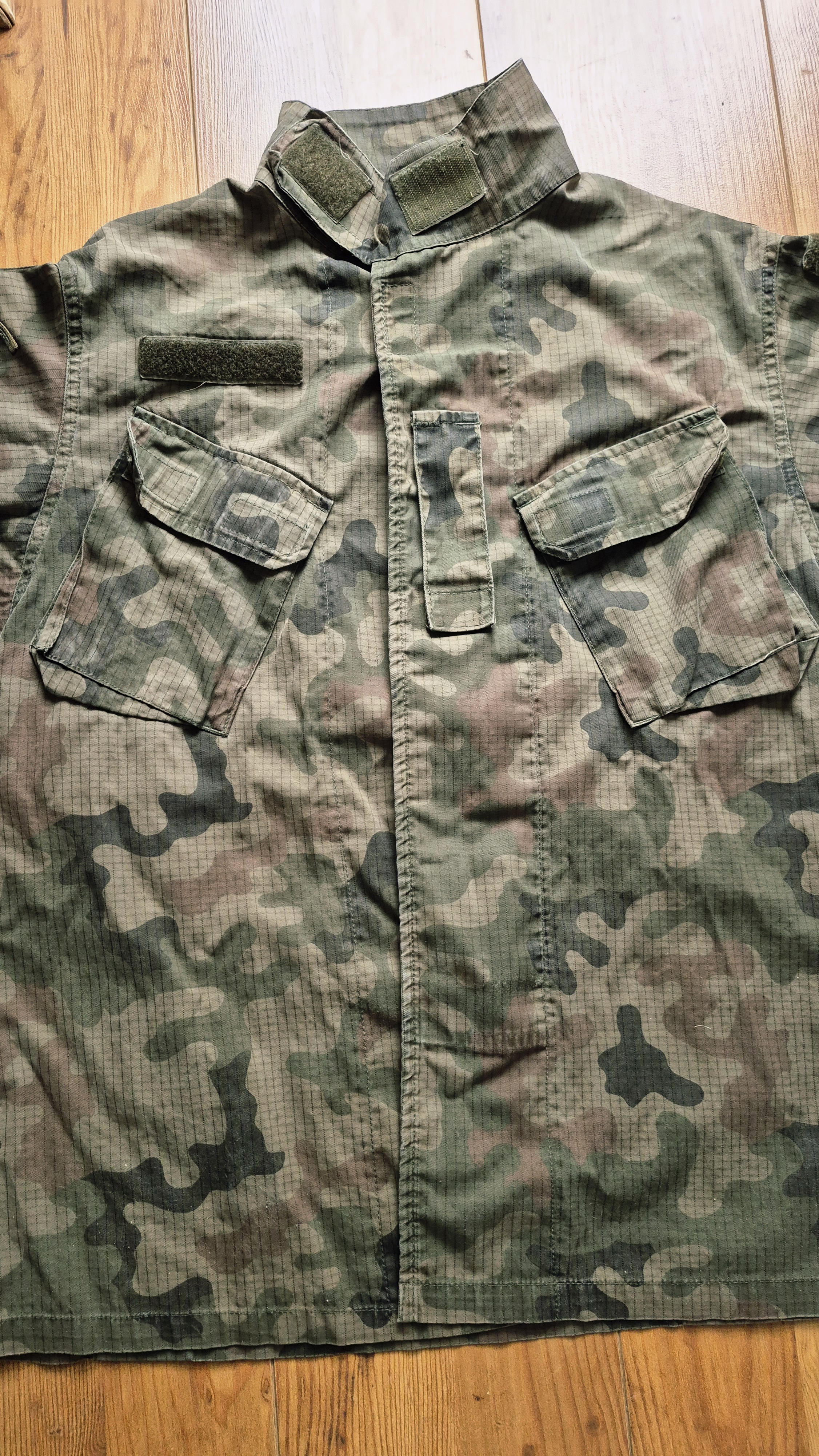 Bluza mundurowa wz 2010 letnia Kamuflaż pantera wz 93 Rozmiar o ile pamiętam to L/XL Ja mam w klacie 106, wzrost 182 i waga 82 kg i pasuje świetnie Produkcja PPHU IMA Używana