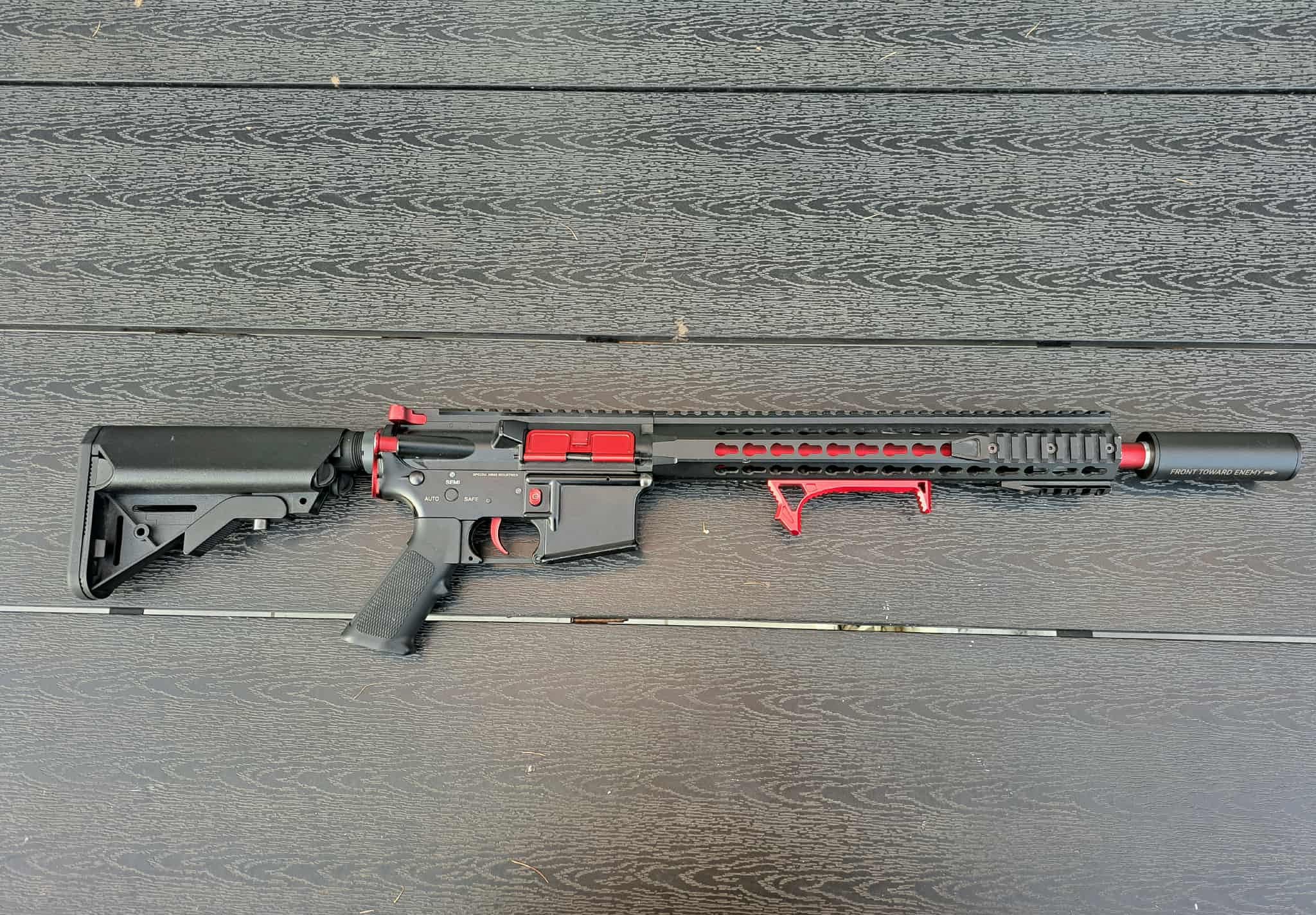 Na sprzedaż replika, którą bardzo lubię, jednak przesiadam się na hk416 (lubie HK) więc tej już nie potrzebuję. Replika działa. Kolor dodatkowych elementów to w zasadzie wiśniowo/czerwony niż czerwony ale na zdjęciach niestety tak wychodzi. Jestem drugim właścicielem tej repliki, wszystko co jest w niej jest stockowe, poza lufą guarder 6.02mm - 363mm(TN-04). Była na paru strzelankach, nigdy mnie nie zawiodła. Specjalnie zostawiłem ją w stocku - żeby jak inne repliki zawiodą - to ta zawsze strzelała. zdjęcia z chrono z baterią 11.1V i 7.4V - 1,51J na kulkach 0,30g - SA edge ultra bio. Sam używałem na baterii 7.4 bo baterię 11.1V mam kanciasta do atrapy peq :-) Linku do Gunfire, nie da się wstawić ale po wklejeniu w wyszukiwarkę można łatwo odnaleźć. Mam jeszcze kolimator/magazynki/baterię 7.4V 2000mAh od SA(którą używałem do repliki) - za drobną dopłatą mogę dorzucić.