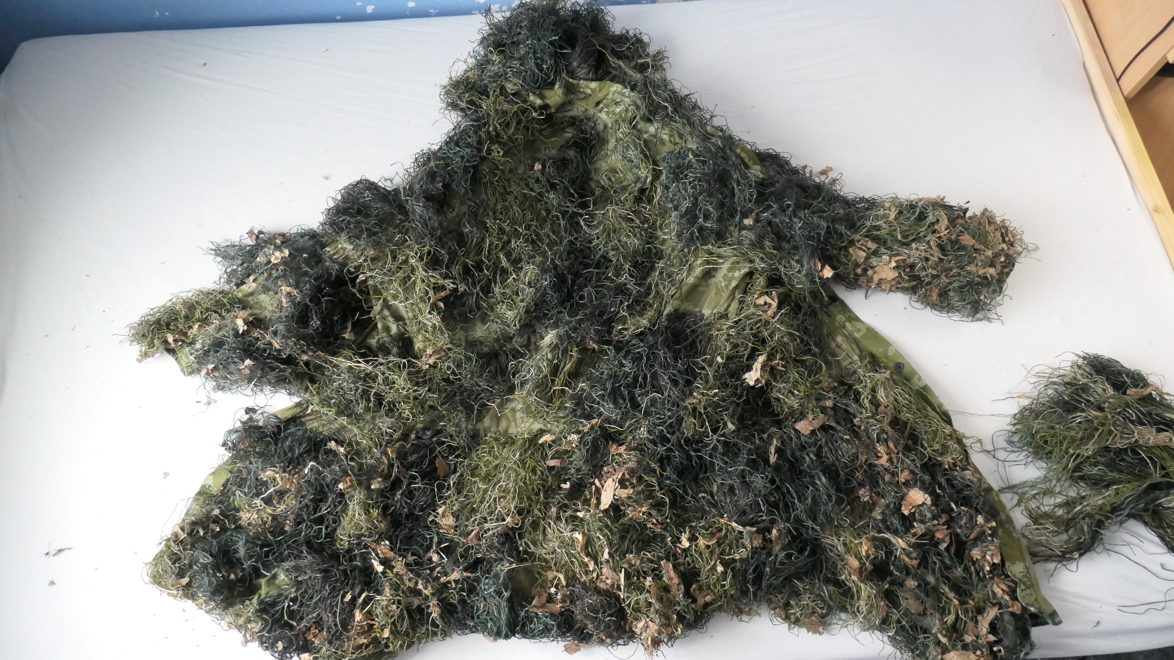 Witam. Mam dziś do zaoferowania strój maskujący Ghillie. Strój ten jest w woodlandzie i jest produkcji Mil Tec, Sam strój jest używany i przydałoby się go wyprać (sporo przyczepionych liści) z tego powodu wystawiam go tanio i jestem otwarty na negocjacje. Zapraszam do kontaktu i na pozostałe moje aukcje.