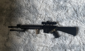 Witam. Mam dziś do zaoferowania nową minę Claymore M18 do rozgrywek ASG. Mina ta jest dosyć ciekawym urozmaiceniem na polu bitwy i z pewnością nie jednego zaskoczy :D Replika jest zbudowana z metalu i plastiku. Z metalu są zbudowane najbardziej newralgiczne części takie jak składane nóżki i trzpień wraz z sprężyną na której opiera się klapka. Mina ta posiada 2 tryby działania: Zbliżeniowy poprzez 2 czujniki nakładające na siebie sygnał uaktywniający zapadkę z odległości już 2 metrów (sprawdzone) Poprzez potykacz czyli zwykła żyłkę (dołączona do zestawu), którą można przymocować do patyka, kamienia czy framugi drzwi. Tryb zbliżeniowy wymaga podłączenia baterii w miejscu widocznej klapki na zdjęciu z tyłu miny, oczywiście taka bateria jest też w zestawie wraz z ładowarką do niej. Do przygotowania tego trybu wystarczy podpiąć baterię, sprawdzić czy mruga czerwona dioda, jeżeli tak to znaczy, że cały system jest zasilany, jeżeli nie to trzeba go włączyć poprzez włącznik wewnątrz miny. Od tego momentu wystarczy tylko wsypać kulki poprzez frontowy otwór w minie i ustawić w odpowiednim miejscu, po tej operacji należy przycisnąć boczny przycisk i odczekać 8 sekund do wyłączenia się mrugającej diody, teraz mina jest uzbrojona. Maksymalny zasięg kulek wynosi do 12 metrów. Sama mina waży około 800g. W zestawie znajdują się: pudełko mina bateria ładowarka sznurek palik do mocowania w gruncie instrukcja Zapraszam do zadawania pytań i sprawdzenia innych aukcji.
