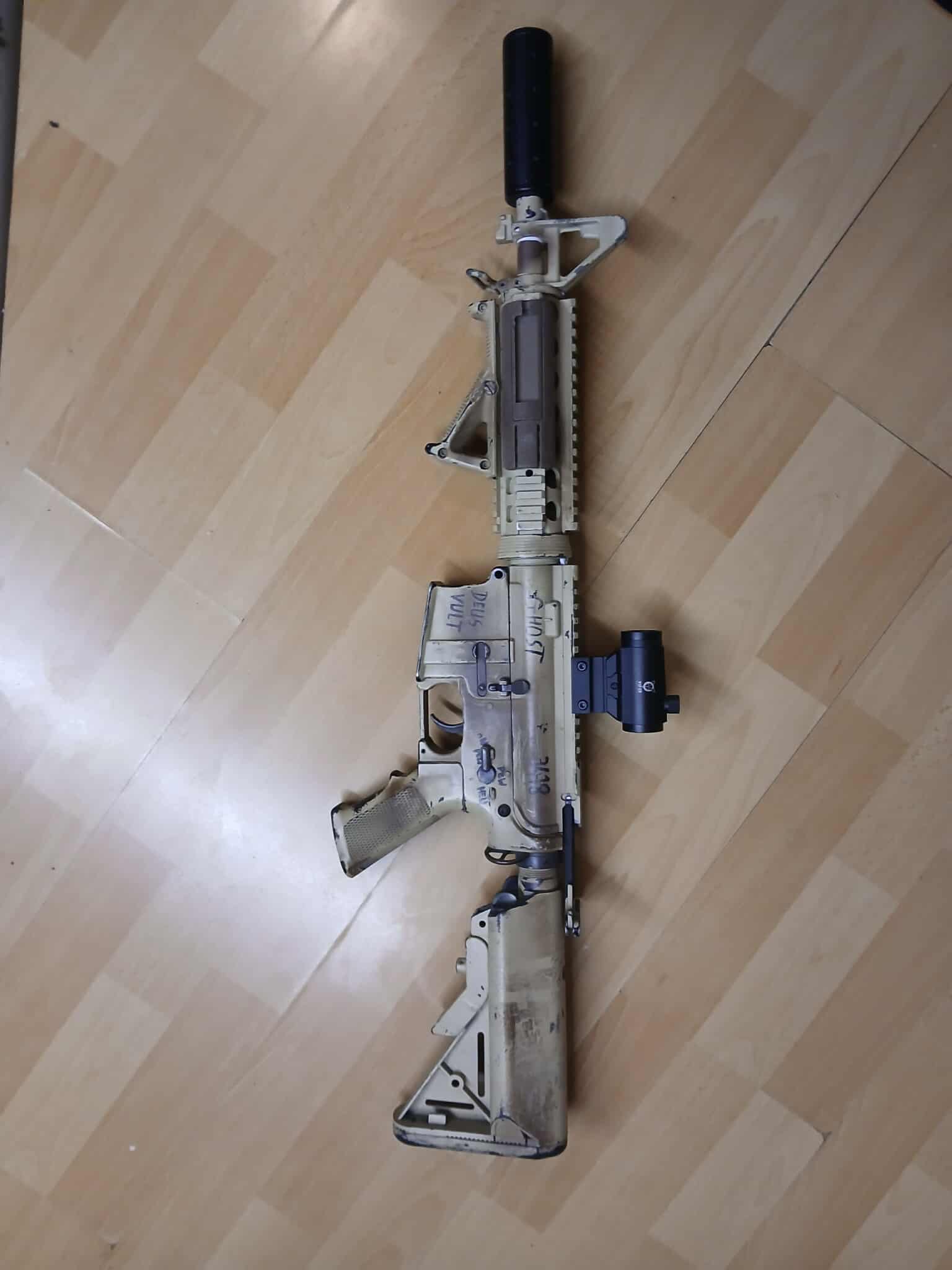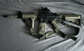 Witam, na sprzedaz mam m4 od specny full metal body, inny front, tlumik magazynki i kolimator w zestawie, sprzedaje z racji iz wrocilem do Polski z Holandii i mialem delikatny wypadek wiec wypadam z asg na dobre pol roku, replika ostatni raz strzelana 7 miesiecy wstecz, replika obecnie jest w stanie blizej nieokreslonym, Napewno nie jest uszkodzona i kwestia przegladu zerowego, wczesniej replika byla jak bodajze robiona u KoteuAirsoft z czego jest plomba Z rzeczy ktore napewno byly zrobione to: -sprezyna jest inna -glowica tloka -glowica cylindra -cylinder typ 1 zeberkowany -dysza -lufa precyzyjna -gumka hopup Z rzeczy ktore MOZLIWE ze sa zmienione to kola zebate lecz nie mam jak sprawdzic Dorzucam 6 magazynkow ktore mialem w szafie Koliamtor sprawny i bateria chyba obecnie dalej trzyma Tlumik takze dorzucam gratis DO REPLIKI NIE MAM BATERII dlatego nie moge jej sprawdzic Z minusow to zlamana dzwignia przeladowania ale to koszt 40 zl, ja zwyczajnie jej nie wymienialem tylko gralem bez bo nie reguluje hopup w trakcie gry, komora hop up jest fabryczna Cena 450 z racji iz replika napewno nie jest uszkodzona, wymaga wkladu maksymalnie 100zl a czesci zmienne powoduja ze na ogniu ciaglym podaje bardzo zacnie