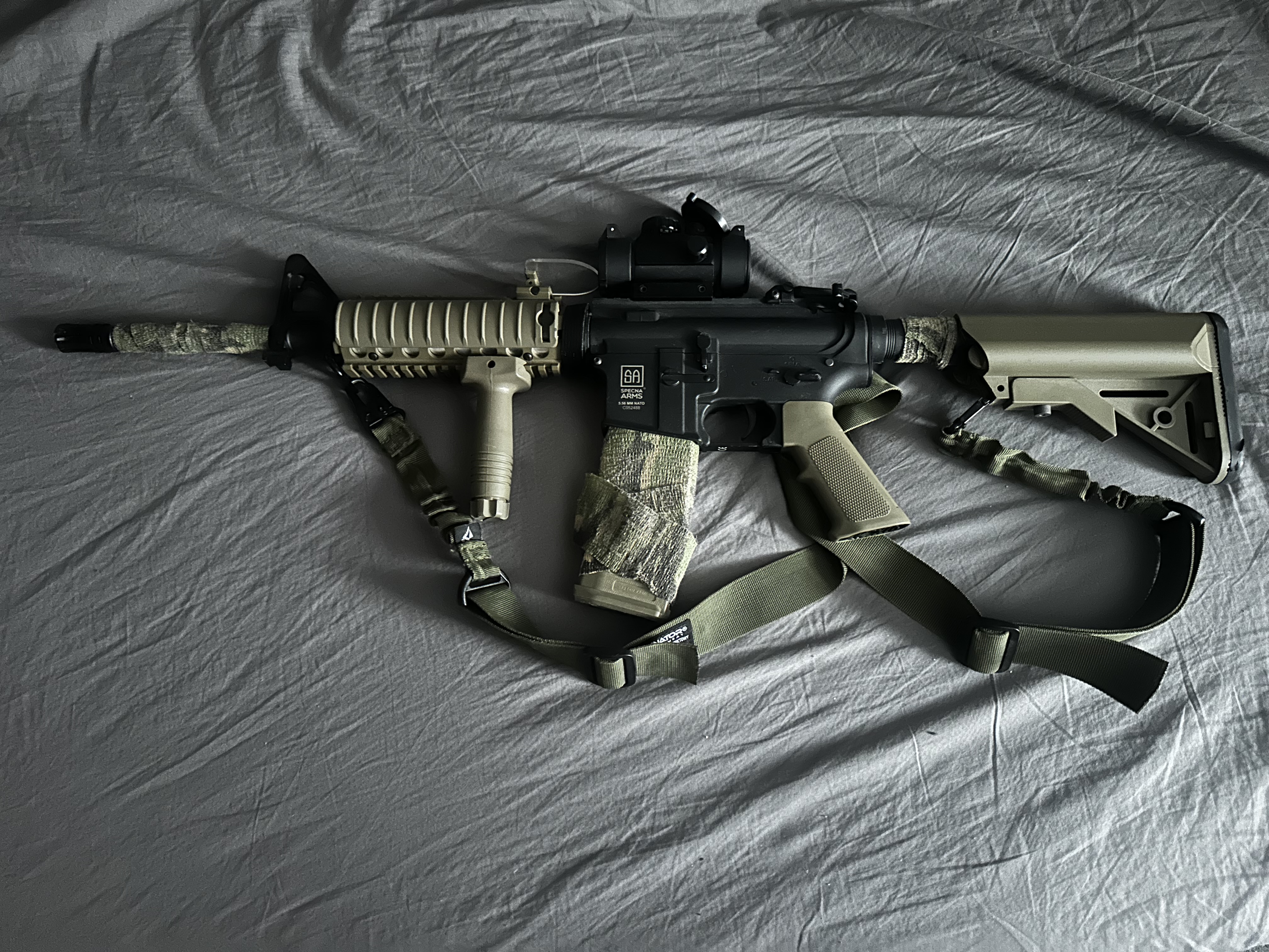 Replika zakupiona w poprzednim roku, w pełni sprawna. Sprzedaje w zestawie wraz z kolimatorem, dorwany gdzieś kiedyś za stówkę. Do tego 1 bateria + Pas dwupunktowy