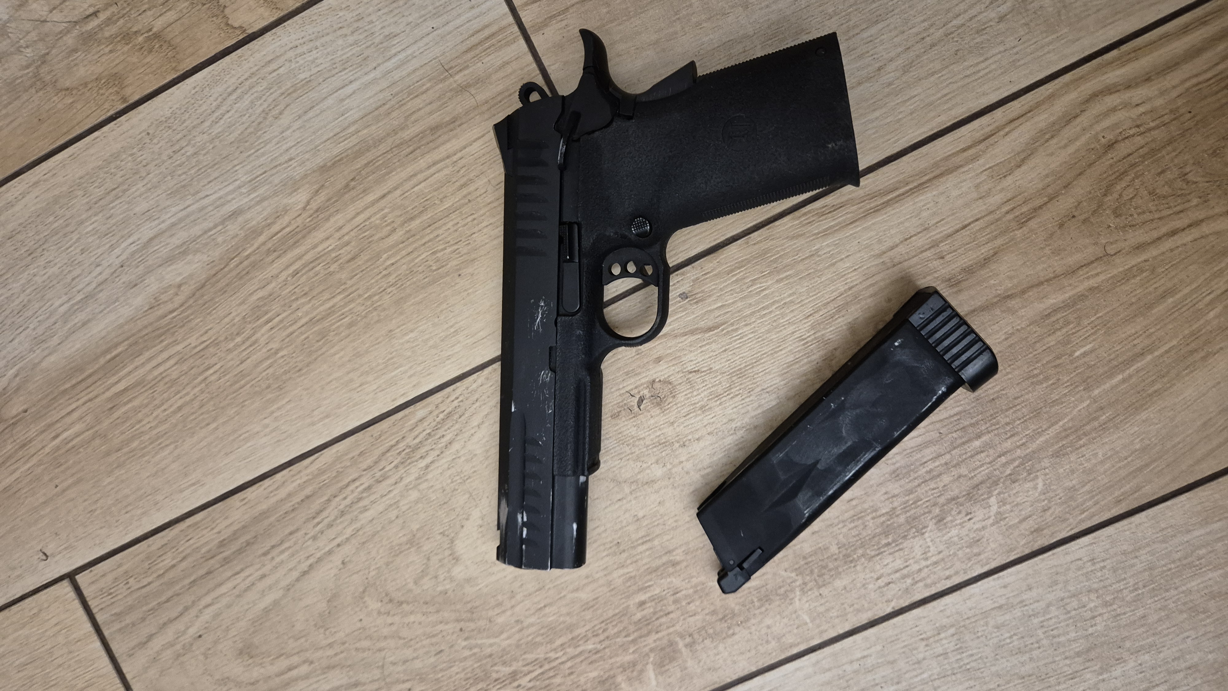 Sprzedam mało używana replikę gbb na co2 jest nią kjw kp-08. W środku wymienione komora, lufa, gumka. Replika z racji że jest na co2 ma czerwoną dyszę kjw co powoduje że strzela ze słabszą mocą niż standardowe co2 (0.9j). Replika sprawna, sprzedaje z jednym magazynkiem