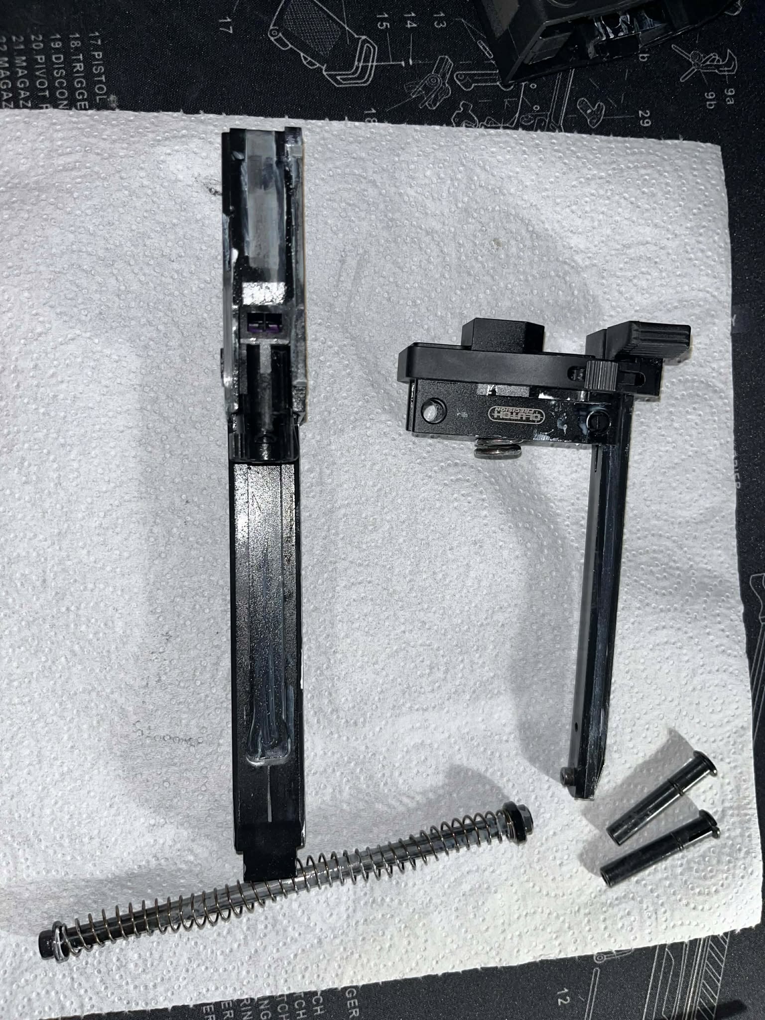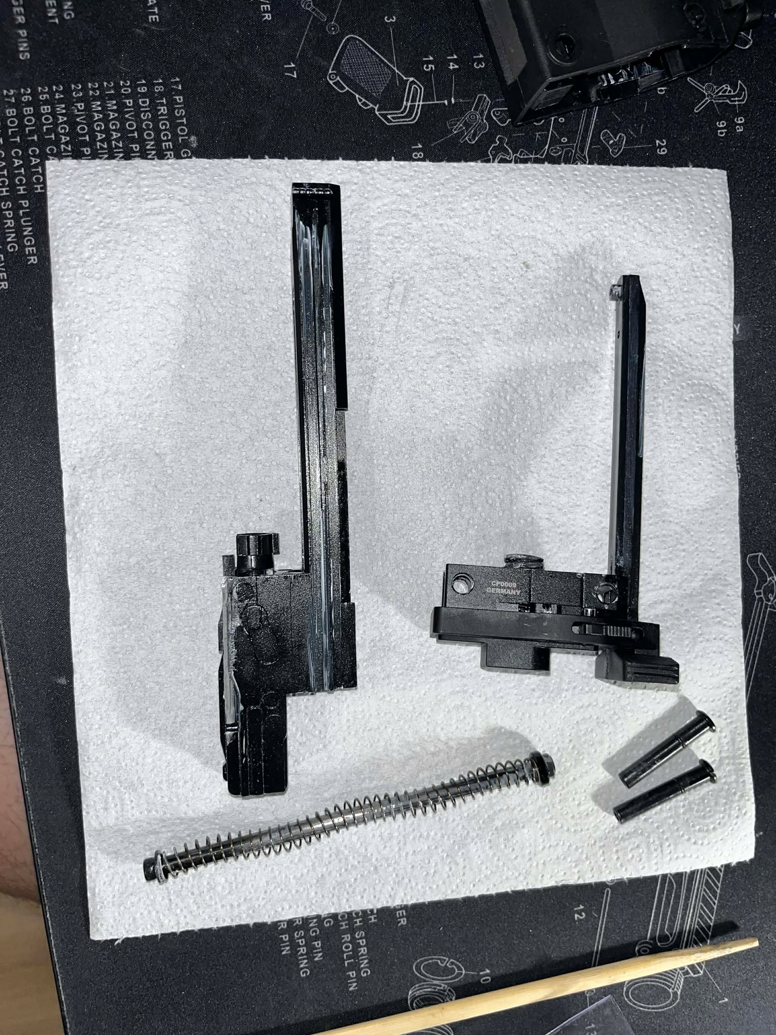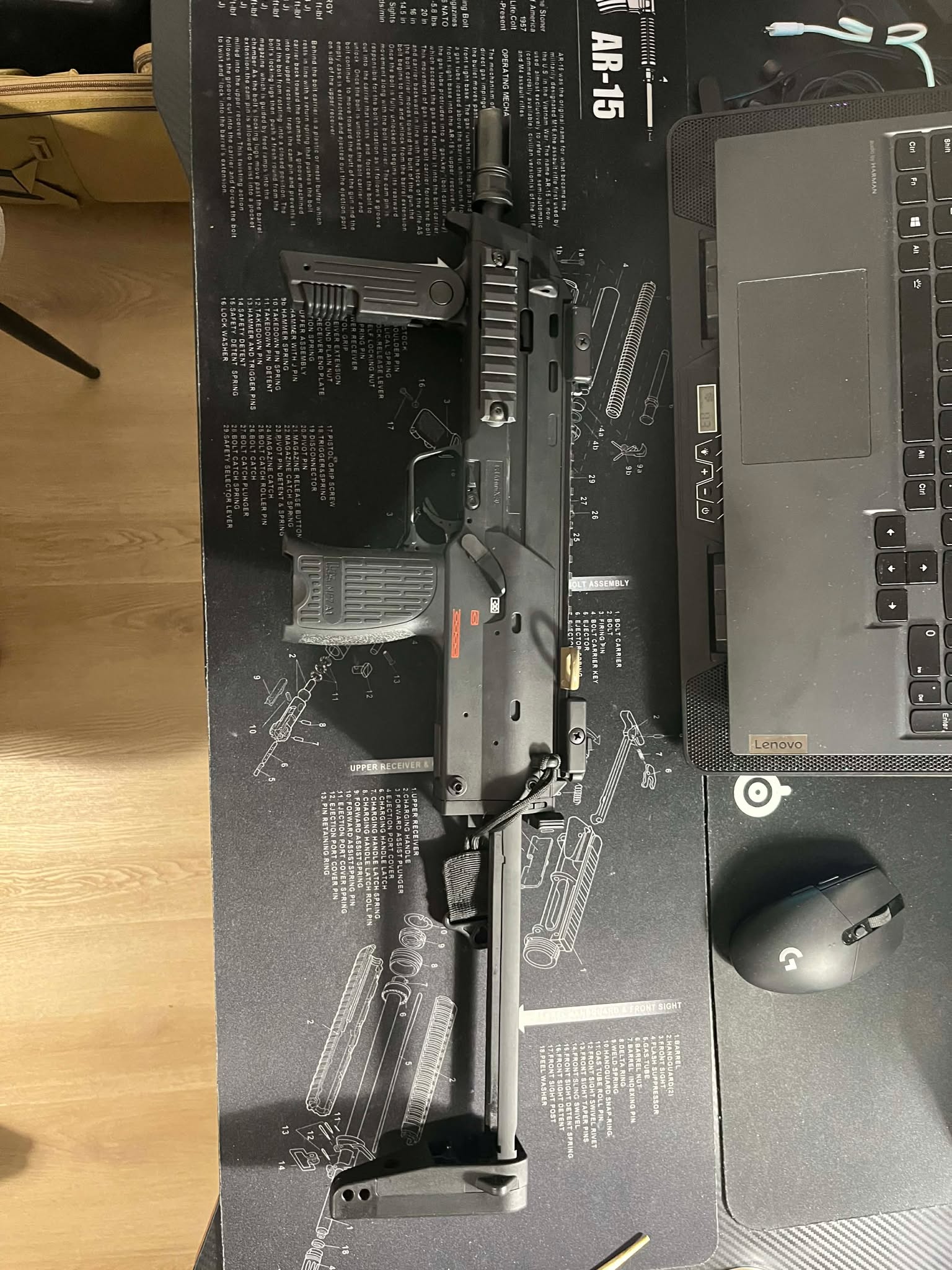 Wprowadzone zmiany: - Dysza Bow Master APNV z regulacją mocy - Lufa Unicorn 180mm - Aluminiowy backplate firmy Clutch Precision - Boczne szyny montażowe - Tłumik płomienia pod montaż replik tłumika ussocom W zestawie 6 magazynków, każdy z nich w pełni sprawny po niedawnym serwisie (wyglądają na zmęczone życiem ze względu na podklejenie tylnej powierzchni aby stabilniej siedziały w rękojeści. Oprócz tego dorzucam zapasowe części, które kupiłem do repliki: - dźwignia przeładowania - dźwignia zrzutu magazynka - dysza - blokadę dyszy - 2 podstawy magazynka - 4 szczęki magazynka - kluczyk do ustawiania hopka oraz ramie dociskowe - stockowy backplate Replika posiada niewielkie ślady używania. Jej przebieg wynosi niecałe 1k kulek.