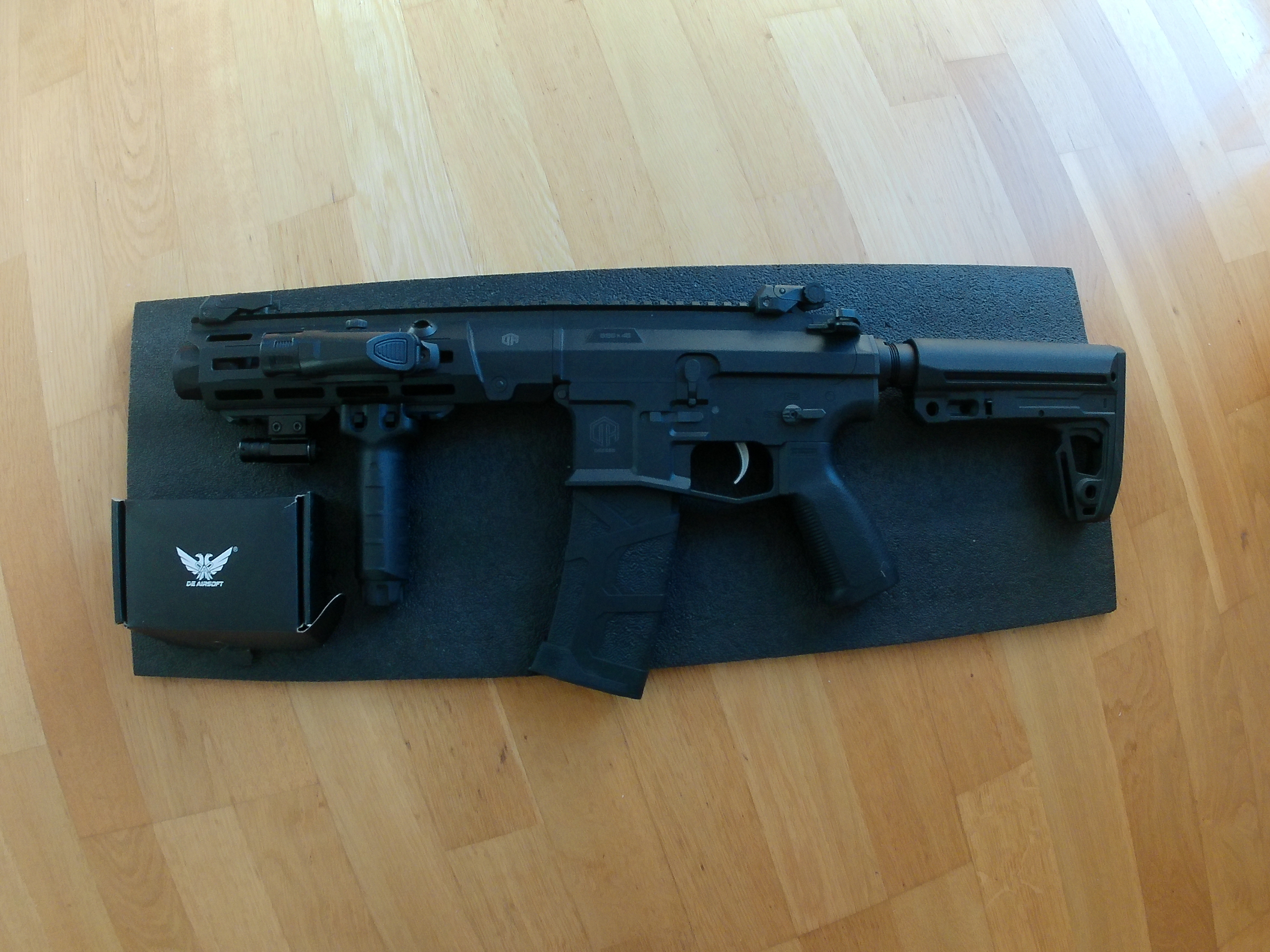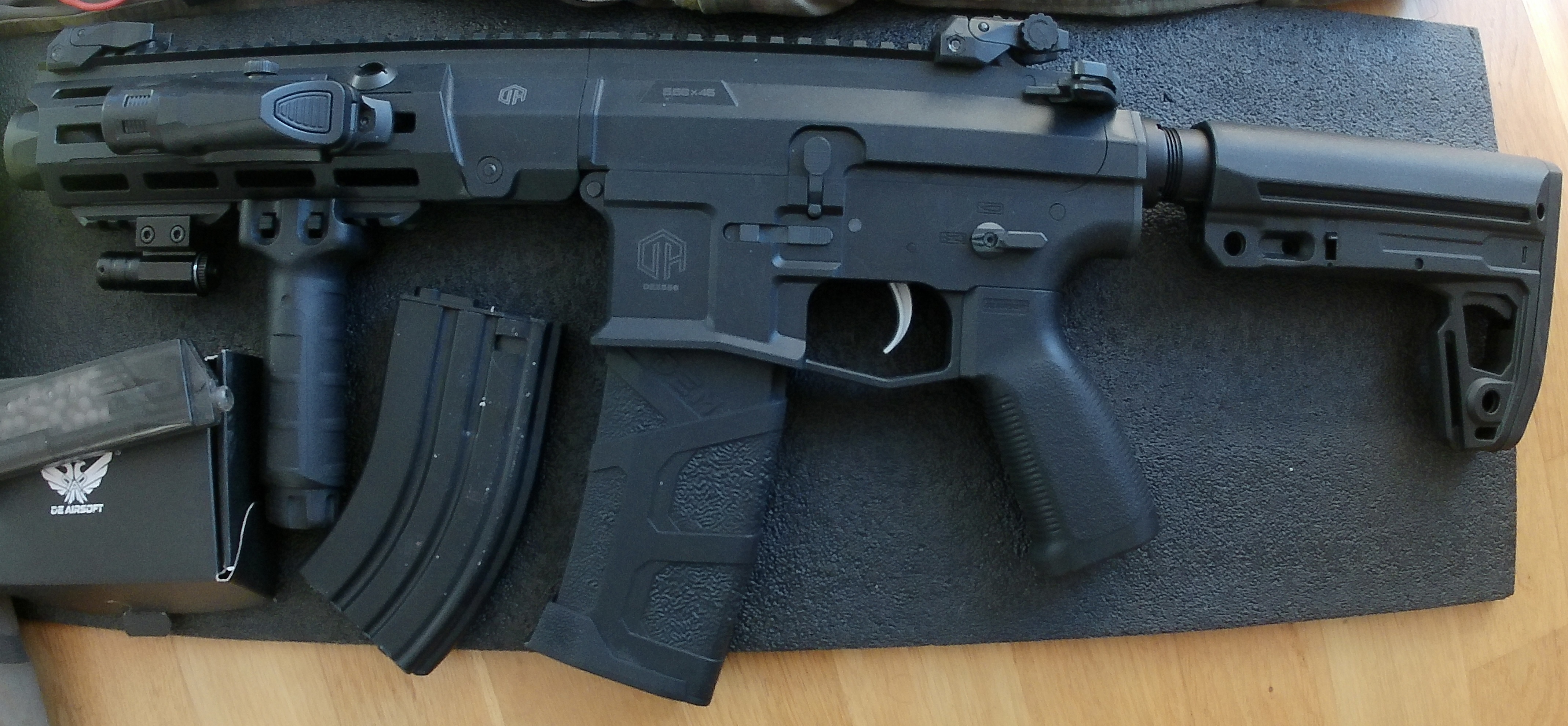 Replika stan dobry dokupiony di niej laser i dokupiona latarka laser dobry latarka slaba 320fps idealne pod cqb Krotka bardzo Dodatkowe trzymadlo wygodne Bardzo dobry akumulator Dodatkowy magazynek Oba magazynki midcapy