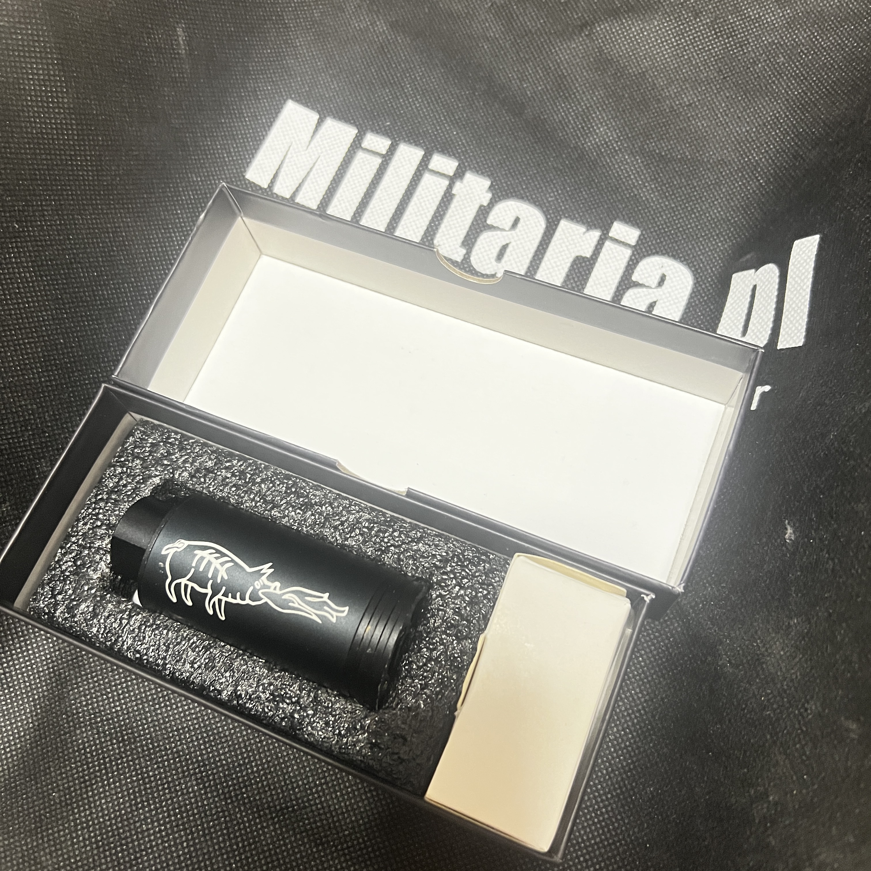 Na sprzedaż tłumik z wbudowanym naświetlaczem kulek typu tracer, który kreuje efektowne smugi/ognia, doskonale do gier nocnych, cqb i nie tylko. Unikalną cechą tłumika jest imitowanie błysku wystrzału, uzyskiwane dzięki diodom LED umieszczonym na froncie tłumika. Prosty montaż umożliwia uniwersalny, lewoskrętny gwint 14 mm. Dla zwiększenia kompatybilności, tłumik może być również montowany do pistoletów ASG przy użyciu dołączonego adaptera na gwint 11 mm CW. Akumulator litowy zapewnia zasilanie tłumika przez ok. 4 godziny i może być ładowany poprzez dołączony kabel micro-USB. Wskaźnik świetlny z tyłu tłumika służy również jako przycisk do przełączania między funkcją tracera i imitowania błysku. Dane techniczne Materiał: aluminium Gwint: 14 mm CCW i adapter na CW 11 mm Długość całkowita: 90 mm Kolor: czarny Stan bardzo fajny :), jedynie parę małych rysek. Kulki do tracera dorzucam gratis !
