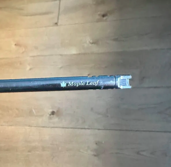 Lufa GBB/VSR firmy Maple Leaf należąca do linii "Crazy Jet". Wywołuje ona w chwili wystrzału turbulencje wykorzystywanego do napędzenia kulki gazu w okolicy swojego wylotu mające zwiększać zasięg repliki. Lufa była wykorzystywana w replice gazowej Tokyo Marui, przebieg lufy wynosi około tysięcy strzałów. Nosi pewne przebarwienia w połowie swojej długości po zewnętrznej stronie.