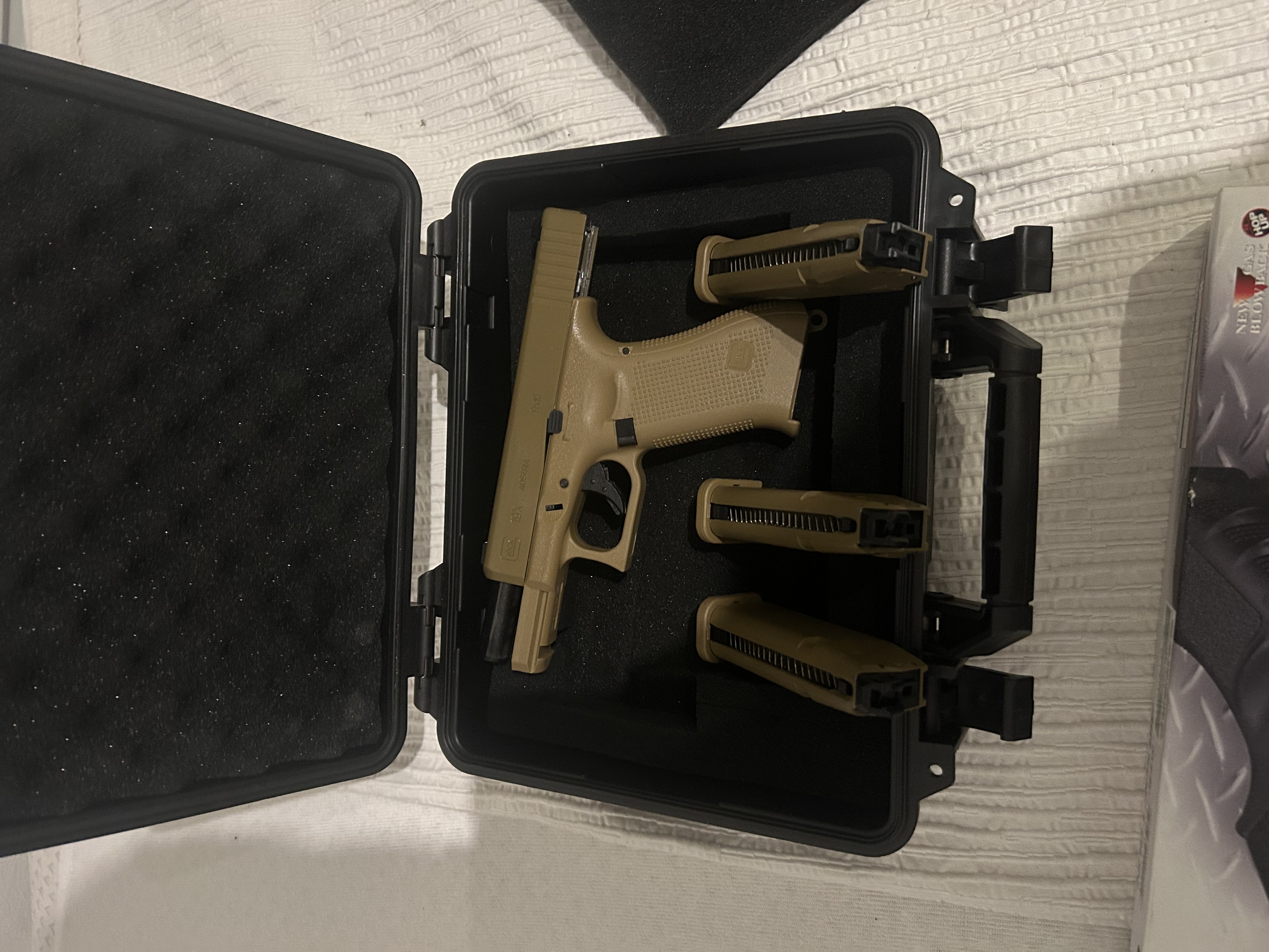 Sprzedam klocka. W stu procentach sprawny. Zadbany. Większość czasu spędził w pudełku. Brak paragonu i organizowanego pudełka. Nie mogę znaleźć. Magazynki szczelne. Replika pluje 0.7-0.8J na kulkach 0,23. Od kilku miesięcy leży w szafie. Ostatnio noaliwiona i wyczyszczona. W środku pełen stock. Do zestawu dorzucam opakowanie po glocku Tokyo Marui który został mi po ostatniej sprzedaży i wszystko co znajduje się w środku. Zachęcam do kontaktu SMS 600203044