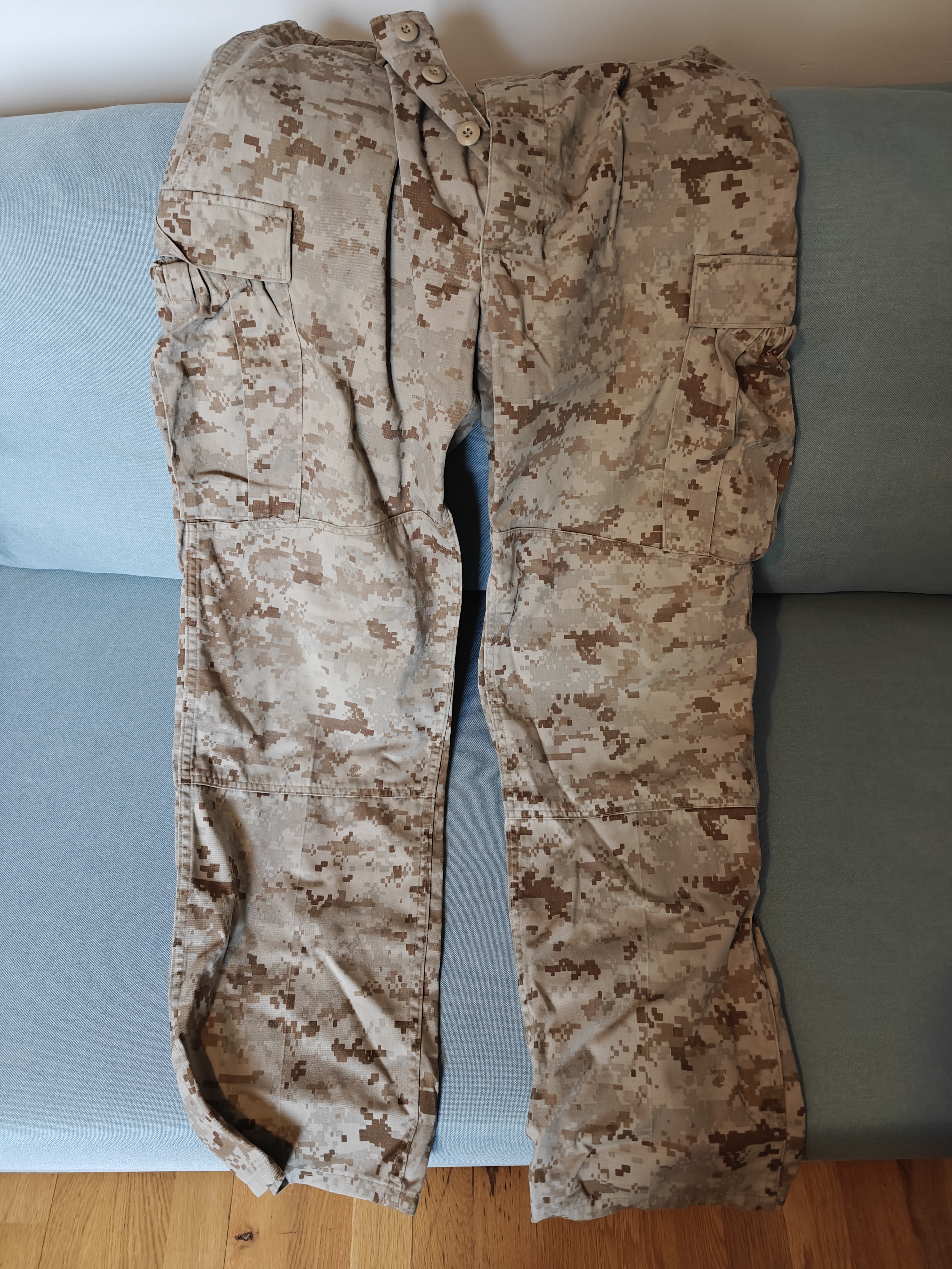 Sprzedam 3 oryginalne mundury z demobilu w odcieniach: Woodland BDU: 50PLN Spodnie i kurtka Medium-Regular Stan dobry, trochę sprany Do tego dorzucam Boonie hat Helikona DPM: 50PLN Spodnie 85/88/104(Noga/Pas/Biodra) Kurtka 180/104(Wzrost/klatka) Stan bardzo dobry Marpat Desert: 200PLN Spodnie i kurtka Medium regular Stan Bardzo dobry, posiada naszyte logo USMC Zapraszam też do innych ogłoszeń gdzie sprzedaję więcej wyposażenia.