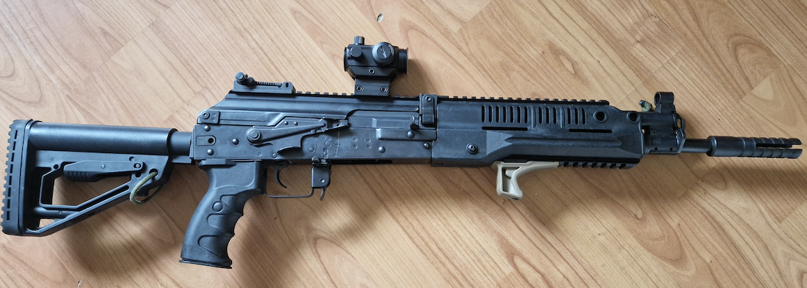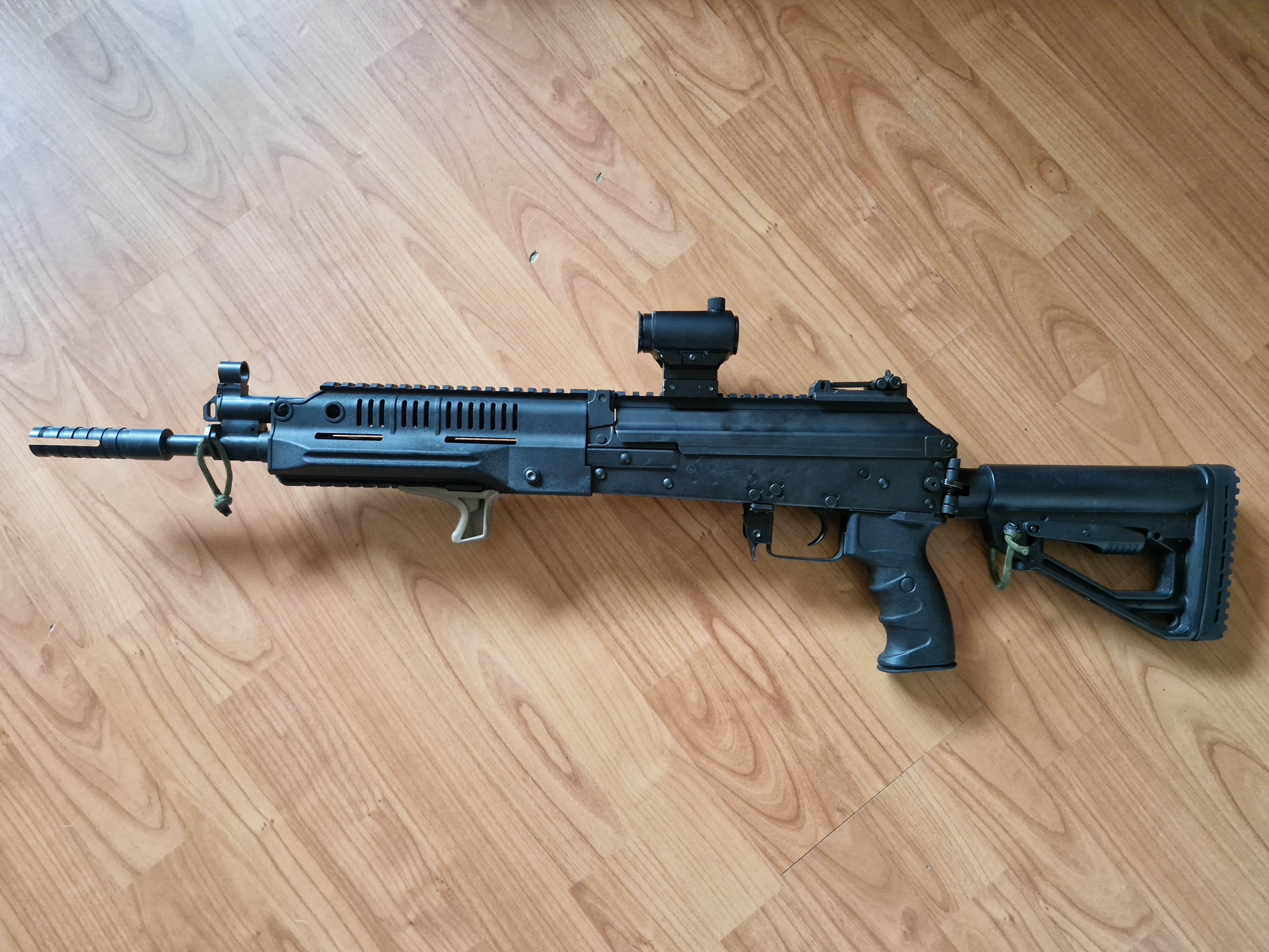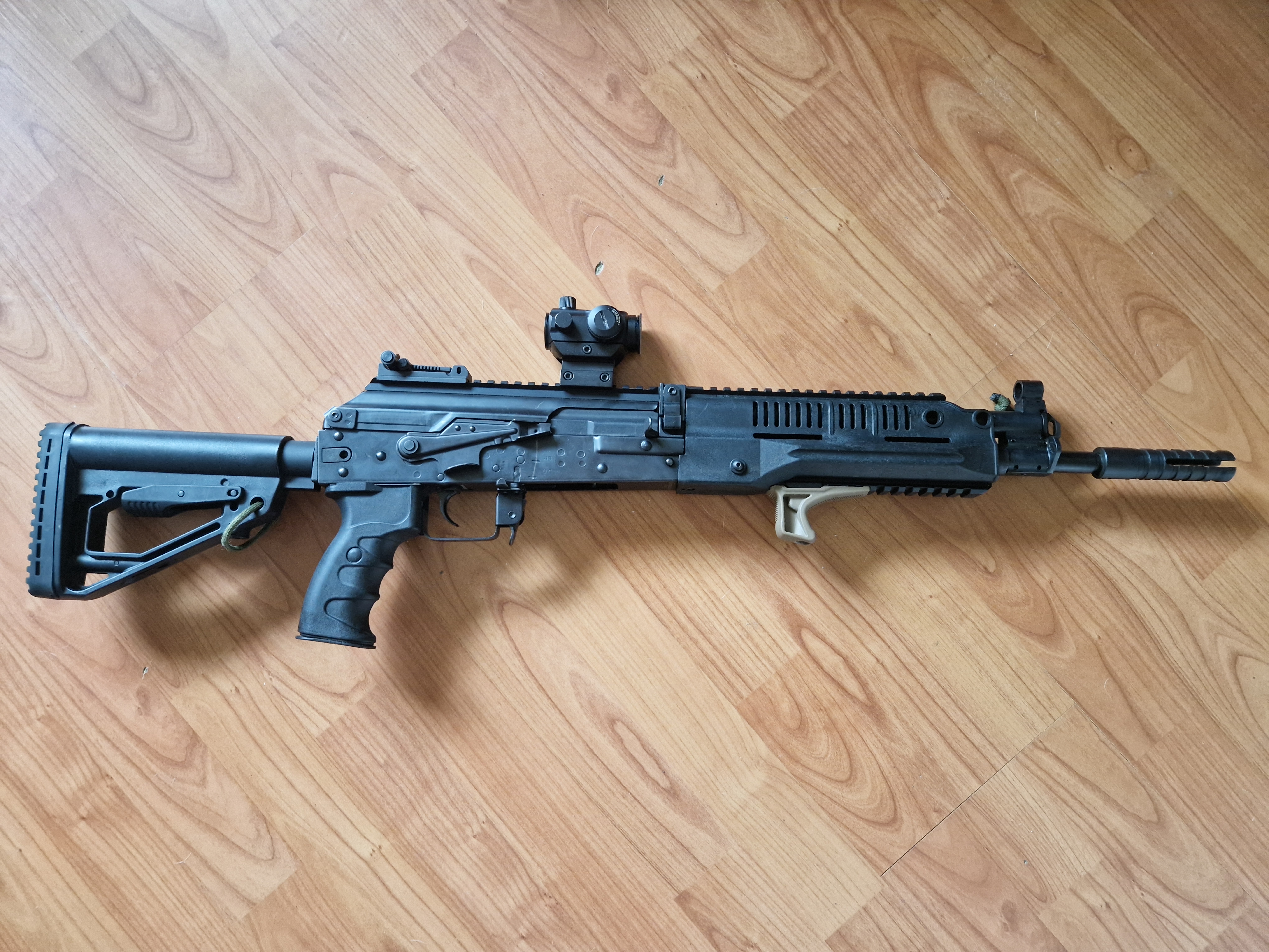 Sprzedaję replikę RPK-16 firmy LCT. Replikę była ze mną na kilku strzelaniach, mam inne repliki których używam naprzemiennie. Replika posiada niewielkie ślady użytkowania. Jedynie drum wymagał naprawy - powstało niewielkie pęknięcie, częsta przypadłość tych magazynków, został sklejony pancerną kropelką w żelu, co całkowicie zabetonowało pęknięcie. RPK-16 to relatywnie kompaktowa replika, która może pełnić rolę wsparcia, wykorzystywałem ją również jako szturm ze zwykłymi magazynkami. Replika i drum są w pełni sprawne, w replice zostały wymienione: - wtyczka na T-connect Deans - sprężyna m120 (Tornado) - lufa precyzyjna 6.02 (Maple Leaf) - Guma silicon 70 (Maple Leaf) - Dystanser omega (Maple Leaf) Obecnie generuje 1.9J na kulkach 0.32g BLS, świetne skupienie i powtarzalność niezależnie od warunków pogodowych. W zestawie: - Replika LCK-16 RPK-16 (LCT) tuningowana na 1.9J - Magazynek Drum LCK-16 (LCT) - 6x Magazynek Midcap (Cyma) - Oryginalne pudełko i papiery - Kolimator - Chwyt przedni - 2x bateria 11.1V 1200 mAh (Ipower) Recenzja: https://wmasg.com/pl/articles/view/9981 Odbiór osobisty możliwe w Krakowie lub Pruchniku (podkarpackie)