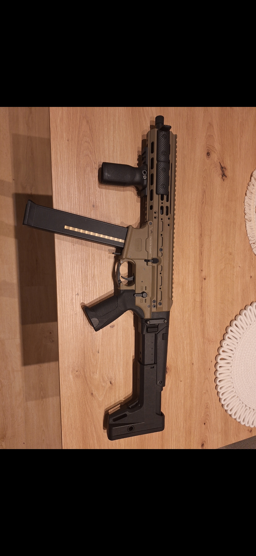 Utr45 od DE kupiony w grudniu 2024. Używana jako druga na cqb, nie ma żadnych uszkodzeń, gearbox od nowości nie otwierany (wciąż posiada plombę) Wymieniona została luf na precyzyjną 6.01 PDI RAVEN oraz gumka hu 60 SUPER MACARON Dodatkowo dodaję 8 mid-capow, 2 pasujące ładownice na 4 magi, chwyt przedni