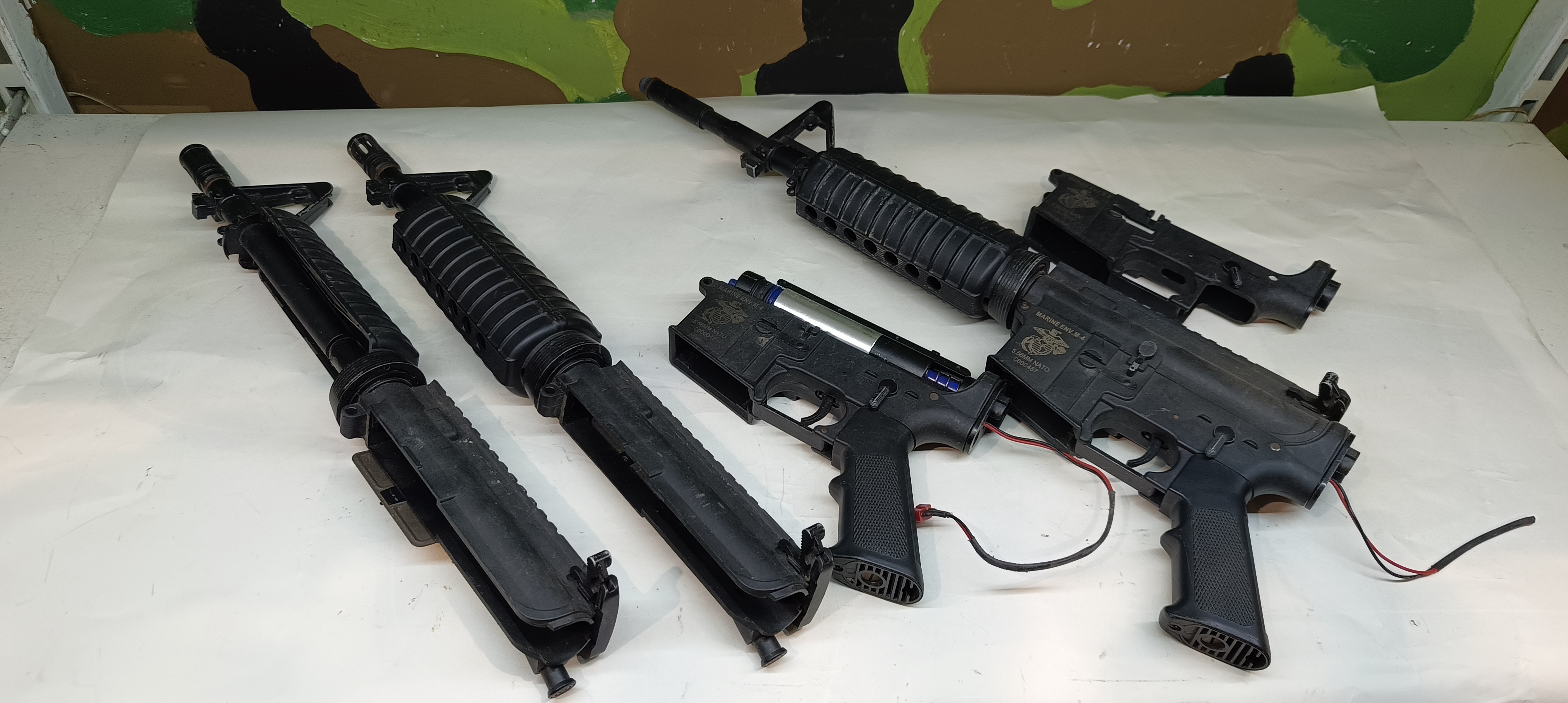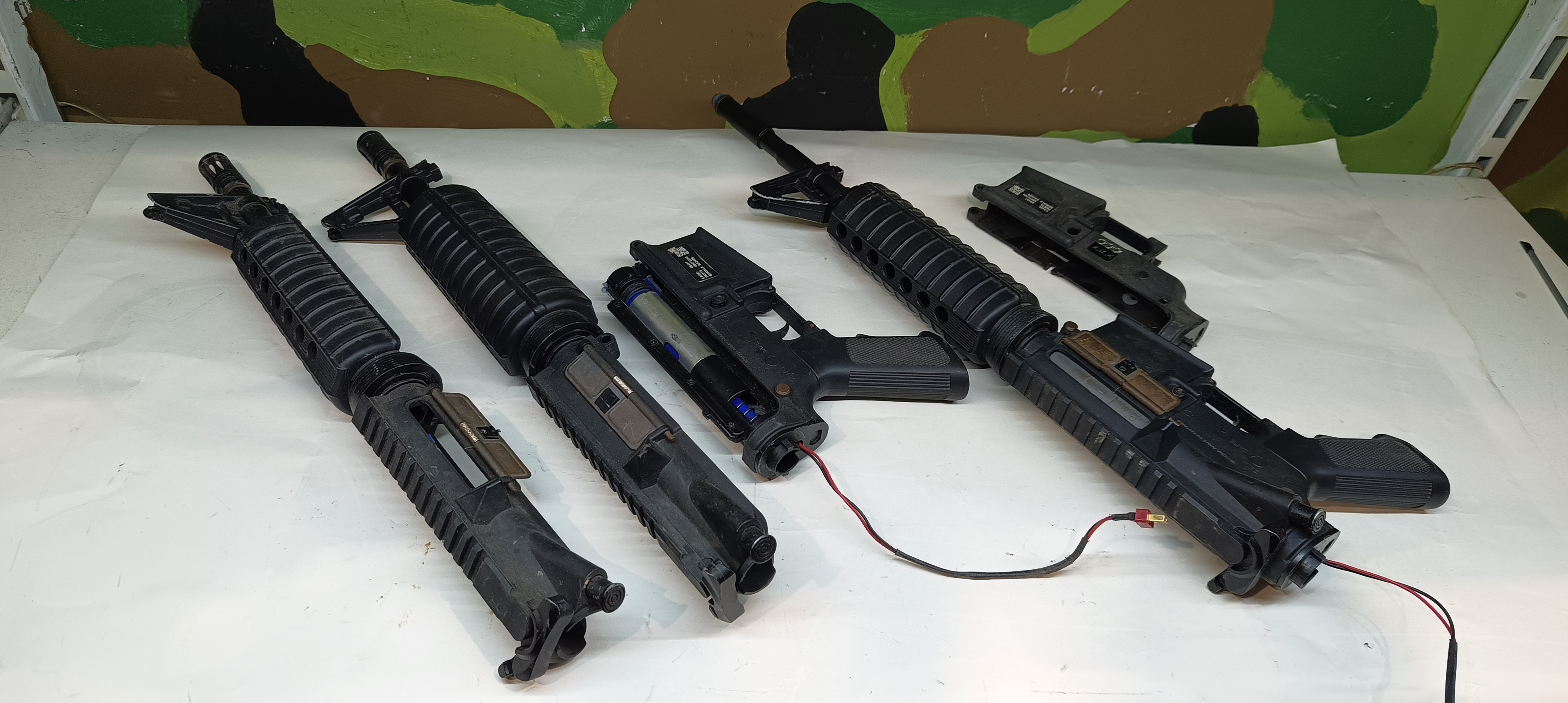 Witam serdecznie, posiadam na sprzedaż części do replik specna arms z linii core. W zestawie to co na zdjęciu czyli trzy lufe zewnętrzne z upperami i chwytami przednimi (w jednym brak tłumika płomienia), do tego jeden lower, jeden jeden lower z gearboxem który ma pęknięte dwie połówki gearboxa, ale z tego co kojarzę cały mechanizm działa oraz jeden lower z gearboxem z uciętym wtykiem, stawiam że gearbox też coś nie pracował skoro uciąłem kiedyś w nim końcówkę. Na innym moim ogłoszeniu można znaleźć szkielety gearboxa do tych replik w cenie 40zł/sztukę. Cena zestawu widocznego na zdjęciu to 200zł. Koszt wysyłki za przedpłatą 15zł, za pobraniem 20zł. Przy zakupie co najmniej dwóch rzeczy z różnych ogłoszeń wysyłka gratis. Zapraszam do kontaktu pod numerem 608 516 659.