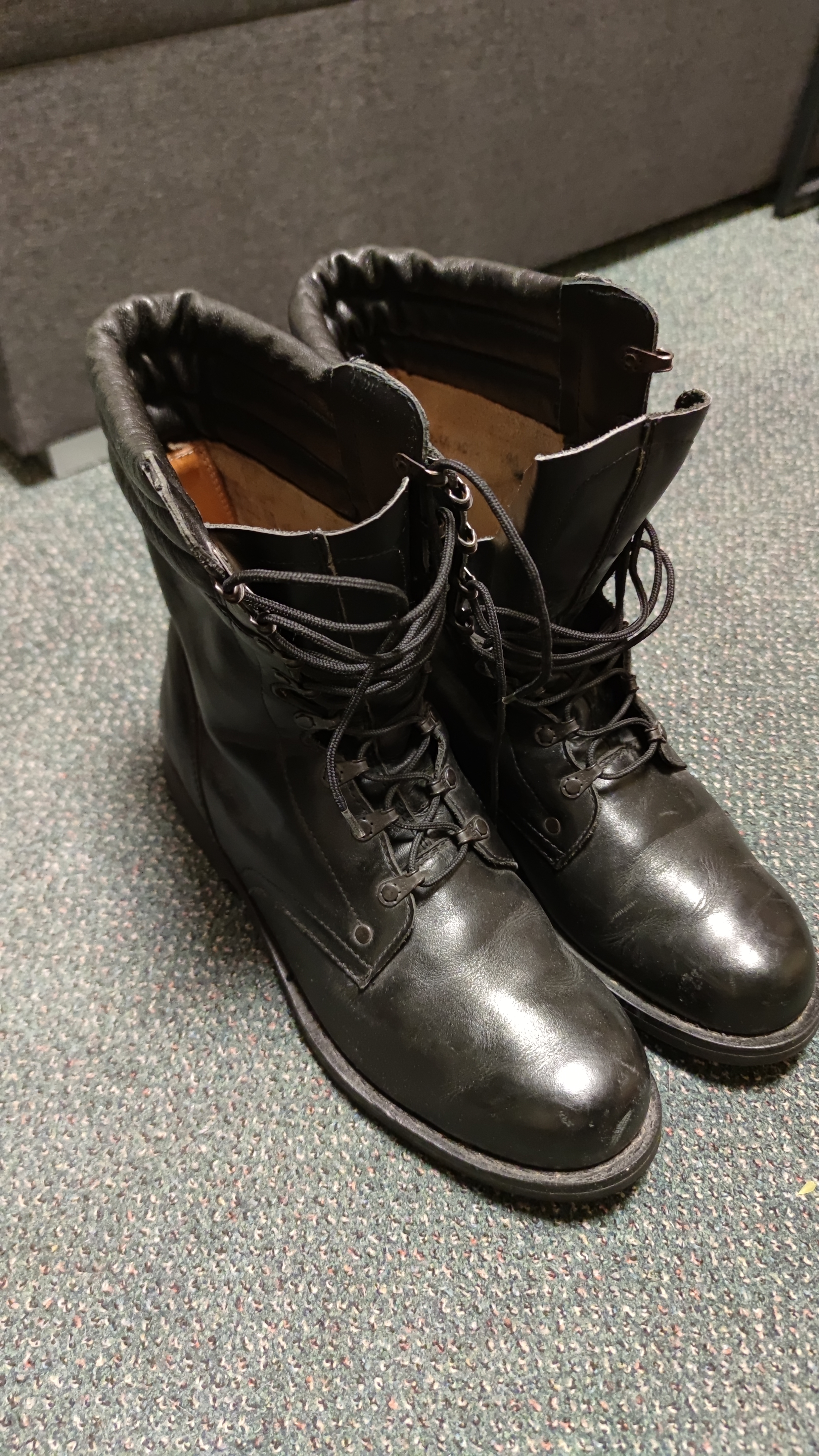 Cześć, na sprzedaż buty Wojskowe Desanty WP - Rozmiar ok 46-47, wkładka 31cm. Użyte raz podczas ćwiczeń wojskowych. Buty są skórzane, niezniszczone. Możliwy odbiór osobisty: Warszawa Ochota/Centrum.