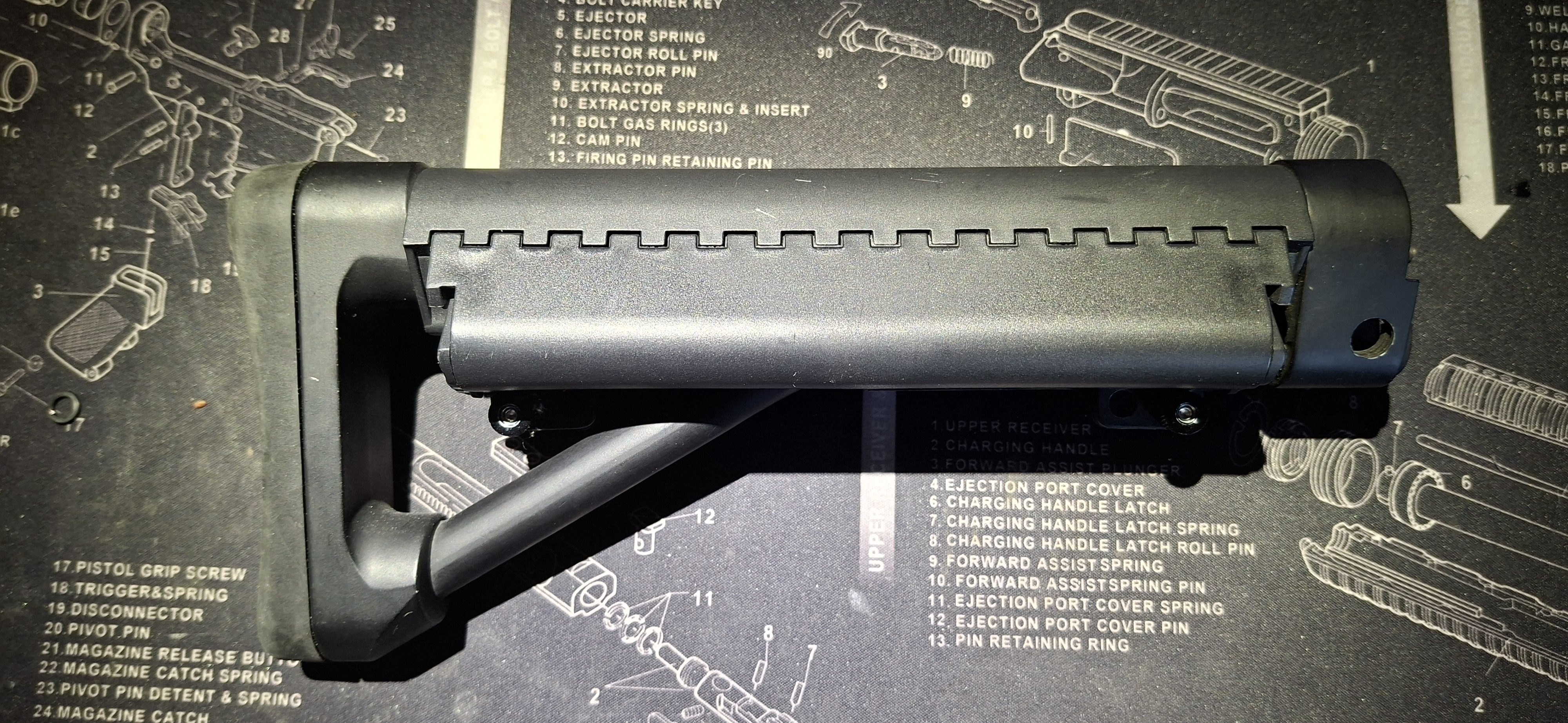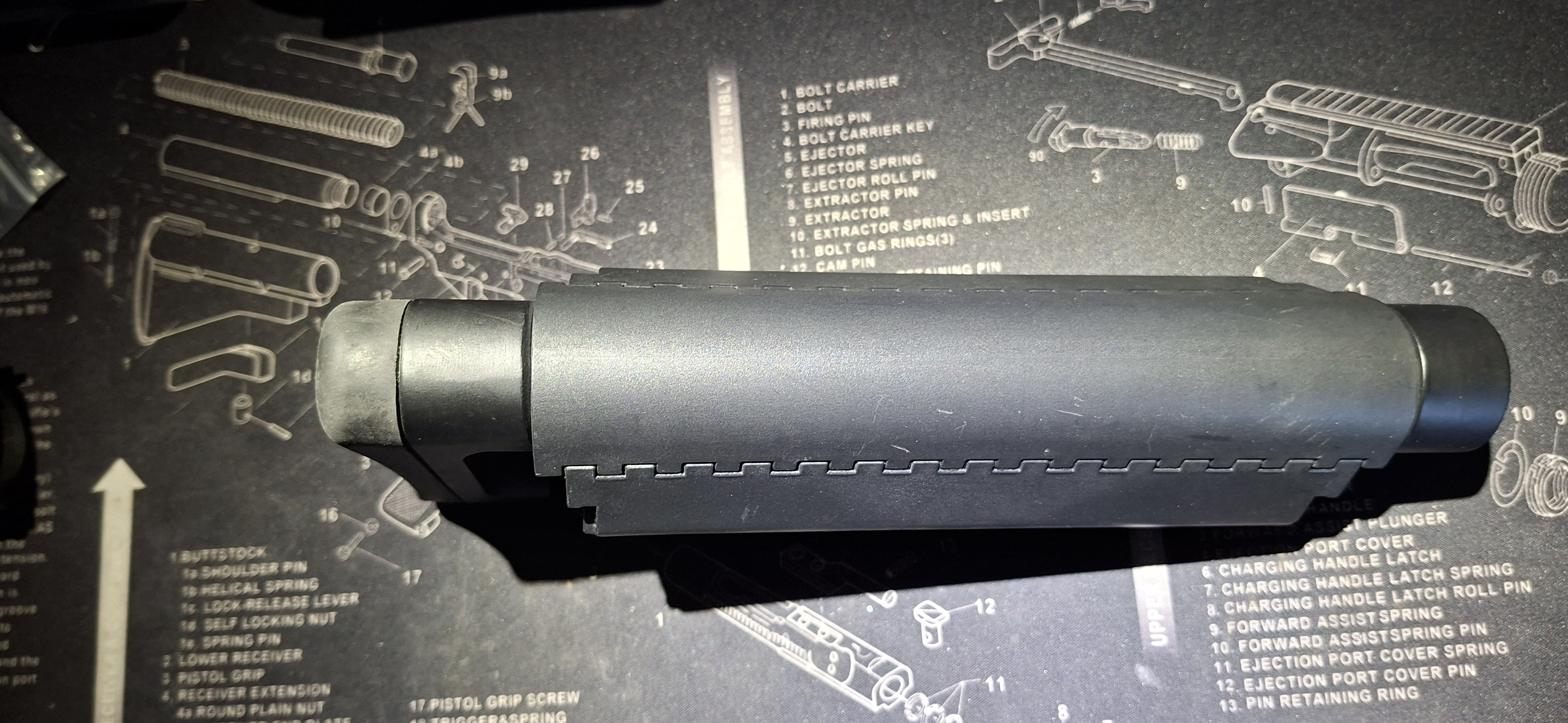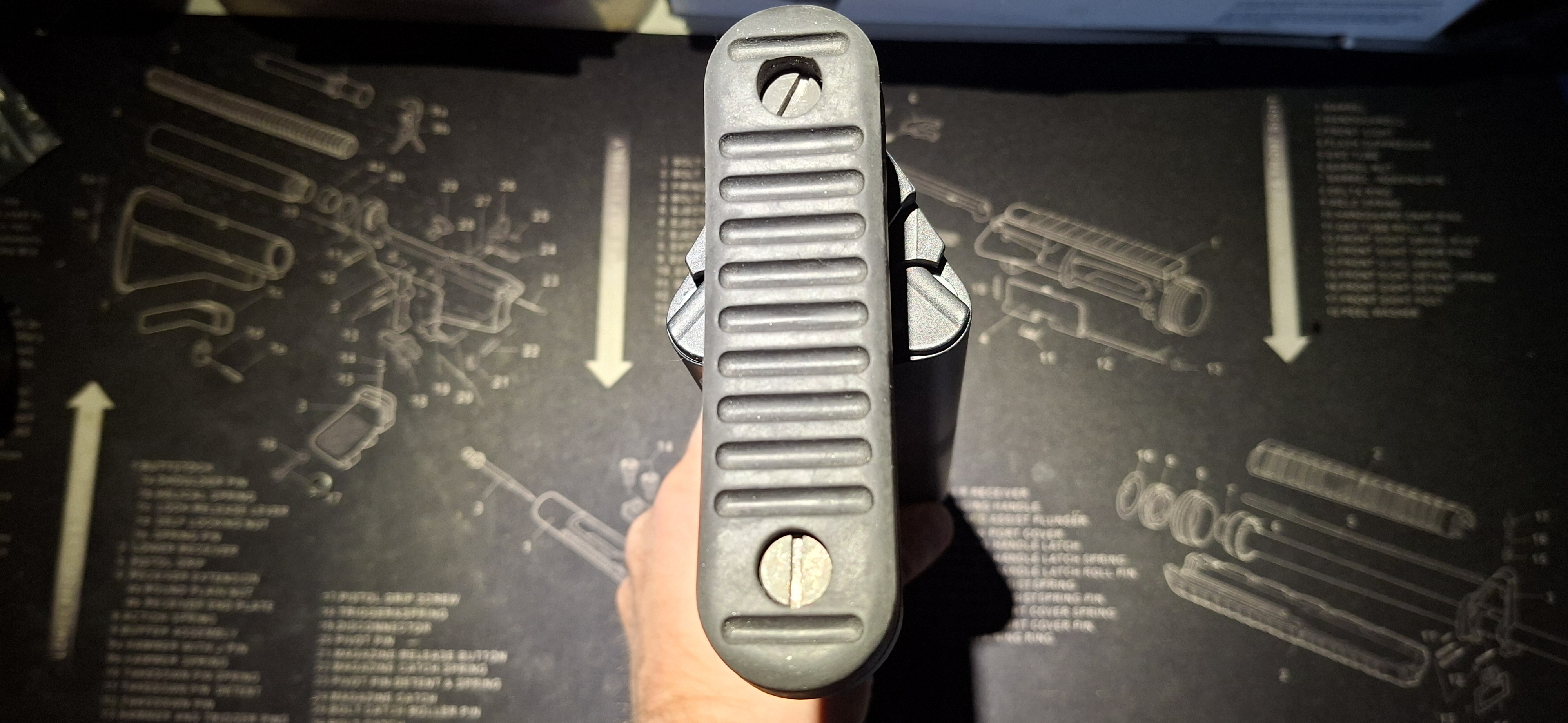 Sprzedam kolbę typy Marine firmy G&P. Porządny kawał bardzo nietypowej kolby. Pod odkręcanymi panelami jest sporo miejsca na naprawdę duże baterie. Posiada mocowanie na wciśnij kropka. Kolba używana ale w dobrym stanie - patrz zdjęcia. Jedno zdjęcie prezentuje kolbę na replice - oczywiście przedmiotem oferty jest tylko kolba - replika jest poglądowo :D