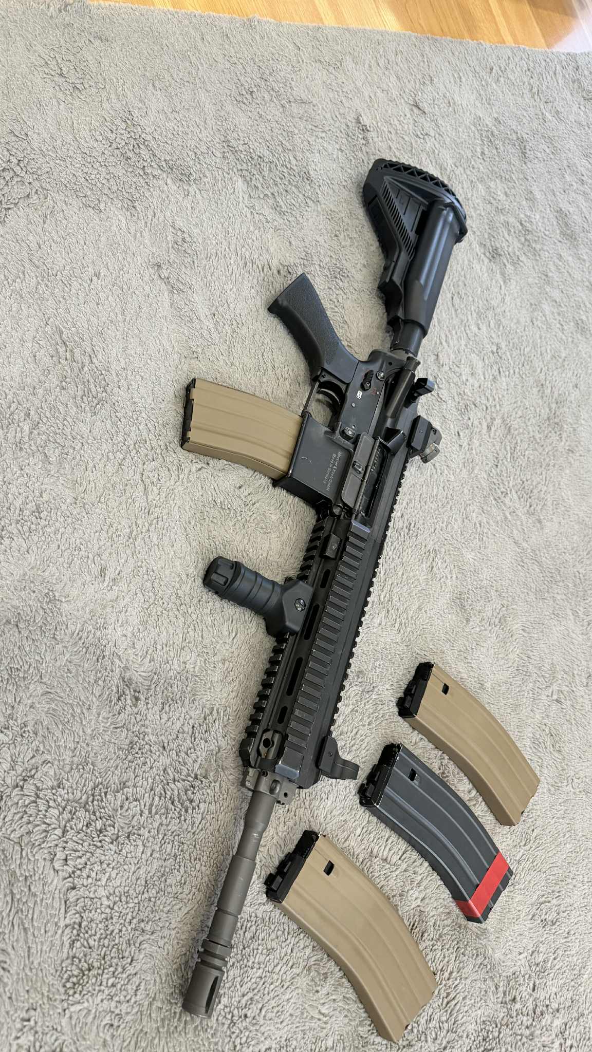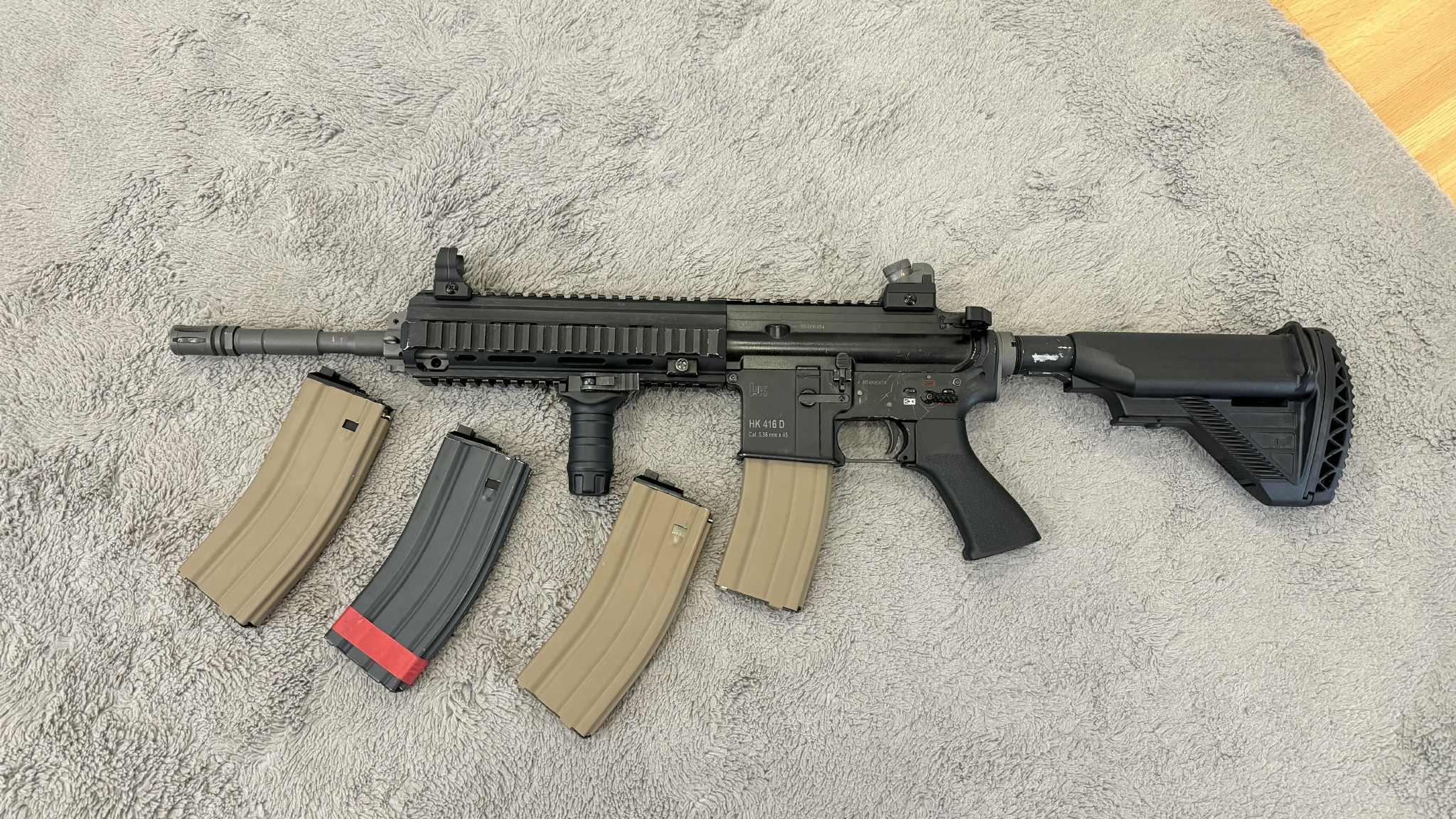 Sprzedam w pełni sprawną replikę hk 416 od we na green gas, wszystkie magazynki szczelne brązowe czasami nie zatrzymują zamka w tylnym położeniu za to są praktycznie nowe. W razie pytań zapraszam do kontaktu 690 800 857