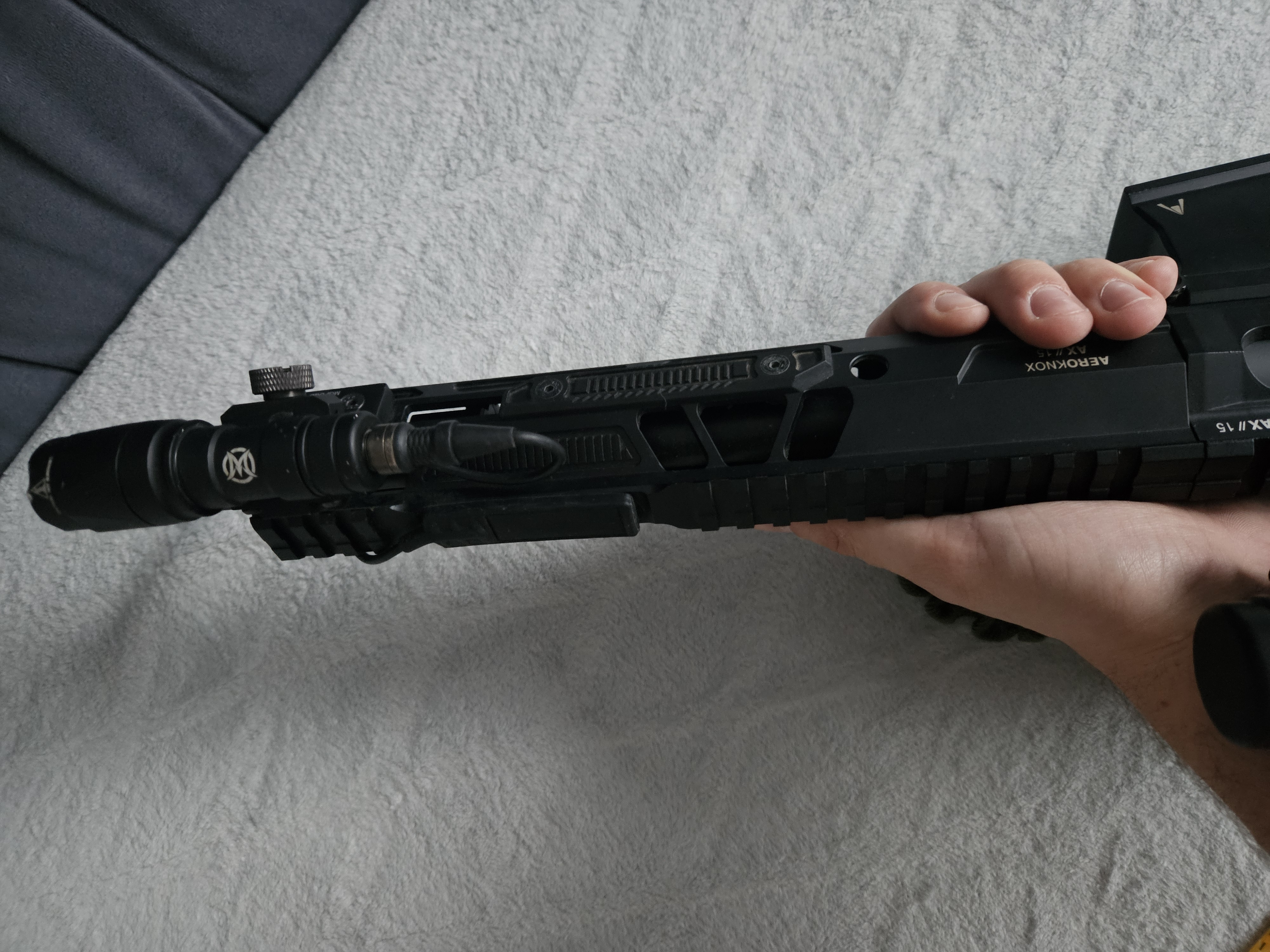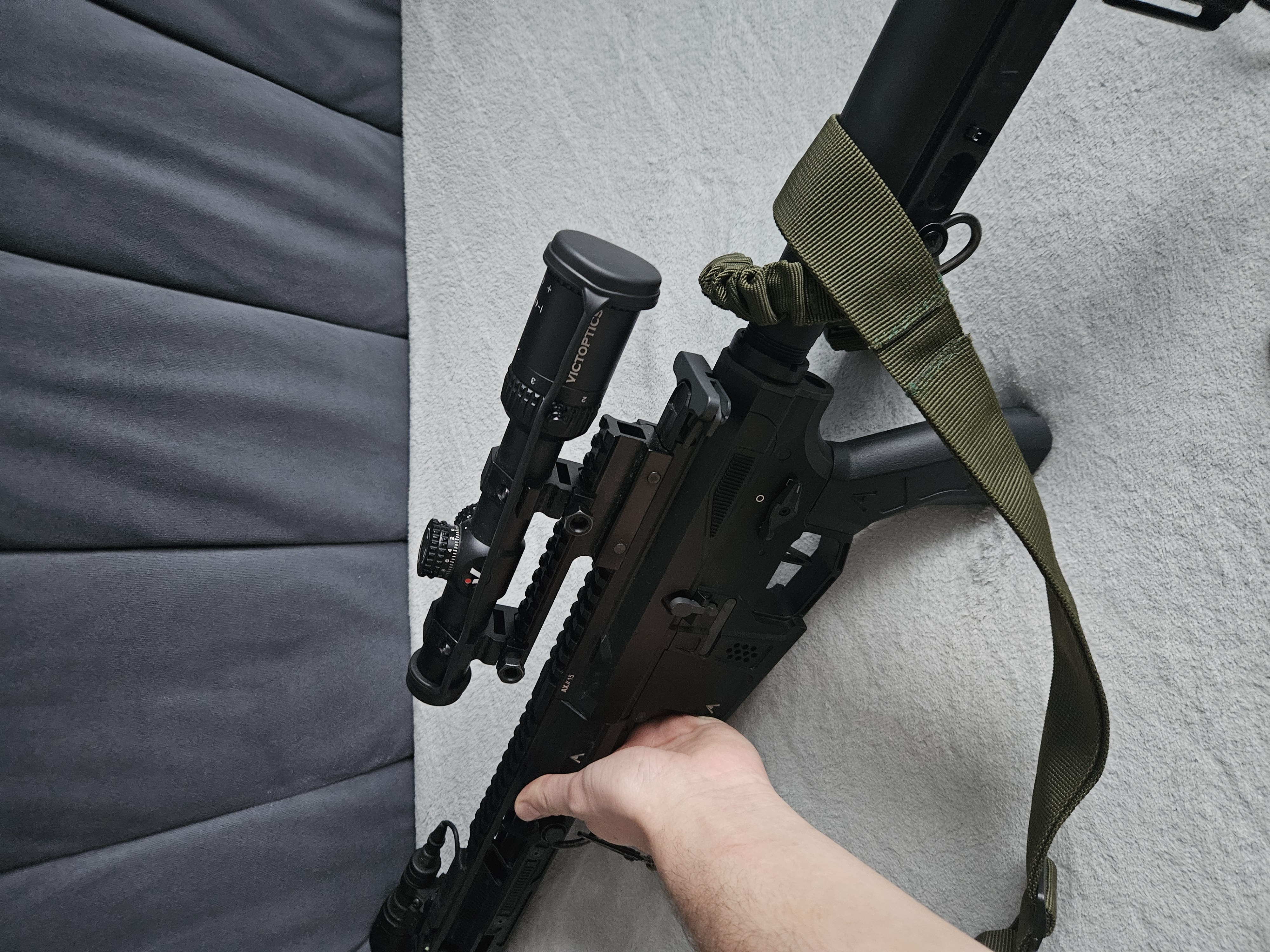 Sprzedam używany karabinek do asg od double eagle M920A AEROKNOX. Był on użyty kilka razy podczas gry. Posiada lekkie ślady użytkowania lecz strzela precyzyjnie. W zestawie dołączam baterie i ładowarkę do niej, ładowarkę do kulek, 4 magazynki mid-cap na 150 kulek, latarkę razem z szyną, na której jest zamontowana pas do bronii oraz Luneta biegową Victoptics ZOD 1-4x20. Broń ma wymienioną lufe na precyzyjną i gumkę hop-up. Po więcej informacji proszę pisać