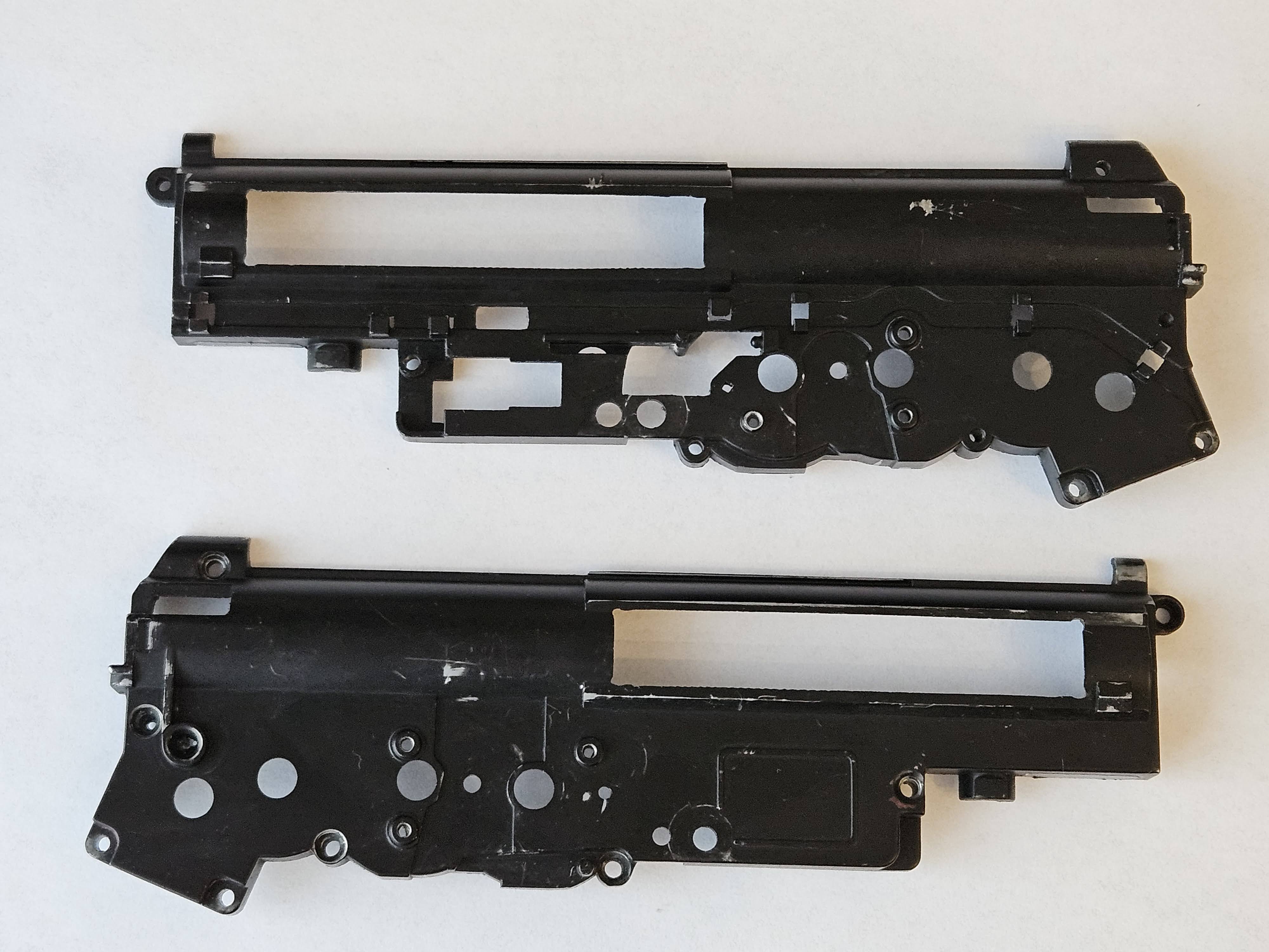 Mam na sprzedaż zestaw części do SWD/SWU do CYMY model CM057, niektóre części są trudno dostępne lub możliwe tylko do kupienia z rynku wtórnego. Jako, że SWD CYMA to kupią SWD Real Sword większość części powinna być kompatybilna. 1. Szkielet gearboxa specjalnego SWD z zestawem śrubek do skręcenia - 80zł 2. Sanki/koszyk silnika z śrubą do regulacji i podkładką - 40zł 3. Komora - 50zł 4. Zestaw sprężynek do SWD zesnętrzne i wewnętrzne - 15zł 5. Zestaw trybów, zębatek elementów selektora, zmiany trybu ognia do SWU oraz niektóre powinne pasować do SWD (SWU ma dodatkowy trub auto) - 70zł 6. Dwie zębatki widoczne na zdjęciu - 25zł 7. Łożyskowana stalowa prowadnica do gearbox SWD oraz V3 i niektórych V2 8. Zestaw 8 stalowych ślizgowych samosmarujących łożysk 15zł 9. Posiadam również nowy komplet 4 zębatek - 90zł