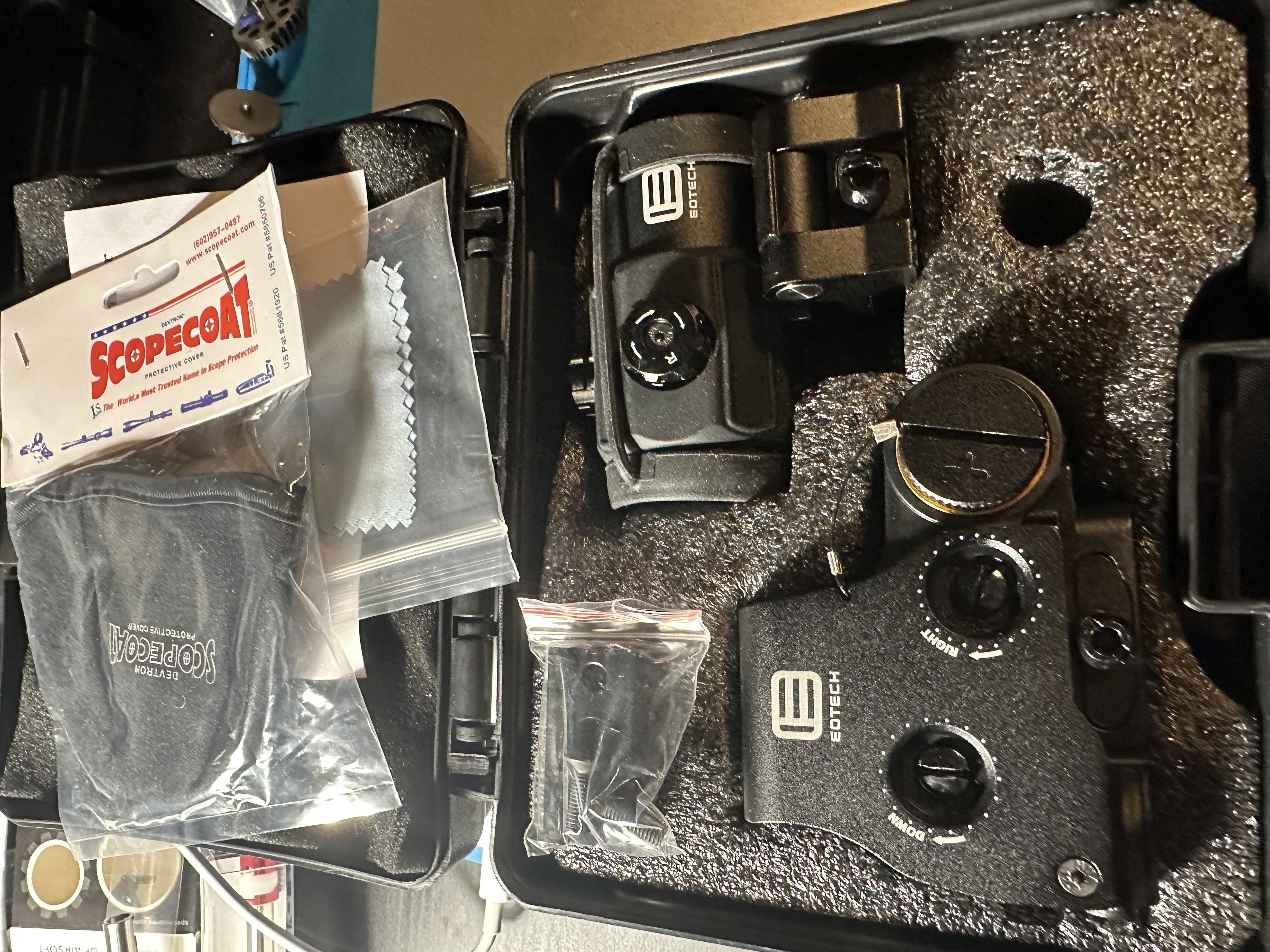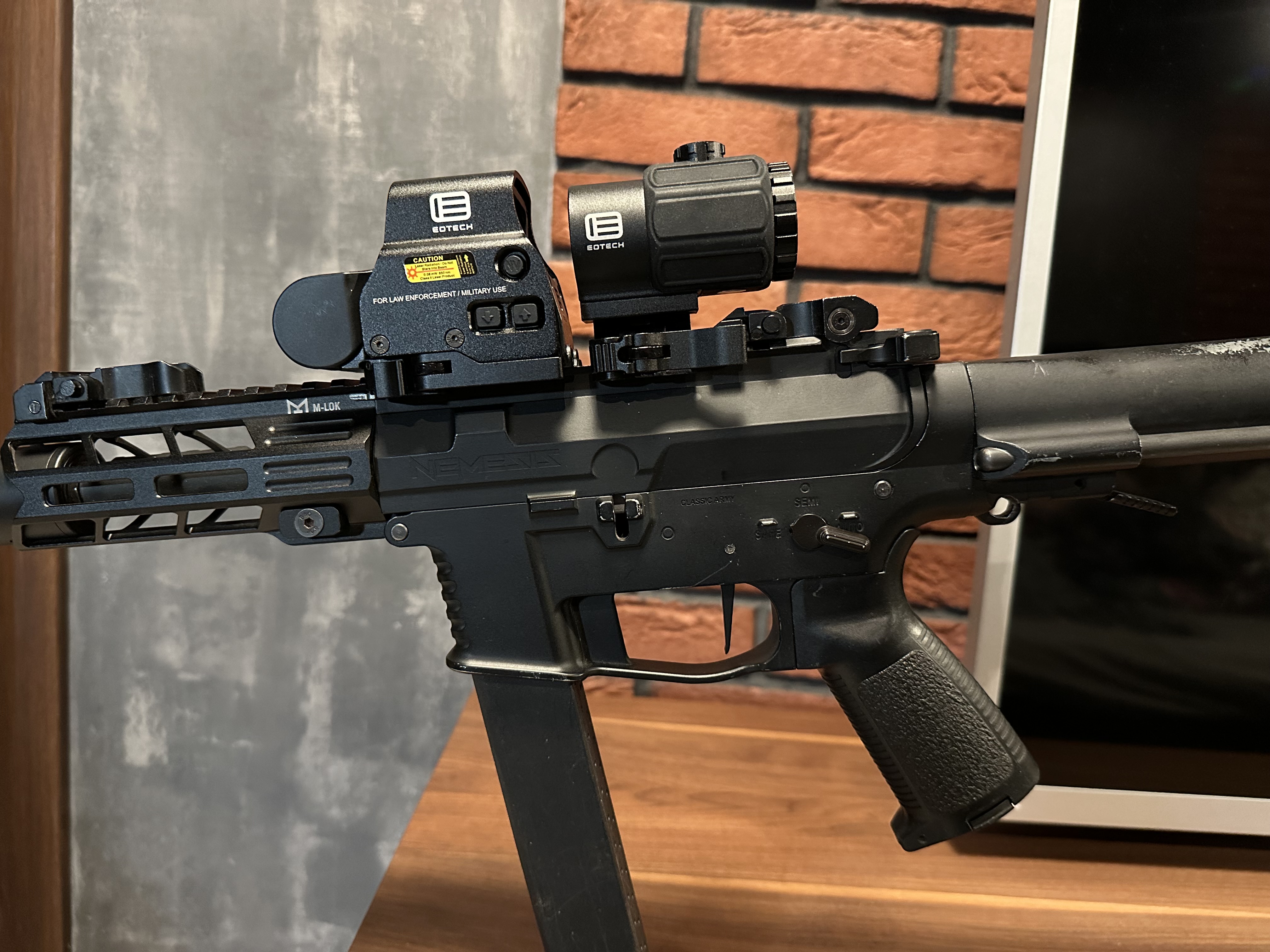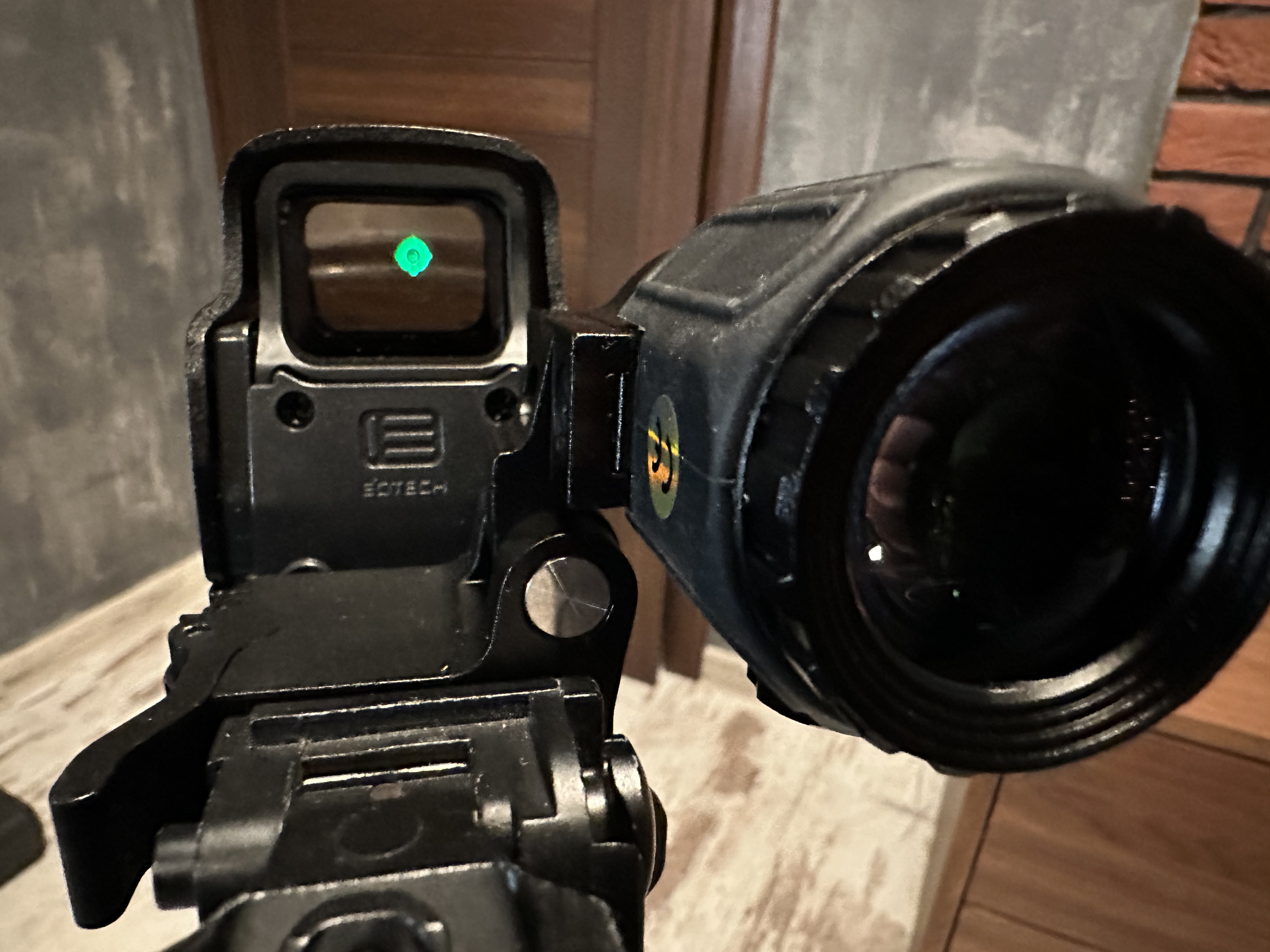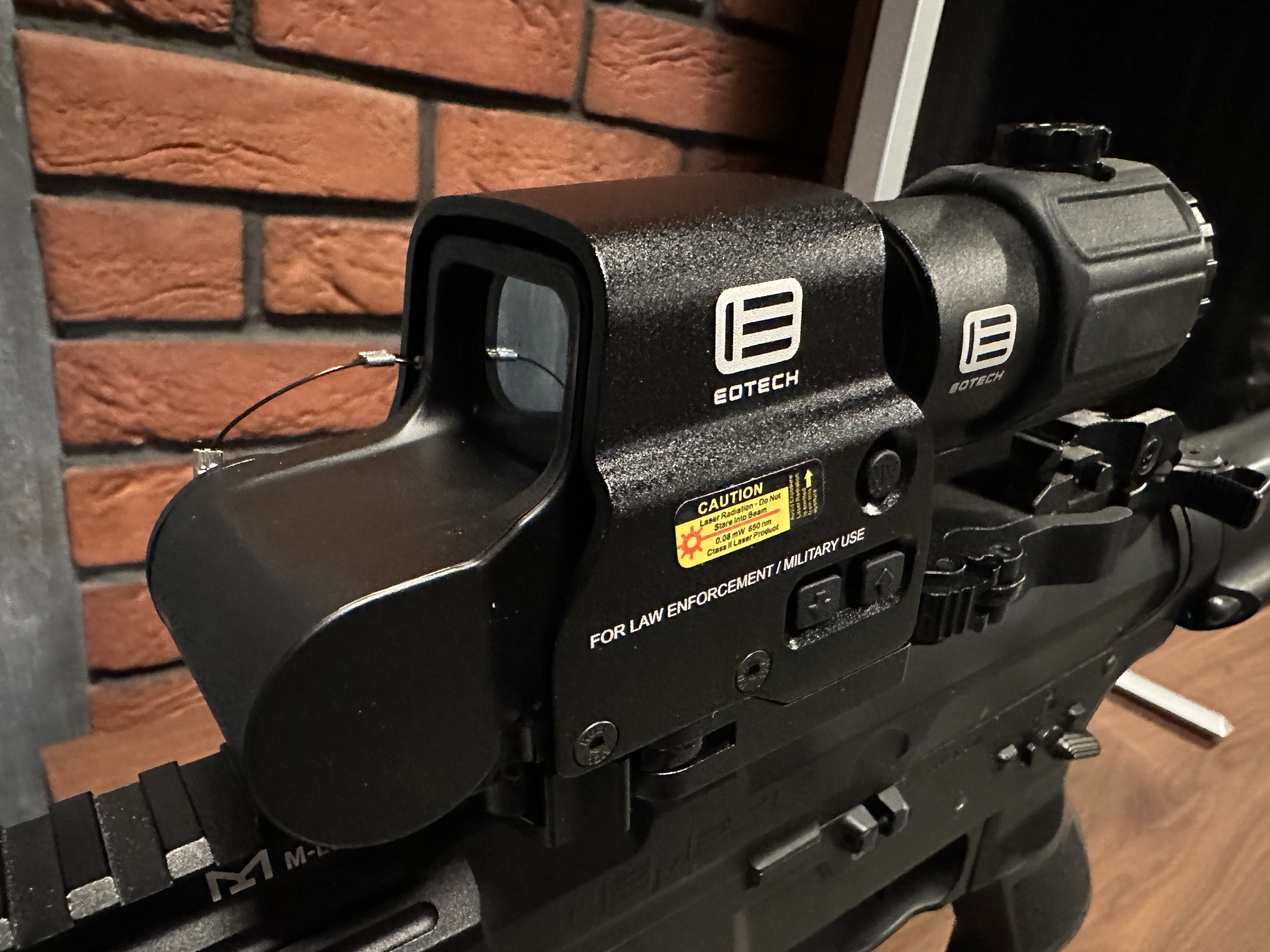 Witam, na sprzedaż zestaw replik celownika kolimatorowego EoTech 558 (lub exps) z montażem qd i powiększalnika EoTech g33 3x qd. Dwa kolory podświetlenia (czerwony zielony), ma ileś stopni regulacji jasności, kropka jest jasna, ale trudno to złapać aparatem. Powiększalnik łatwo składa się na bok i w pozycje roboczą przed celownikiem. Nic nie lata i mocno trzyma się na szynie. Zestaw jest fabrycznie nowy, nieużywany, jedynie założony i sprawdzone działanie. W zestawie wszystko co daje producent: ściereczka do szkieł, pokrowiec na celownik scope coat, podstawka do podwyższenia powiększalnika i plastikowe pudełko transportowe. Brak baterii w zestawie. Sprzedaje bo niestety przegapiłem termin zwrotu i teraz leży nieużywany, bo mi osobiście bardziej pasują celowniki typu maverick. Najlepiej odbiór osobisty w Krakowie, można będzie sprawdzić na miejscu działanie, ale także możliwa wysyłka (dodatkowo płatna 19zł za pobraniem). W razie pytań zapraszam na czat, chętnie udzielę dodatkowych informacji.