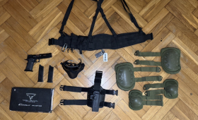 Witam. Mam do zaoferowania pistolet zaprojektowany i wykonanny przeze mnie. Z założenia miała to być konstrukcja do wagi 900 gram z trzema punktami podparcia, wielkością pistoletu z kolbą oraz niską linią celowania. Jednym zdaniem - kompaktowy pistolecik do CQB i speeda. Korpus wykonany z nylonu spiekanego przemysłowo z miejscem na kolimator plus podwyższenie. Kolba i front węglowy (możliwość odczepienia kolby i zejście rozmiarami do pistoletu) Pod klapą blokowaną śrubą radełkową dostęp do batki i FCU. W środku: - Pulsar D - Uniwersalna płytka PCB - FCU od Skalara (poza klasycznymi ustawieniami + wyświetlacz Oled, profile, pomiar napięcia batki) - Spust Retro na łożyskach kulkowych wraz ze switchem gamingowym - Zewnętrzny wyłącznik zasilania - Komora Gate - Lufa Lambda 208 6.05 z ML - Bateria Lipo - Magazynek Pistolecik przestrzelany i gotowy do użytku. Konstrukcja sprawdzona przez setki graczy. Wszystkie pudełka, elementy od producentów w zestawie. Sprzedaje zapasowy zestaw zrobiony dla siebie. Niestety nie mam czasu grać. Pozdrawiam