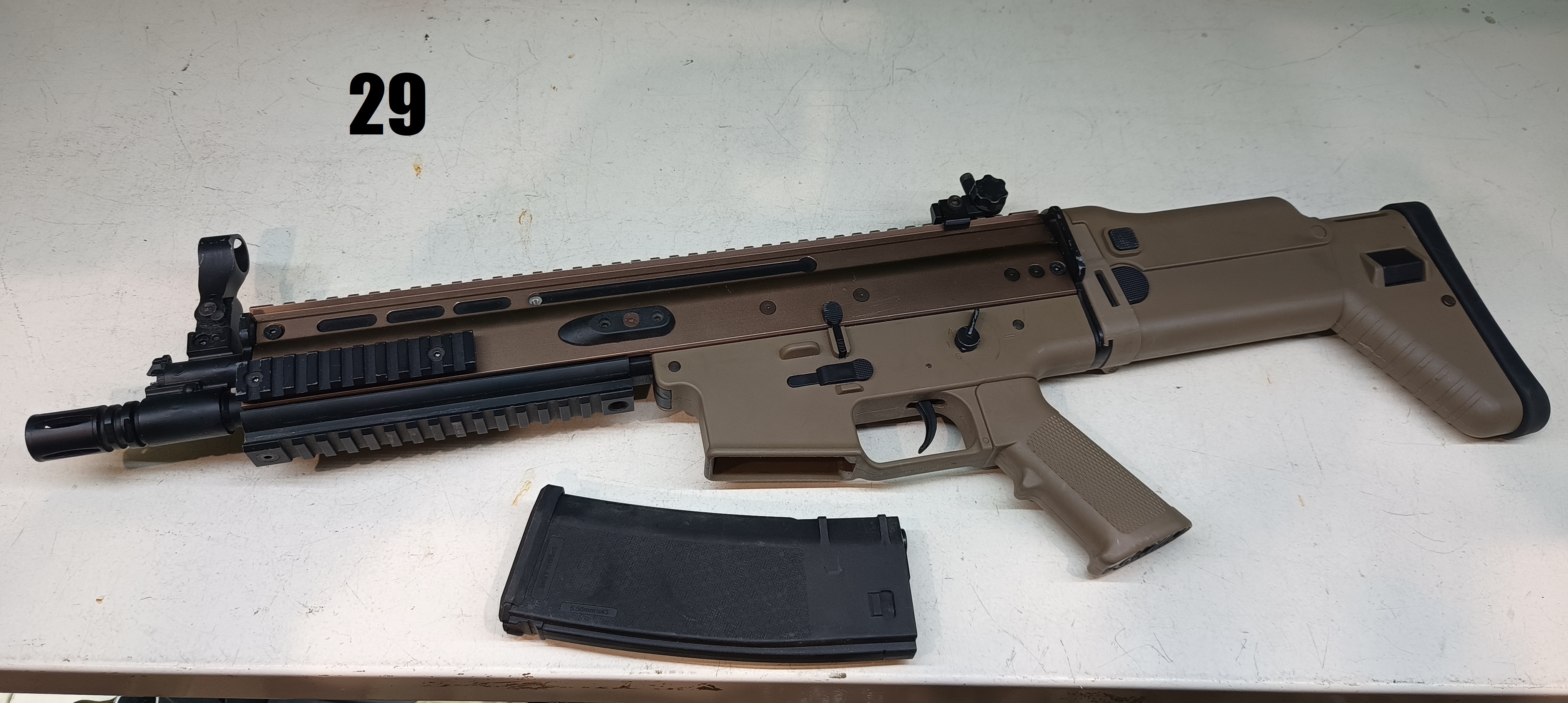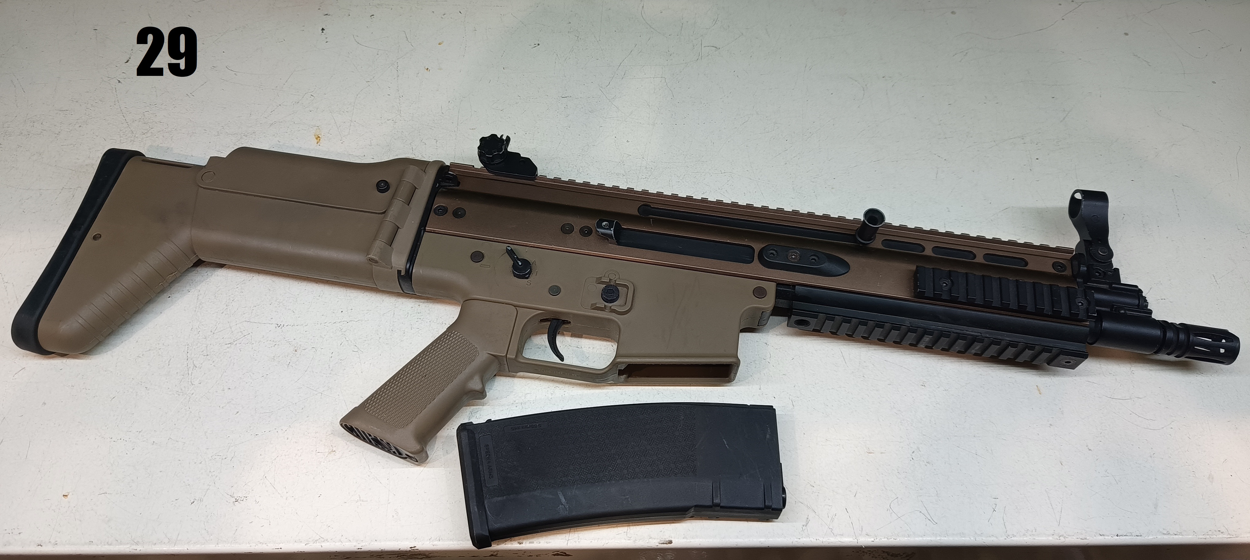 Witam serdecznie, posiadam SCARa od Duble Bell jak dobrze pamiętam. Używałem go tylko w zeszłe wakacje, tak to przeleżał w szafie. Posiada wtyk T-connect. Nie był tuningowany, pełen stock. Z wad repliki to przyrządy celownicze, mianowicie w przezierniku brakuje końcówki przeziernika. W zestawie brak akumulatora. Oryginalny magazynek (w kolorze tan) znalazłem, więc dorzucam go zamiast tego widocznego na zdjęciach, Cena: 550zł do negocjacji. Koszt wysyłki za przedpłatą 15zł, za pobraniem 20zł. Przy zakupie co najmniej dwóch rzeczy wysyłka gratis. Zapraszam do kontaktu pod numerem 608 516 659.