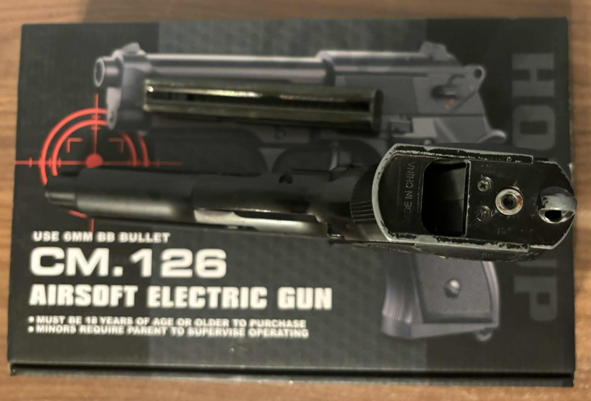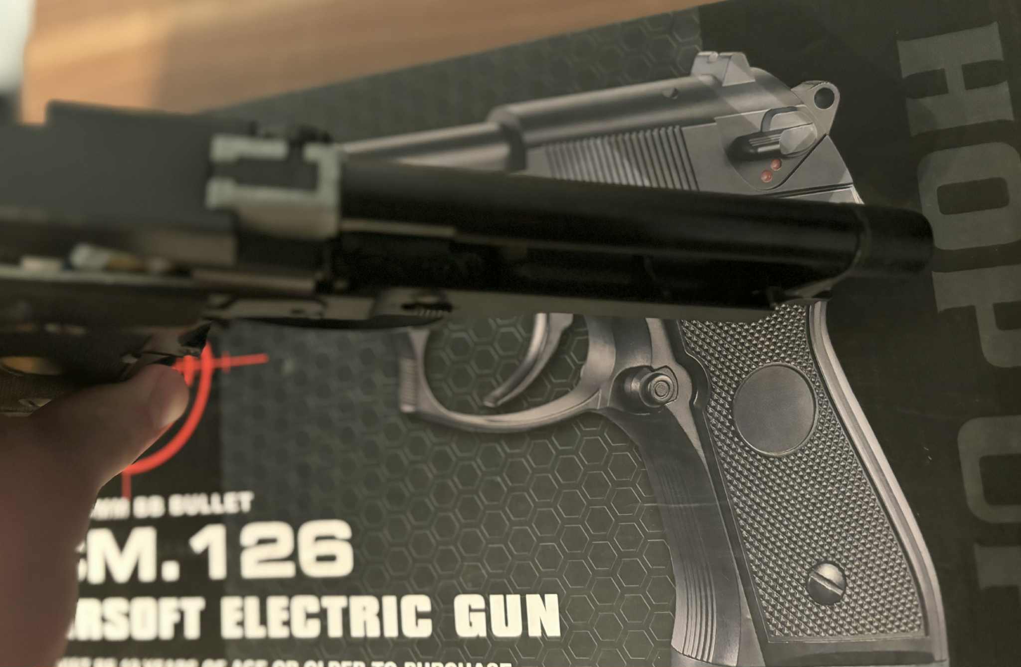 Witam, Mam na sprzedaż używaną replikę cm.126 od cymy. Replika strzela i działa, została wstawiona nowa gumka hop-up (nie pamiętam jaka) dzięki czemu trochę lepiej kręci. Replika na 0,2 dmucha 197,1-203,8 fps, widać na zdjęciach. Mogę wysyłać film z działania repliki. Replika brała udział w 1 strzelance, gdzie z kabury wypadła mi. Jeśli chodzi o wady przez to że wypadła złamały się ,,chwyt" zamka, przez co zamek nie zawsze się trzyma z korpusem, czasem złapie ale wtedy ledwo trzyma (zaznaczone na czerwono na zdjęciach miejsce uszkodzenia, gdy się zaczyna trząść replika zamek spada, mogę wysłać film).Z wad to ten zamek, z plusów to nowa gumka hop-up (wymieniona na sprzedaż),dodatkowe magazynki i prawie nowa replika. Replikę myślę, żeby sprzedać około kwoty 100-150zł, ale czekam na propozycję, ile kto da za tyle sprzedam. W zestawie: 1. Replika Cm.126 2. Łącznie 4 magazynki (1 do repliki i 3 dokupione dodatkowe) 3. Szybkoładowarka 4. Ładowarka 5. Bateria 6. Wycior 7. Pudełko Nie wiem ile może być warta w takim stanie. Dlatego czekam na propozycje cenowe albo mogę się wymienić za coś związane ASG. https://www.taiwangun.com/pl/pistolet-elektryczny-aep/cm-126-cyma