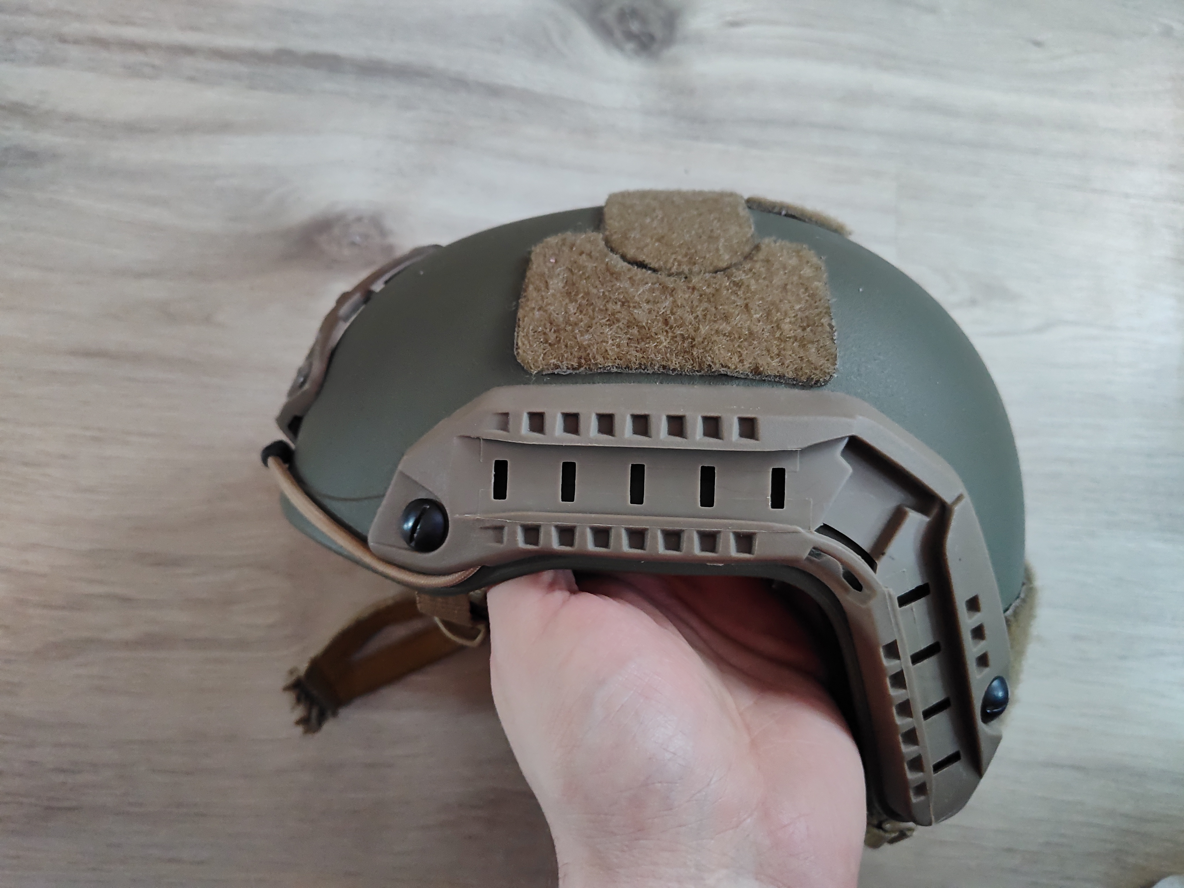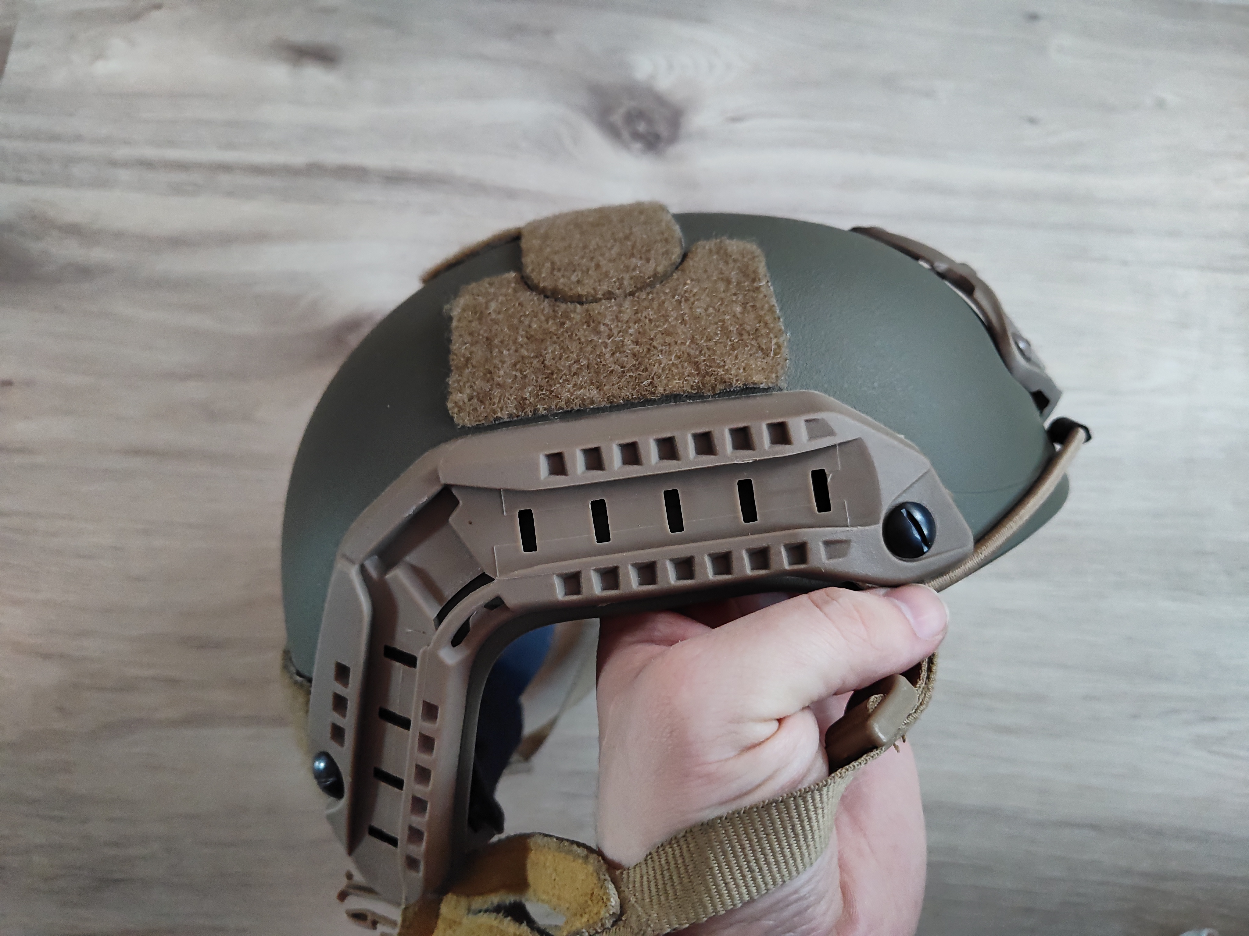 Zmieniłem hełm dlatego sprzedaję. Hełm rozmiar L/XL stylizowany na hełm który używali marsoci. Czyli skorupa ranger green reszta tan. Blacha aluminiowa.