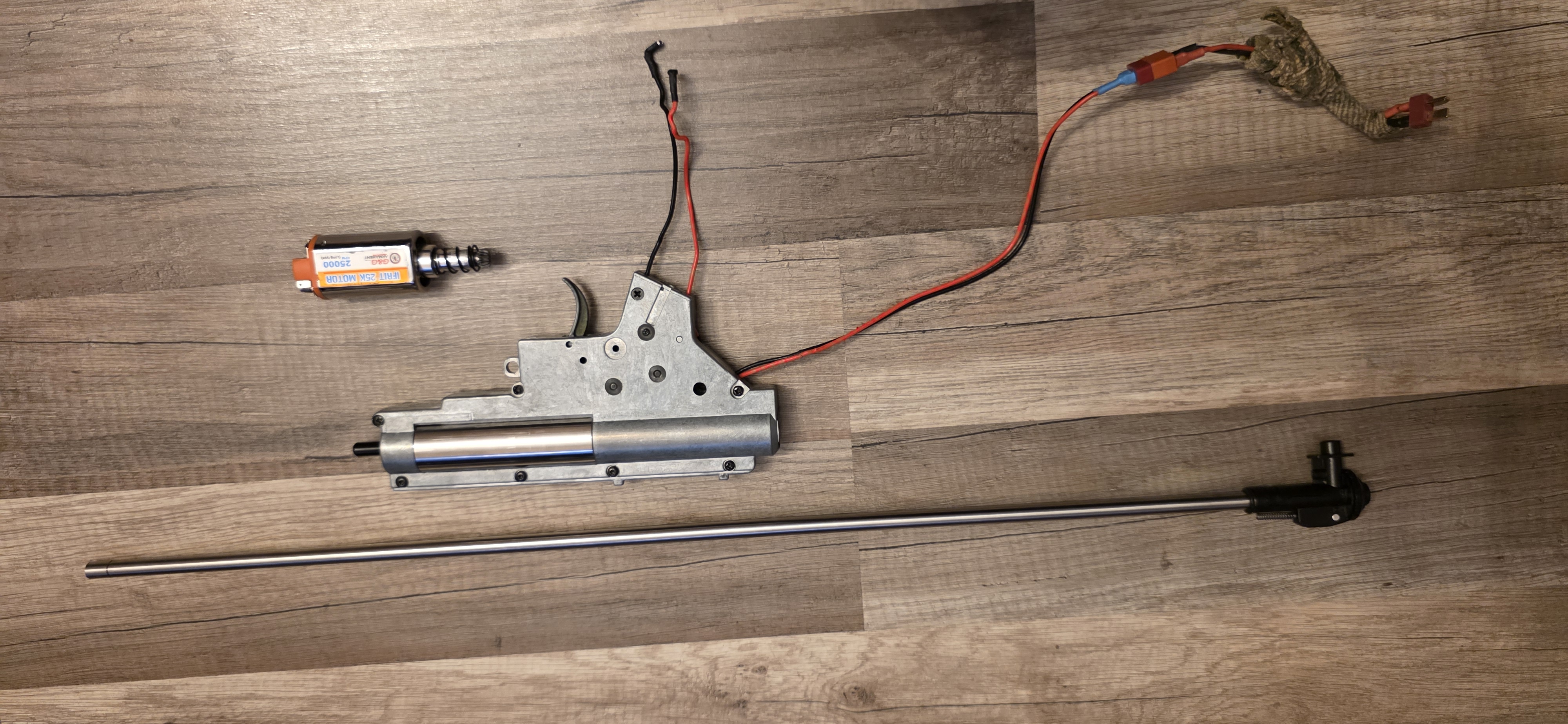 Witam. Posiadam na sprzedaż replikę DMR SR25 od firmy A&K. Replikę zakupiłem jako używaną, dlatego też nie jestem w stanie zbyt dużo o niej powiedzieć, poza tym co sam ustaliłem z poprzednim właścicielem: - baza sr25 A&K, - wzmocniony gearbox z systemem szybkiej wymiany sprężyny, - tłok z AOE, - pneumatyka: cylinder FPS, aluminiowa glowica, sorbo, uszczelniona dysza, - mosfet optyczny (prawdopodobnie T238 V2), - silnik G&G Ifrit, - lufa precyzyjna (Lrometheus bądź Lambda - niestety brak oznaczeń), - komora hop up rotacyjna z tworzywa (wg zapewnienia poprzedniego właściciela jest zrobiony flat hop - osobiście nie sprawdzałem). Replika pomalowana farbami fosco, na żywo prezentuje się bardzo przyjemnie. Na chrono (0,20 g.) moc oscylowała w przedziale 2,55 - 2,70 J. Ja osobiście nie używałem jej w terenie, jedynie przestrzelałem dla sprawdzenia poprawności działania. Hop up ładnie kręci, jest dość precyzyjny w regulacji. Replikę sprzedaję z razem z widoczną na zdjęciu lunetą, bipodem i dodatkowymi magazynkami. W razie jakichkolwiek pytań zapraszam do kontaktu. Wysyłka w cenie.