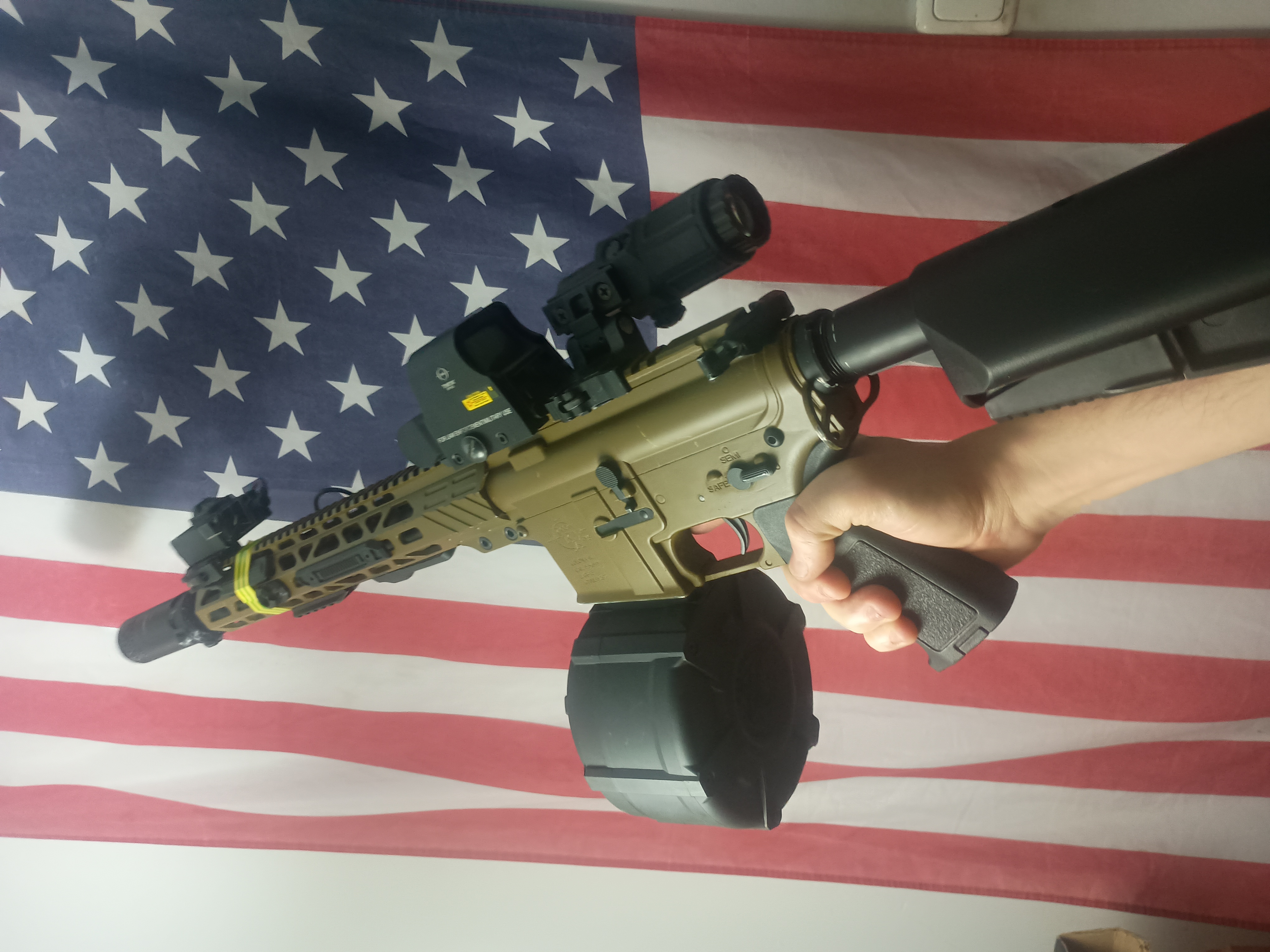Mam na sprzedaż replikę Specny robioną od zera i ze Specny została już w sumie tylko buda bez luzów ani nic , szkielet zaś to Pancerny E&C (Specna One bez oznaczeń) dodatki do repliki to 3 mid capy+Drum od G&G oraz bateria Lipo 11.1, Koli eotech latarkę+magni dbal wraz z tłumikiem Surefire (druk 3d) w środku zostało wymienione: Zębatki środkowa i tłokowa A&K silnikowa SHS Perun Hybrid V2 Silnik tornado Komora Max model Pro+guma maple leaf różowy Lufa precyzyjna Action Army Cylinder typ 1shs żebrowany Tłok Specna Arms Egde+AOE Głowica tłoka czerwony SHS POM Głowica cylindra Retro arms Dysza Tornado