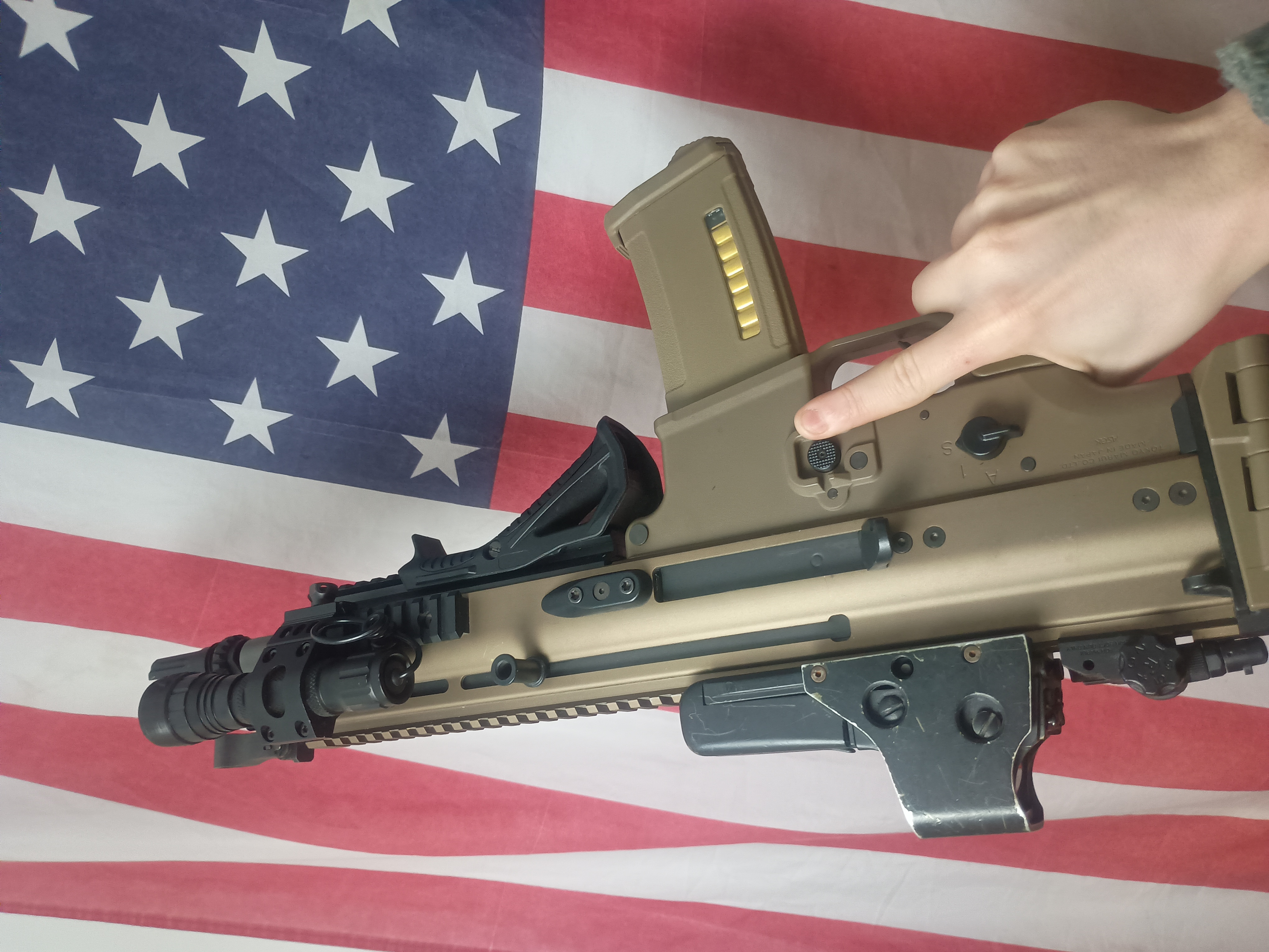 Witam mam na sprzedaż potężny zestaw składający się z repliki skara l od firmy Tokyo marui jest to wersja z elektrycznym blow backiem wraz z wieloma dodatkami. Sama w sobie jest stokowa przystosowana na cqb a do zestawu dodaje: magazynki PTS midy do Scara Ngrs (+stock,4pts 1 stock), dwie baterie lipo.7.4. kolimator eotech latarkę wraz z wzmocnionym szkłem i przyciskiem żelowym oraz pokrowiec. Cały zestaw jest wart ponad 5 500 ja sprzedaję go za 3000 z możliwością niewielkiej negocjacji