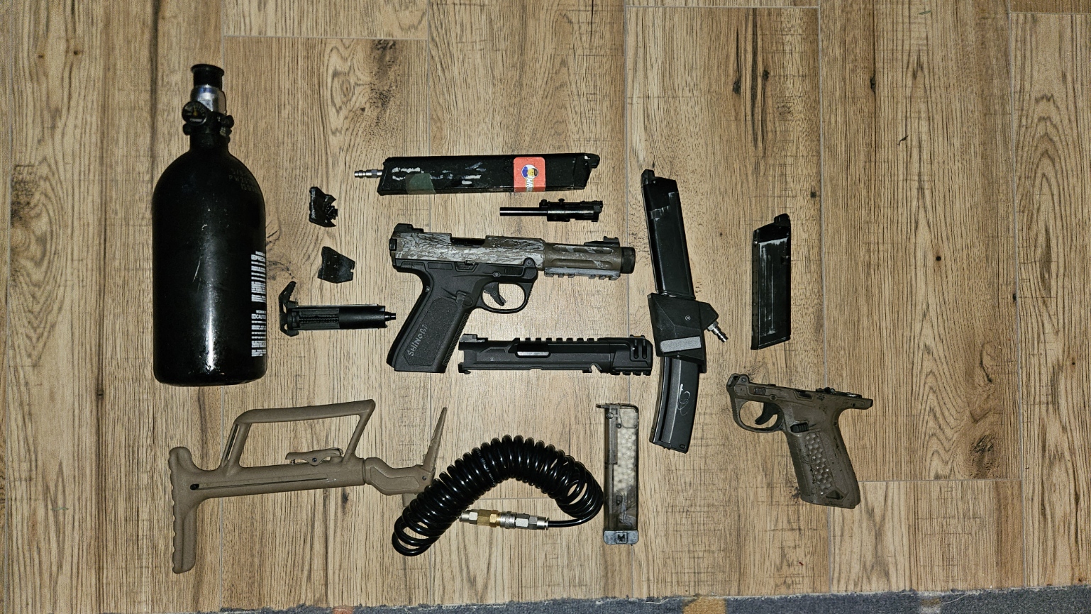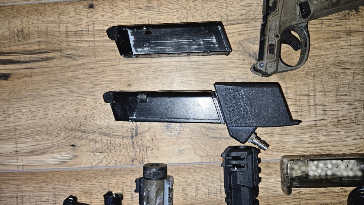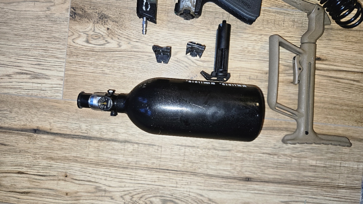Sprzedam widoczny na zdjęciu zestaw Praktycznie dwie repliki AAP, drugą miałem na części, najpierw kupiłem Standardowe AAP a później Shinobi- bardzo mały przebieg W replice zamontowana gumka Flamingo 60 oraz lufa precyzyjna Laylax, młotek stock, natomiast w drugiej (piaskowej) jest akcesoryjny młotek, nie pamiętam jakiej firmy. Do tego wszystko co jest na zdjęciach Między innymi: Adapter HPA do magazynków MP5 i kilka części do samego adaptera Magazynek długi ze złączką Kolba do Glocka chińczyk Reduktor bez nazwy, utrzymuje stabilne ciśnienie Wężyk spiralny itd wszystko co widoczne na zdjęciach Nie zamieniam się Możliwa wysyłka, odbiór osobisty Zachęcam do kontaktu telefonicznego - 504960403
