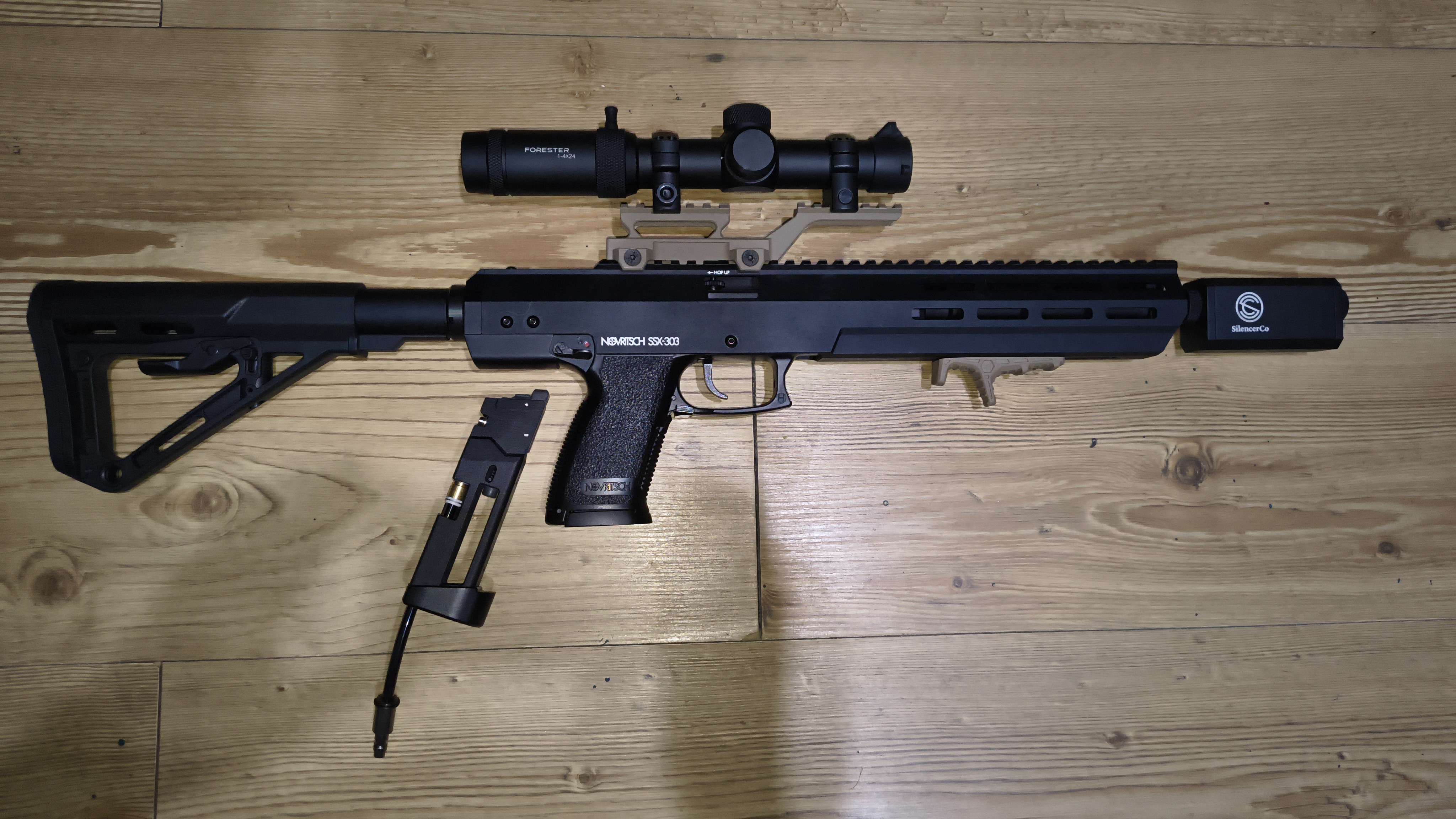 Siemanko, niedawno skompletowany ssx303 pod HPA z lunetą VectorOptics Forester 1-4x24 na podwyższeniu, do wyboru jeden tłumik ze zdjęć. Fajna świeża replika jednakże chcę wrócić do klasycznej sprężyny bo najzwyczajniej w świecie najbardziej odpowiada mojemu stylowi gry. Wymiana na SRS, ssg11, ssg10a3 Do repliki mam adapter hpa od AirTaca i 6 shotgunsheelli od cymy. Replika przepuściła może z 200 kulek. Zachęcam do wymiany bądź kupna