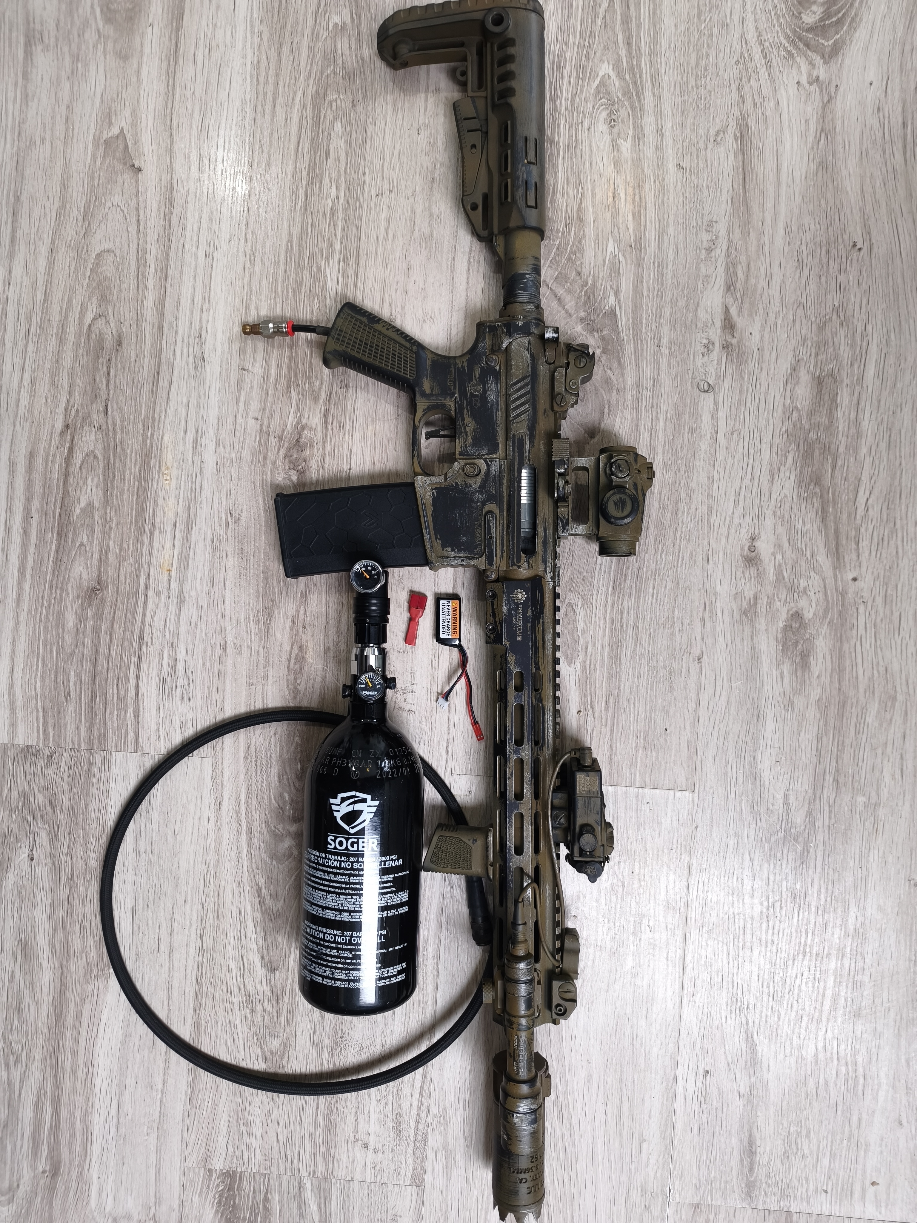 Specyfikacja repliki: Model: Wolverine MTW Billet Series Silnik: INFERNO Gen2 HPA Elektronika: Spartan Electronics Lufa: 14.5" Rail: MK-1 13" Chwyt i kolba: Tactical Grip & Stock Zestaw zawiera: Butla Soger Regulator Mancraft MMR (złączki EU) Wąż HPA Tłumik dźwięku QD Dodatkowa drukowana replika tłumika Akumulator LiPo 7.4V 250mAh Valken Replika latarki Surefire M600 Replika DBAL A2 (działający laser) Kolimator Vector Optics Maverick-III 1x22 MIL 10 magazynków( wszystkie podają idealnie 1 orginalny + 9 no-name) Potrójny przełącznik żelowy do puszki i latarki Możliwość negocjacji